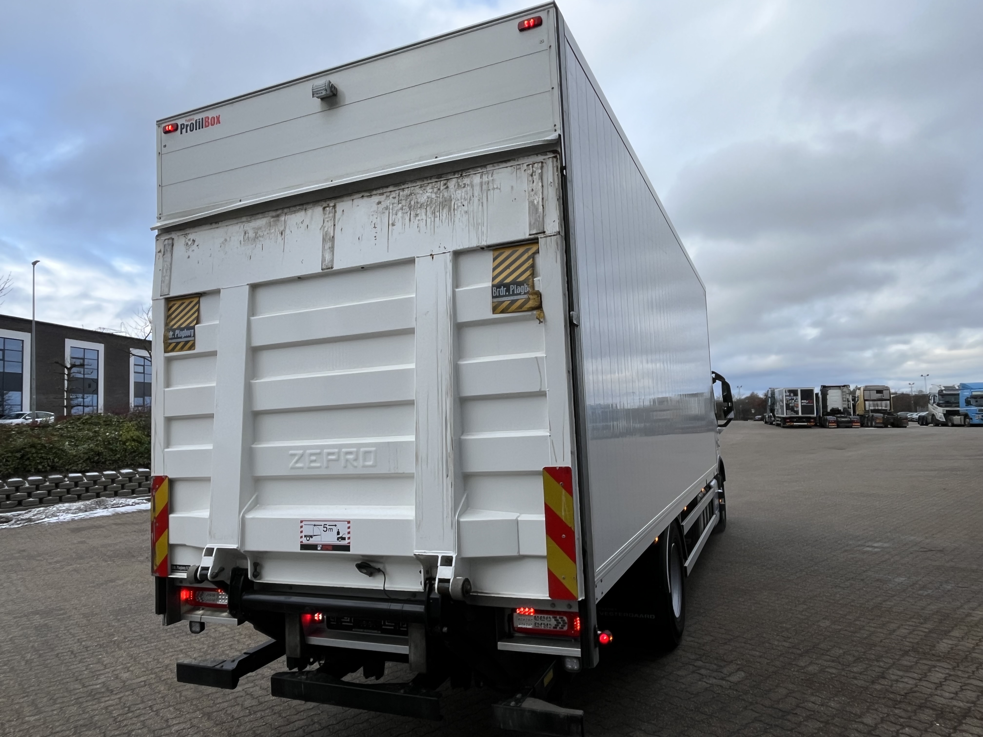 Kasse er : 7,45 lang, 2,75 h indvendig.  Bilen er under 10 meter til brokørsel.