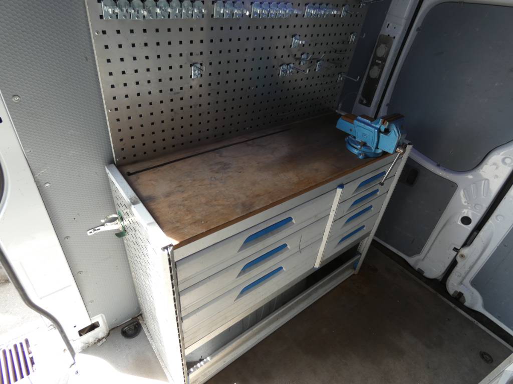 Meget velholdt og med arbejdsbord og værksted i varerummet. Kurv til 265kg.