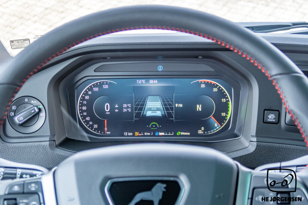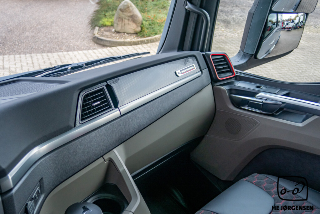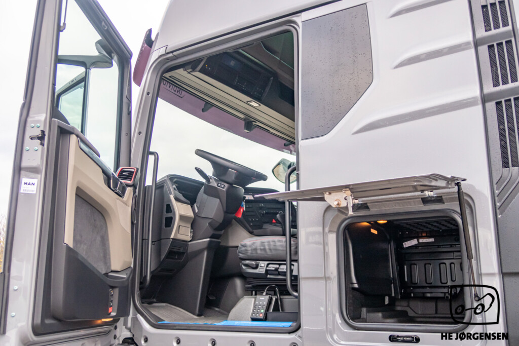 Så har vi igen fået en MAN TGX Individual Lion S på lager, denne gang en pusher-trækker! Individual Lion S'en er bl.a. udstyret med elektronisk glassoltag, el-indstilbare sidespejle med varme, sædevarme, digital instrumentering, TipMatic automatgearkasse med ny gearvælger ved rattet, adaptiv fartpilot, lane-assist, cyklist censorer i både venstre og højre side, elektronisk intelligent håndbremse og SmartSelect - som er den nye styreplatform, som styrer MAN’s radio, navigation mv. samt distraherer dig mindre fra trafikken end en sædvanlig touchskærm. Lion S interiøret består bl.a. af premiumsæder med læder/alcantara-indtræk og diamantsygninger samt nakkestøtter med løveapplikation, røde sikkerhedsseler som skaber et sportsligt look, luftåbninger med røde rammer, indersiderne af døre og armlæn er beklædt med materiale i læderlook, multifunktionslæderrat med røde syninger som understreger det sportslige look, kromlister i dørene og meget mere! I kabinen byder den største MAN-førerkabine, GX på maksimal komfort, både under arbejdet og i pauserne. MAN'ens ydre består bl.a. af spejlkapper med kulfiberlook og løve-design, mørkegrå designsolskærm med Individual Lion S-signatur, skinnende sorte hjulkapsler, kofanger i kulfiberlook med røde detaljer, sortlakeret kølergrill samt den iøjnefaldende kølergrill med forkromede lameller og røde designstriber. MAN'en er opbygget med fuld aludørk samt forskydelig drejeskammel. Trækkeren er fra MAN's nye generation og står klar til omgående levering. Kontakt vores salgsafdeling for yderligere information og interesse. Vi glæder os til at vise den frem! *Der tages forbehold for eventuelle taste fejl*