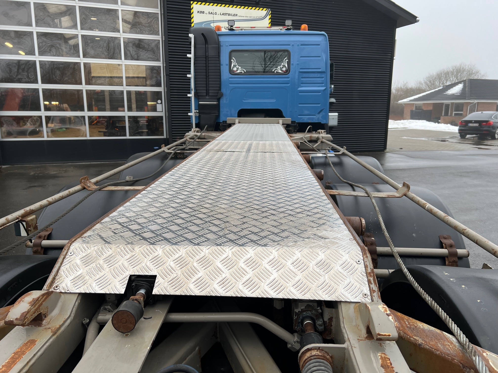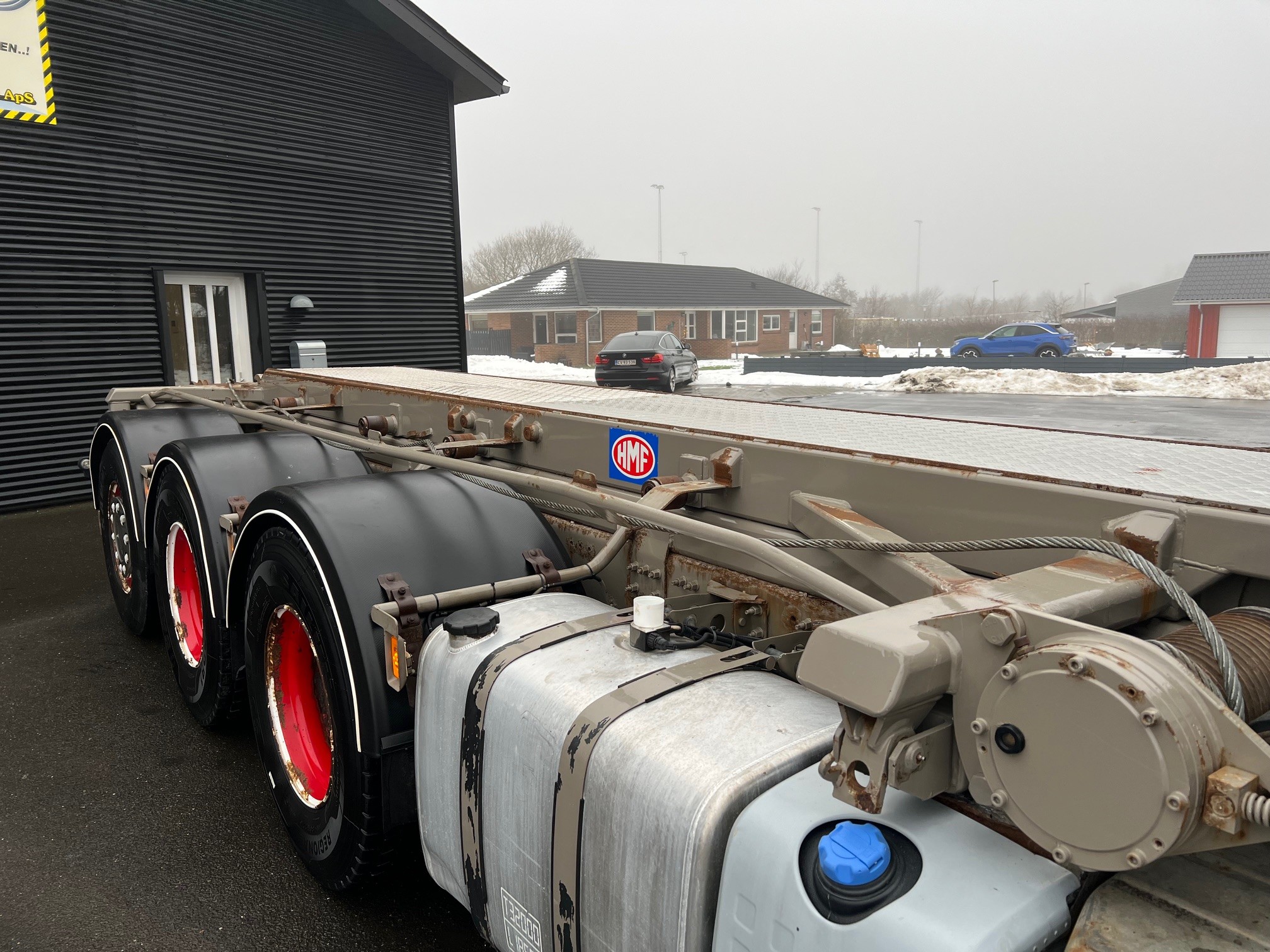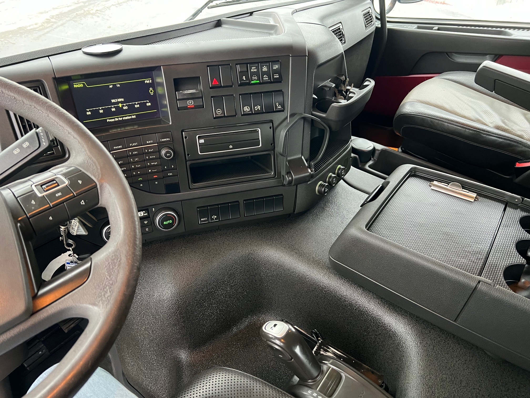 med 3-vejs HMF T324 hejselad med fjernbetjening, 2 stop mål, udtrækskofanger, luftstyret VBG kærretræk, projektører, lysskilt, fuld luftafjedring, I-shift, VEB+, VDS, loadindikator, lædersæder m.v.