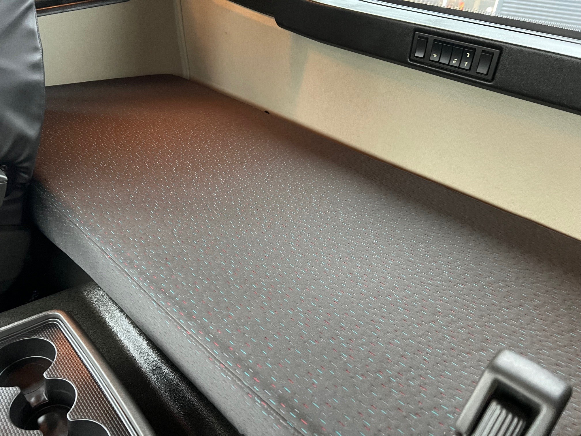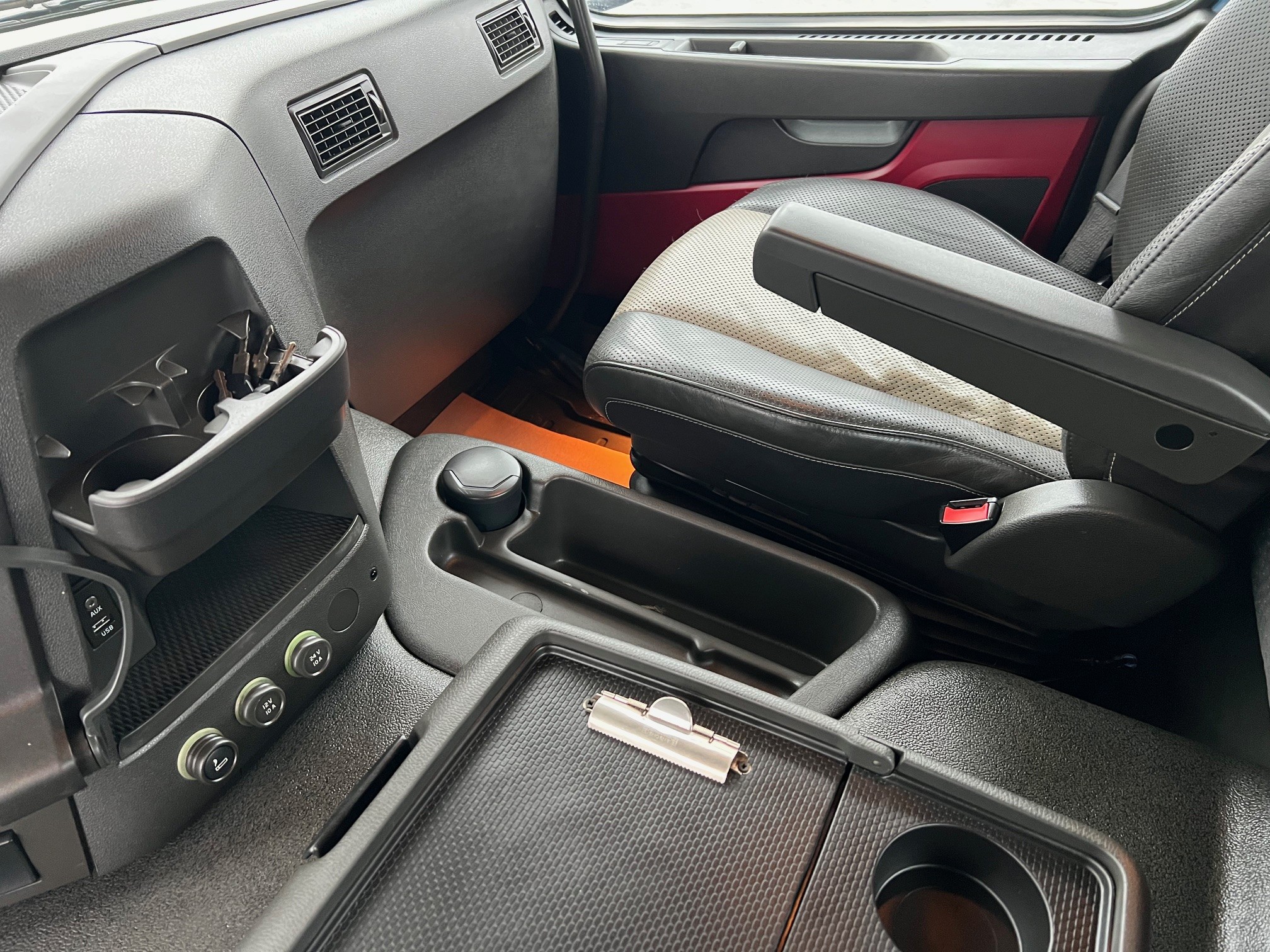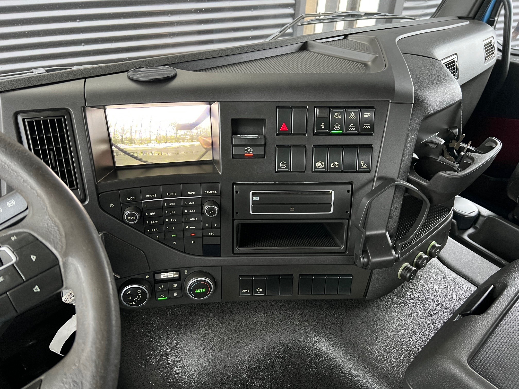 med 3-vejs HMF T324 hejselad med fjernbetjening, 2 stop mål, udtrækskofanger, luftstyret VBG kærretræk, projektører, lysskilt, fuld luftafjedring, I-shift, VEB+, VDS, loadindikator, lædersæder m.v.
