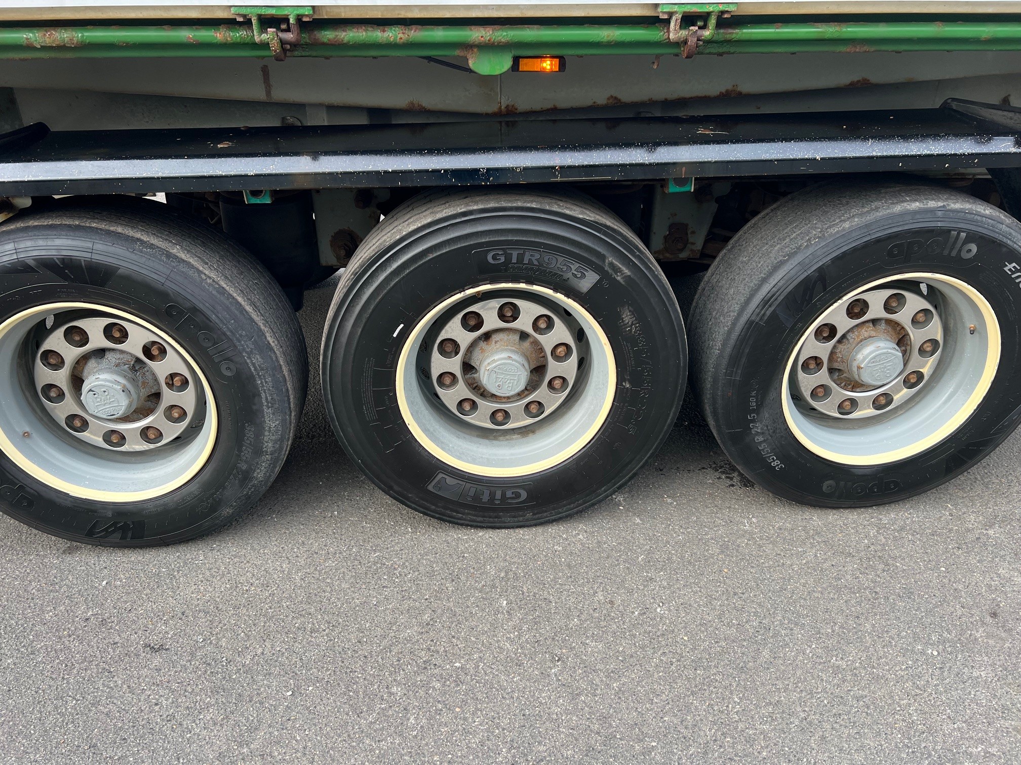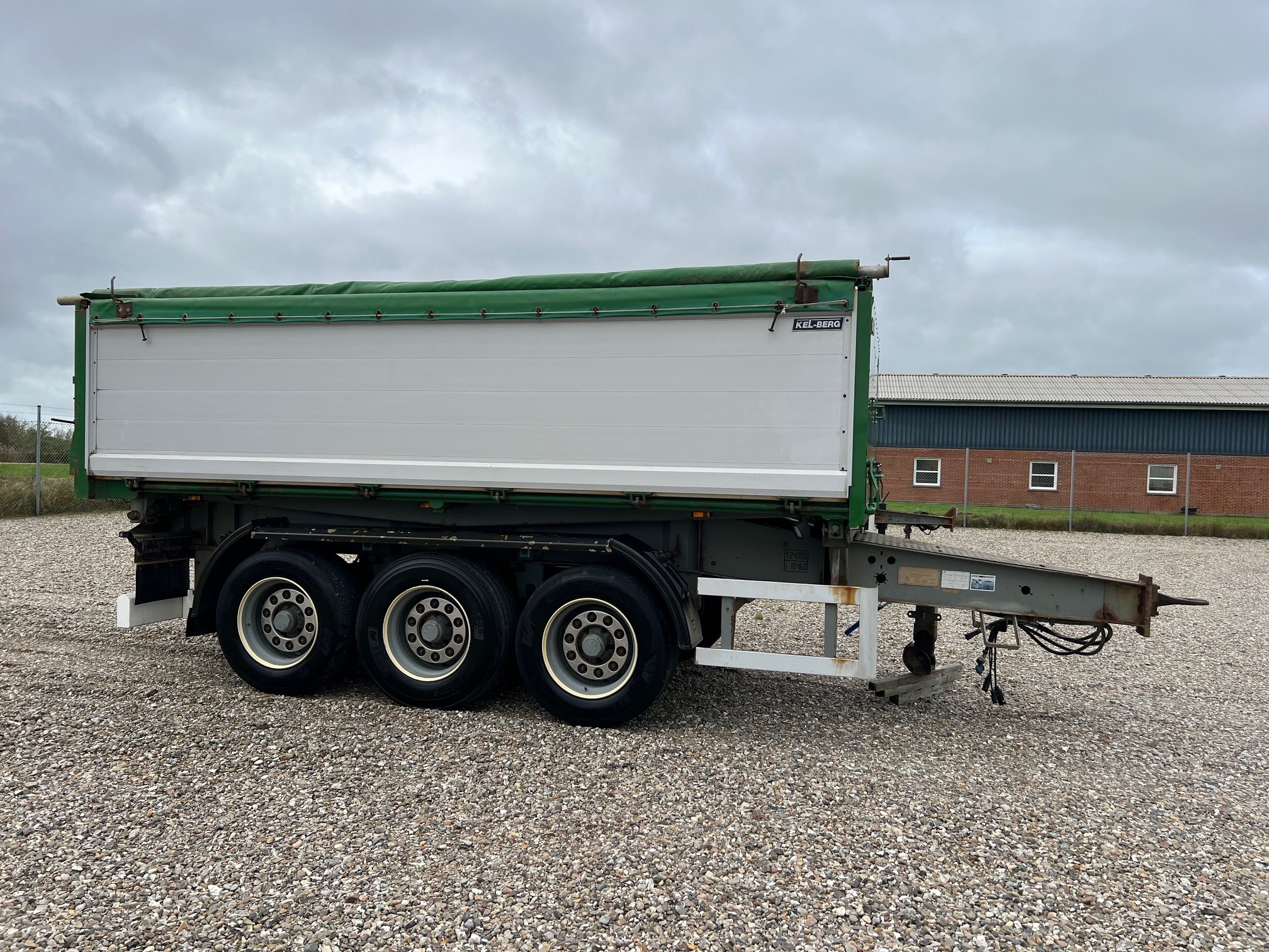 Regulær 3 akslet tipkærre med 3 vejs tip med top og bundhængt sider, aut. bagsmæk, rullepresenning, Luftaffjedret, BPW tromlebremser, er synet.
