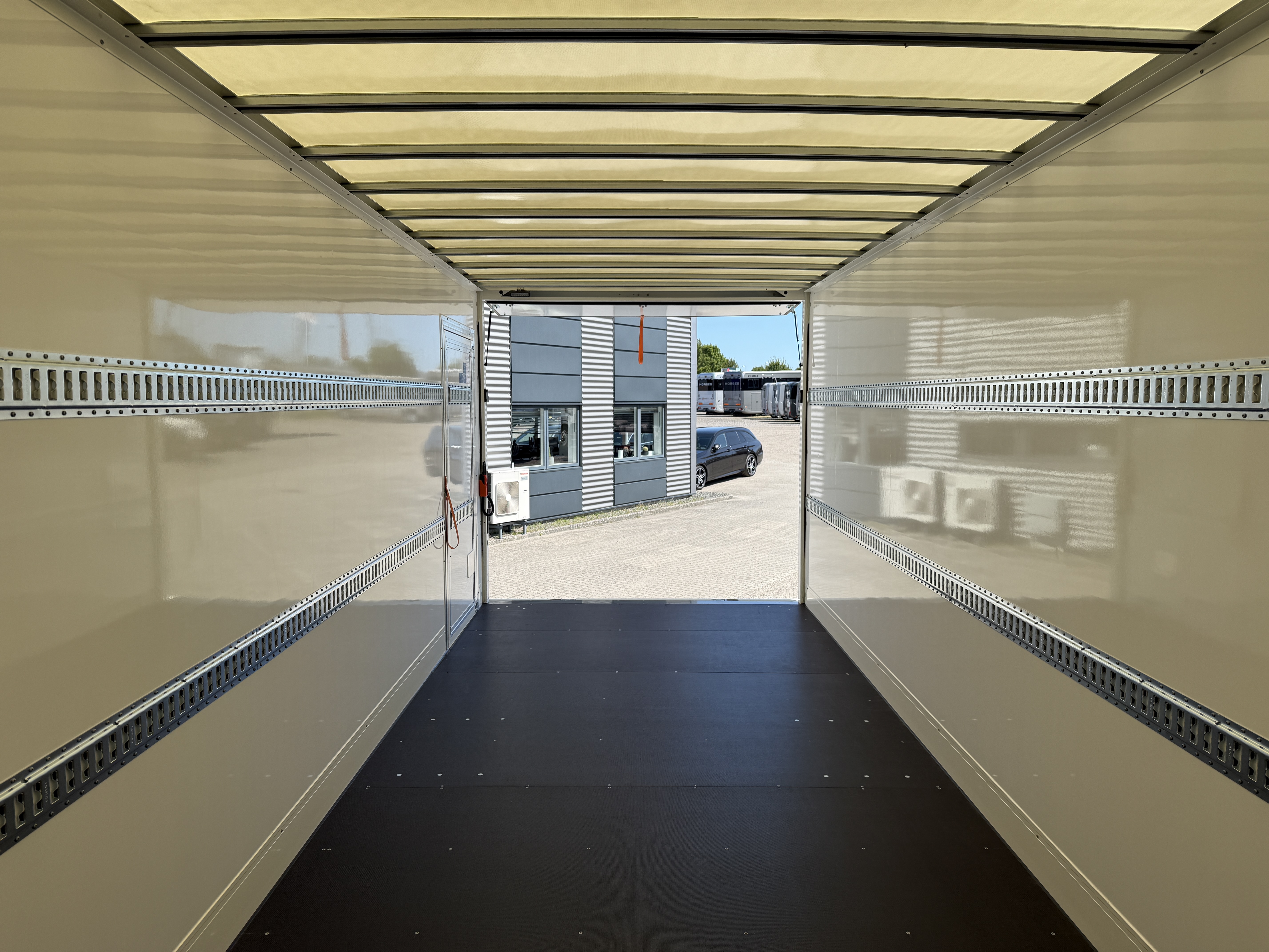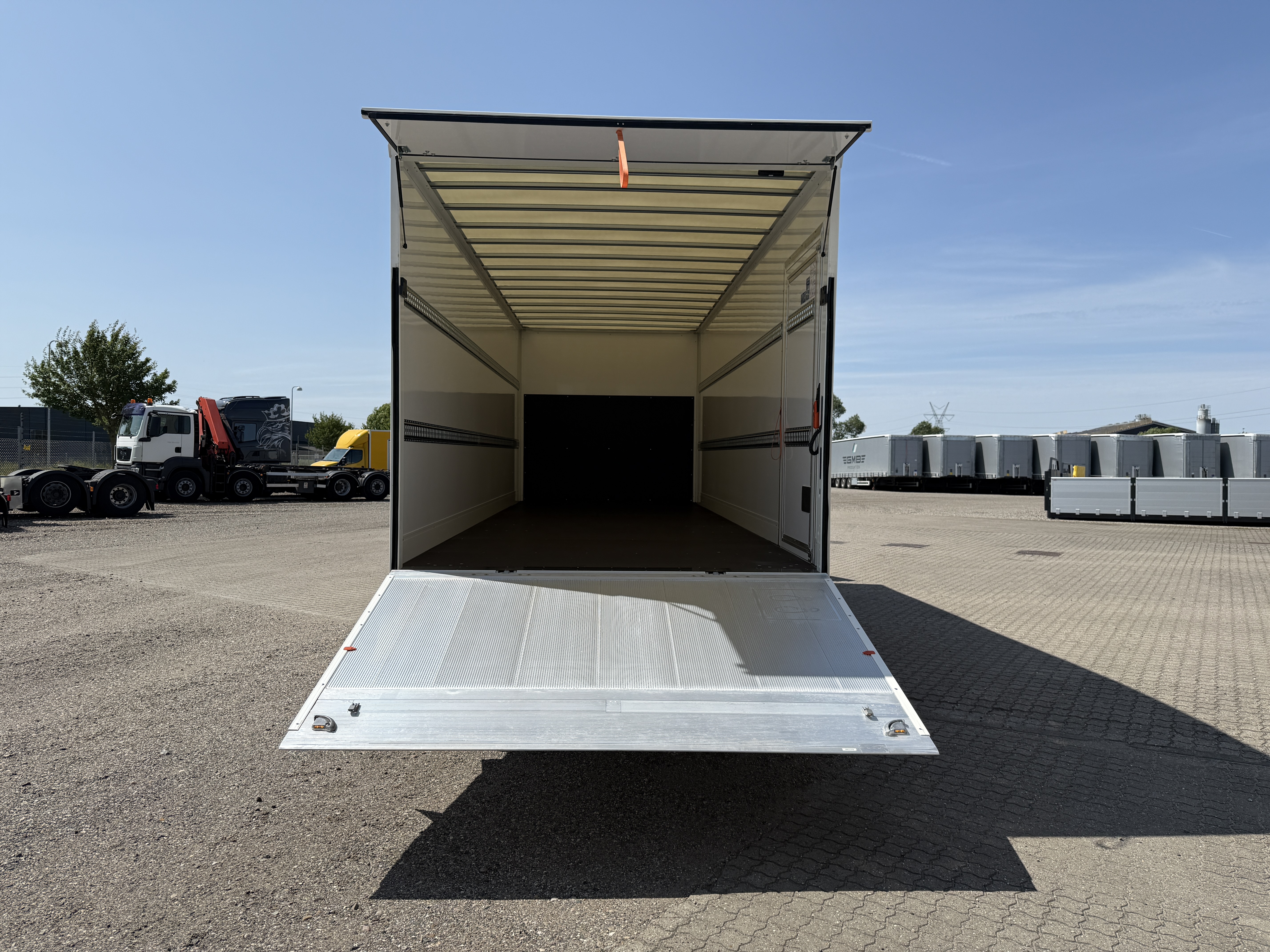 Der er bakkamera for bedre overblik, og kassen er forsynet med surringsrækker i to højder, hvilket gør det let at sikre lasten. De indvendige mål i kassen er 7.200 mm i længden, 2.500 mm i bredden og 2.390 mm i højden.