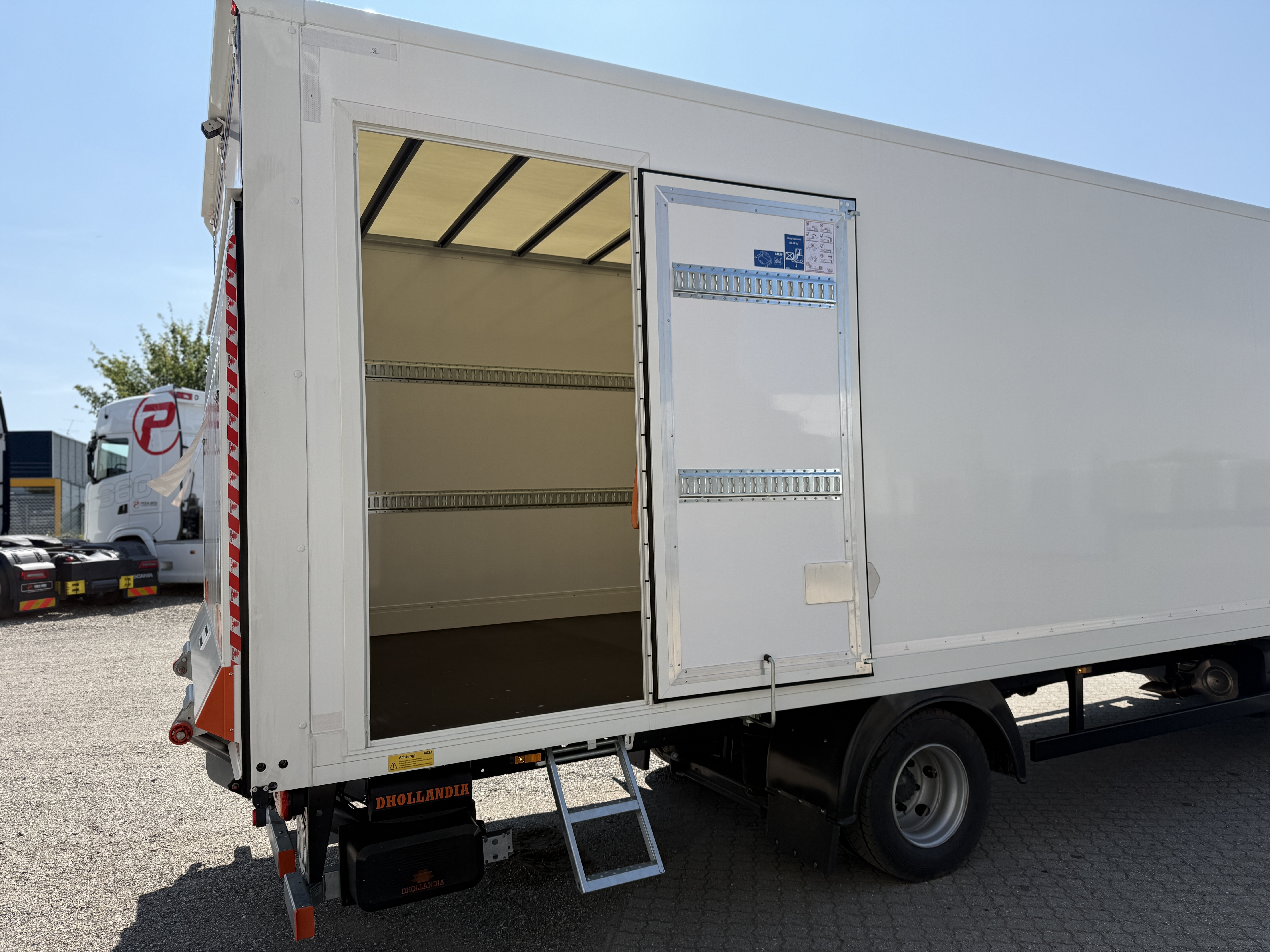 Lastbilen er professionelt opbygget med en SAXAS kasse og udstyret med en Dhollandia lift med en kapacitet på 1.500 kg. Liften betjenes nemt via spiral kabel. Sikkerheden er i top med ACC afstandsradar og nødbremsefunktion, og komforten for chaufføren er sikret med et luftaffjedret førersæde med varme samt en TraXon automatgearkasse.