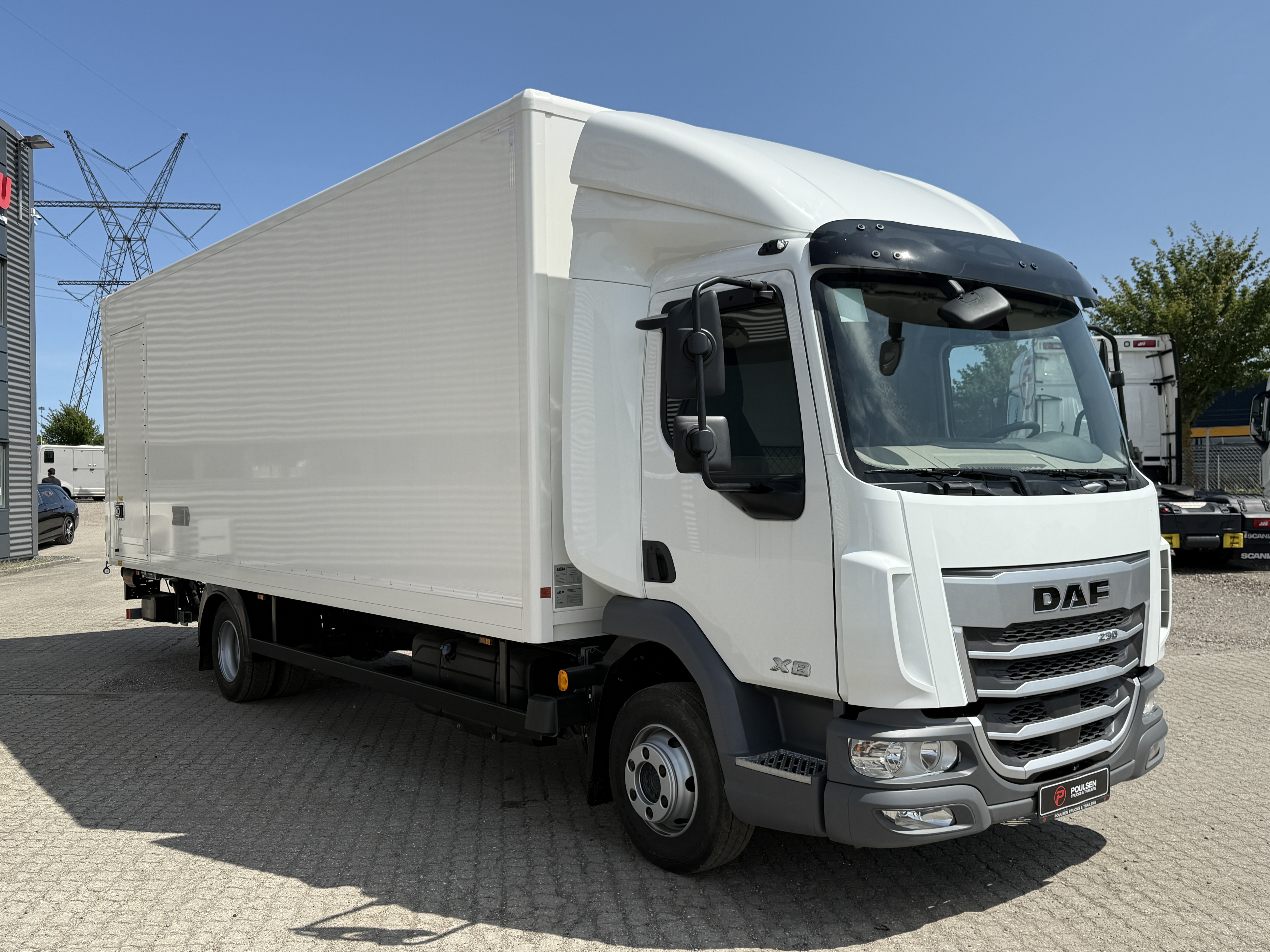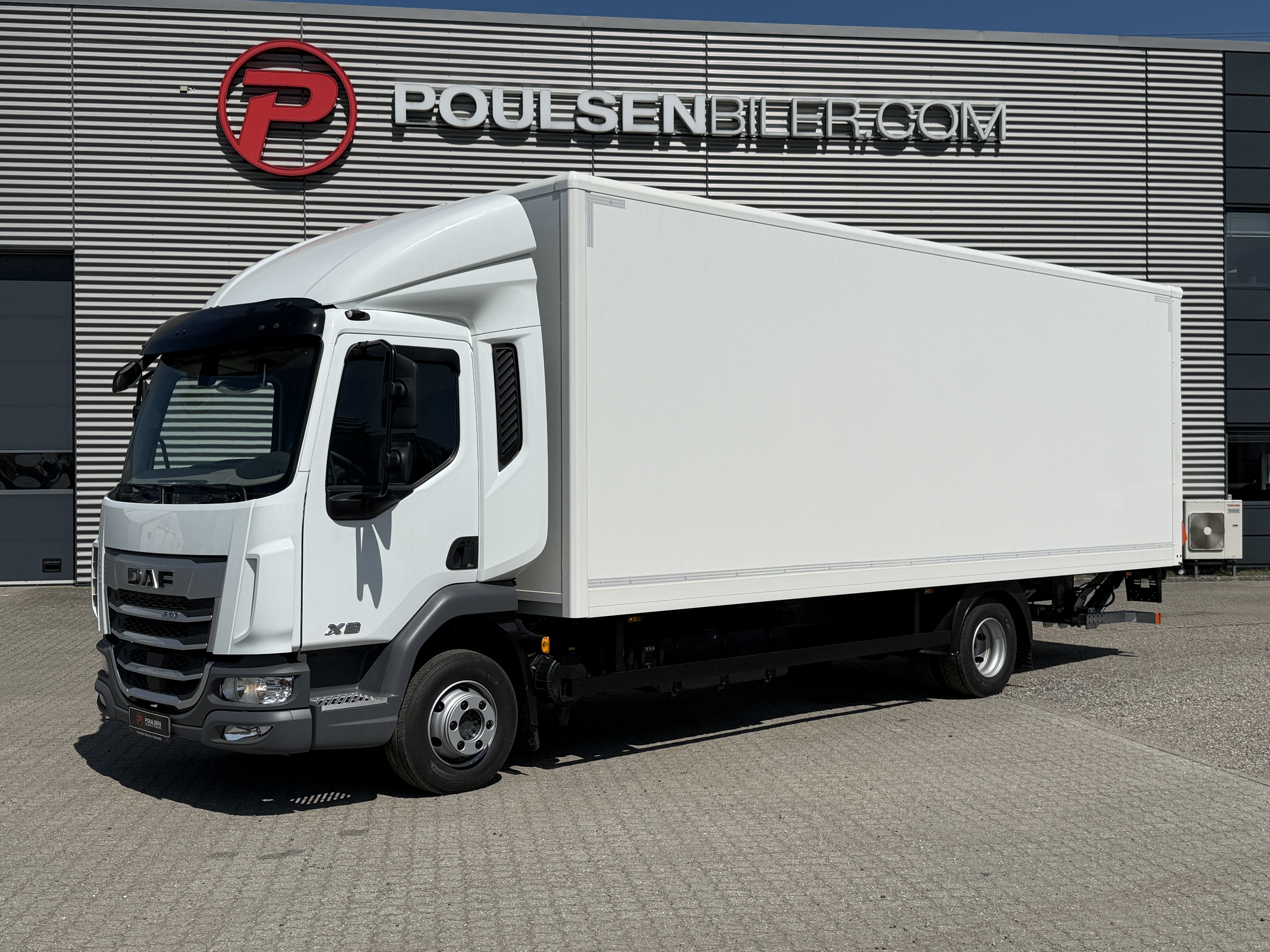 Vi tilbyder en fabriksny DAF XB230 4x2 fastkasse med bagdør – fri for kilometerafgift.