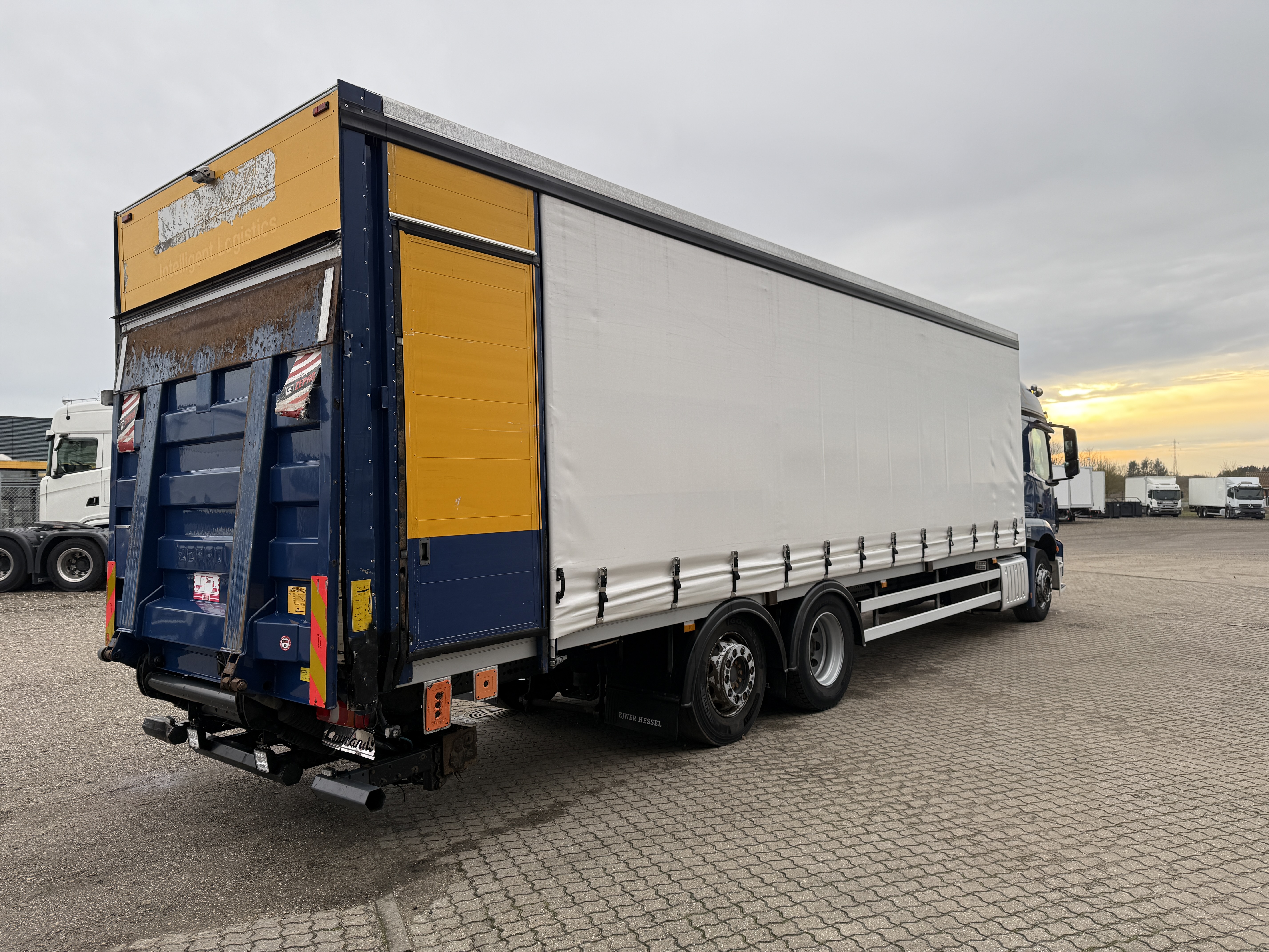 Denne Mercedes Actros 2533 er en 6x2/4 lastbil med gardinopbygning og sidedør. Den har indvendige mål på L9500 x B2550 x H2440 mm. Lastbilen er udstyret med Zepro-lift, fartpilot, aircondition og automatisk klimaanlæg. Derudover har den bakkamera, walkie og radio, samt fuld luftaffjedring.