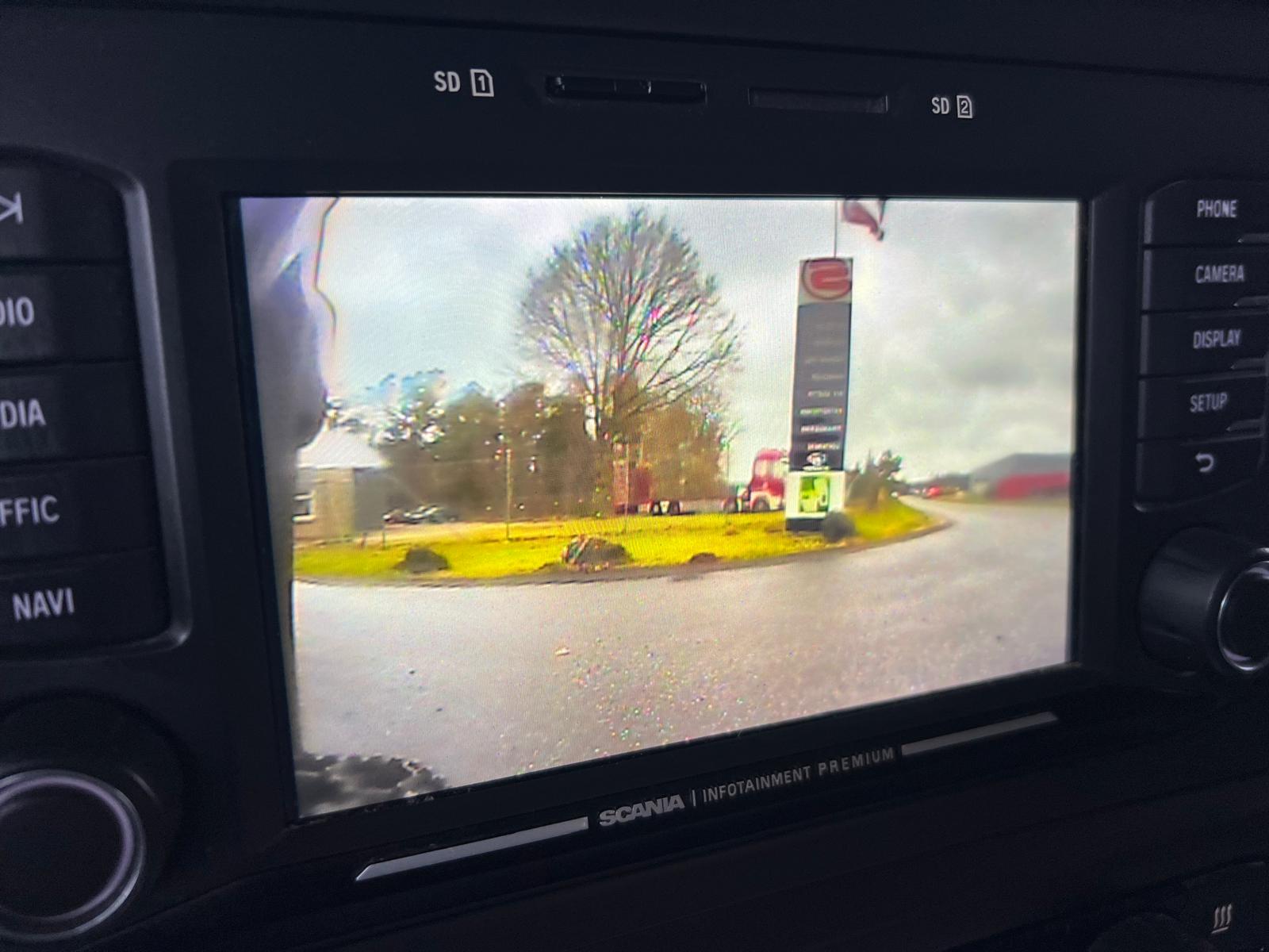 Kabinen er udstyret med motor‑/kabinevarmer (3 kW), klimaanlæg, navigation og spoilersæt. Sikkerheden er opdateret med Lane Assist, katastrofebremse samt cyklist‑ og bakkamera. Der er ekstra fjernlygter i taget og tågeforlygter i kofangeren. Førerhuset er lakeret i original RAL 5012 blå.