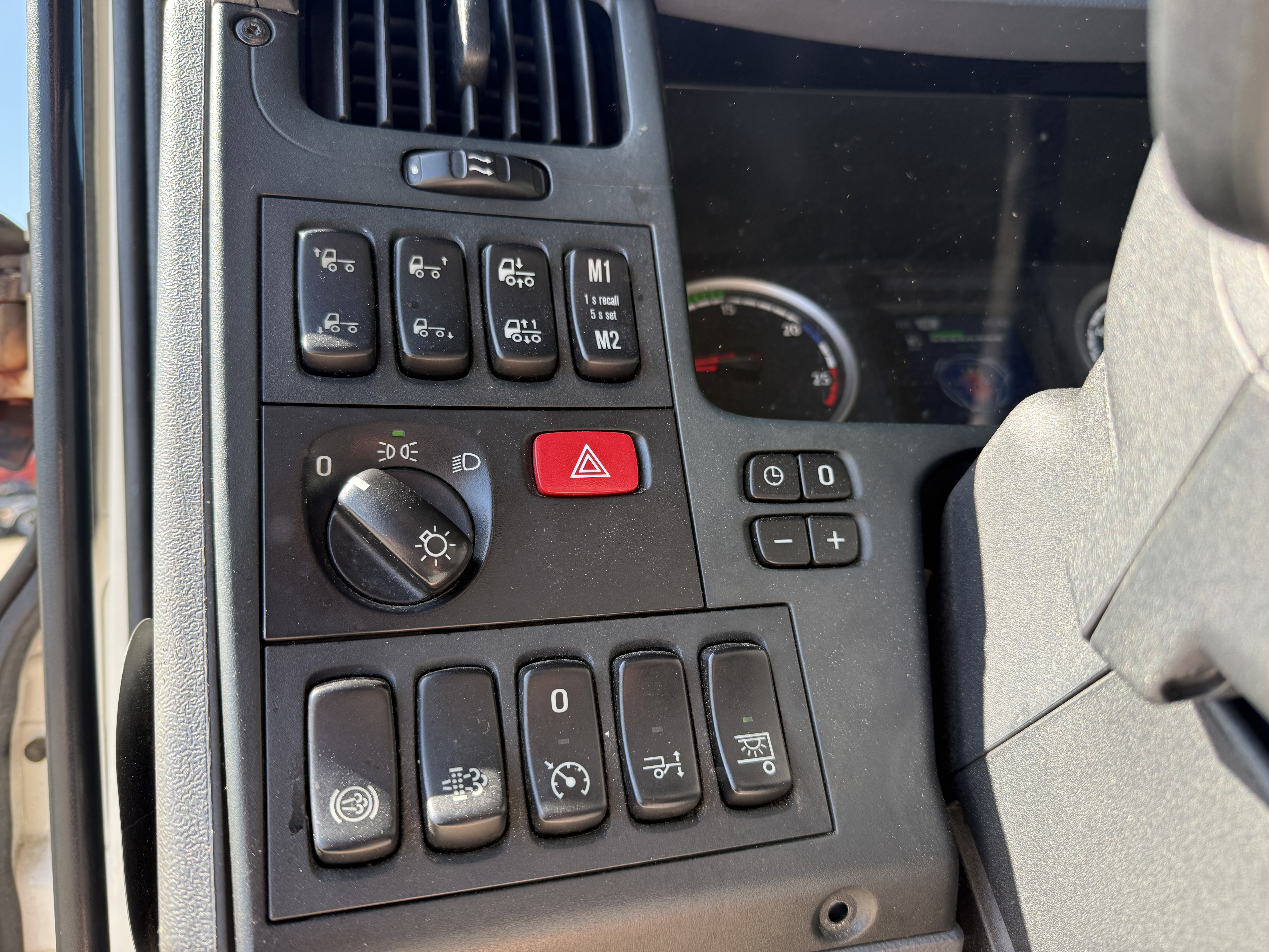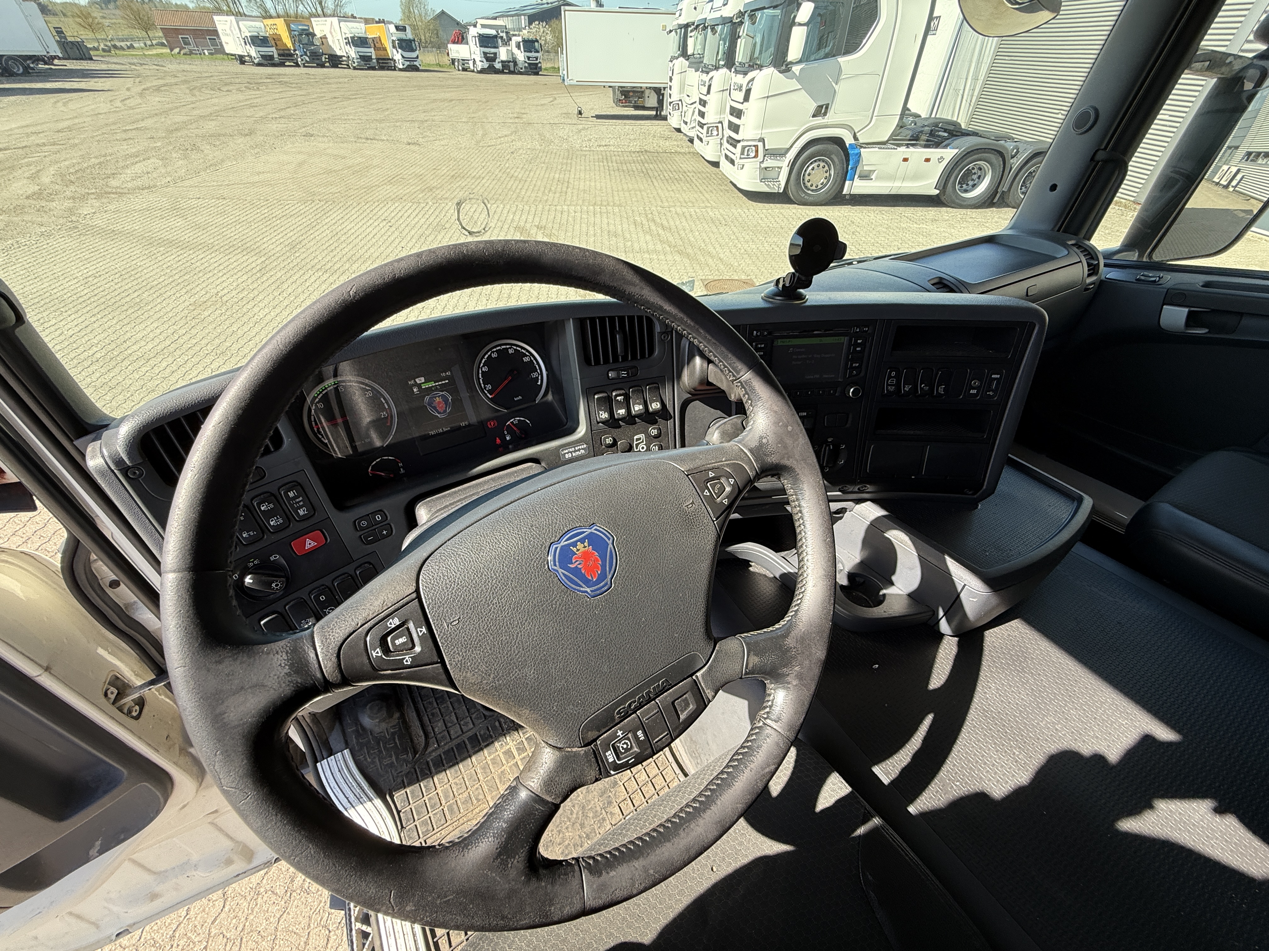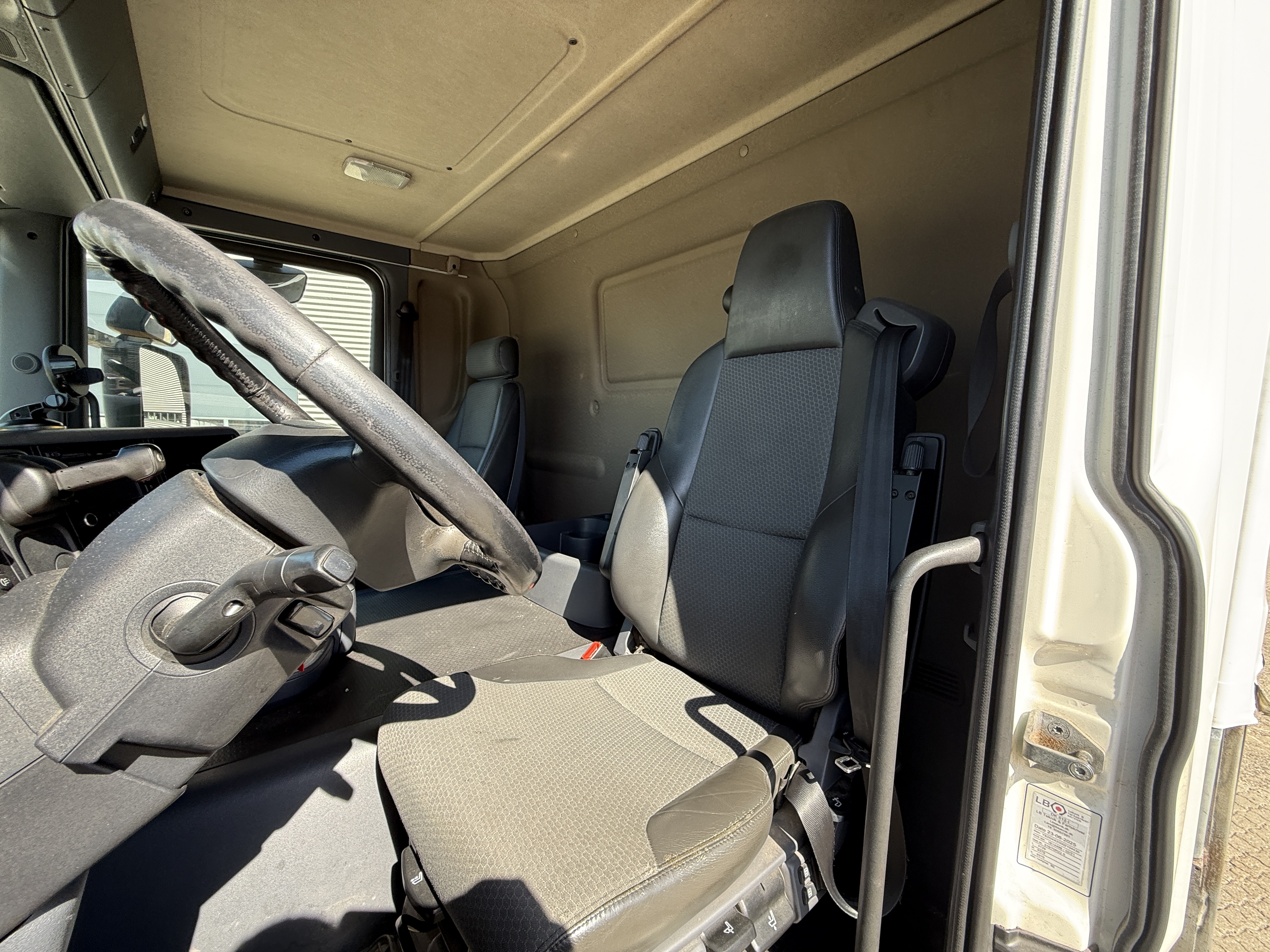 Kabinen er udstyret med fartpilot, navigation, aircondition og automatisk klimaanlæg, og førersædet har varme. Lastbilen er fuld luftaffjedret.