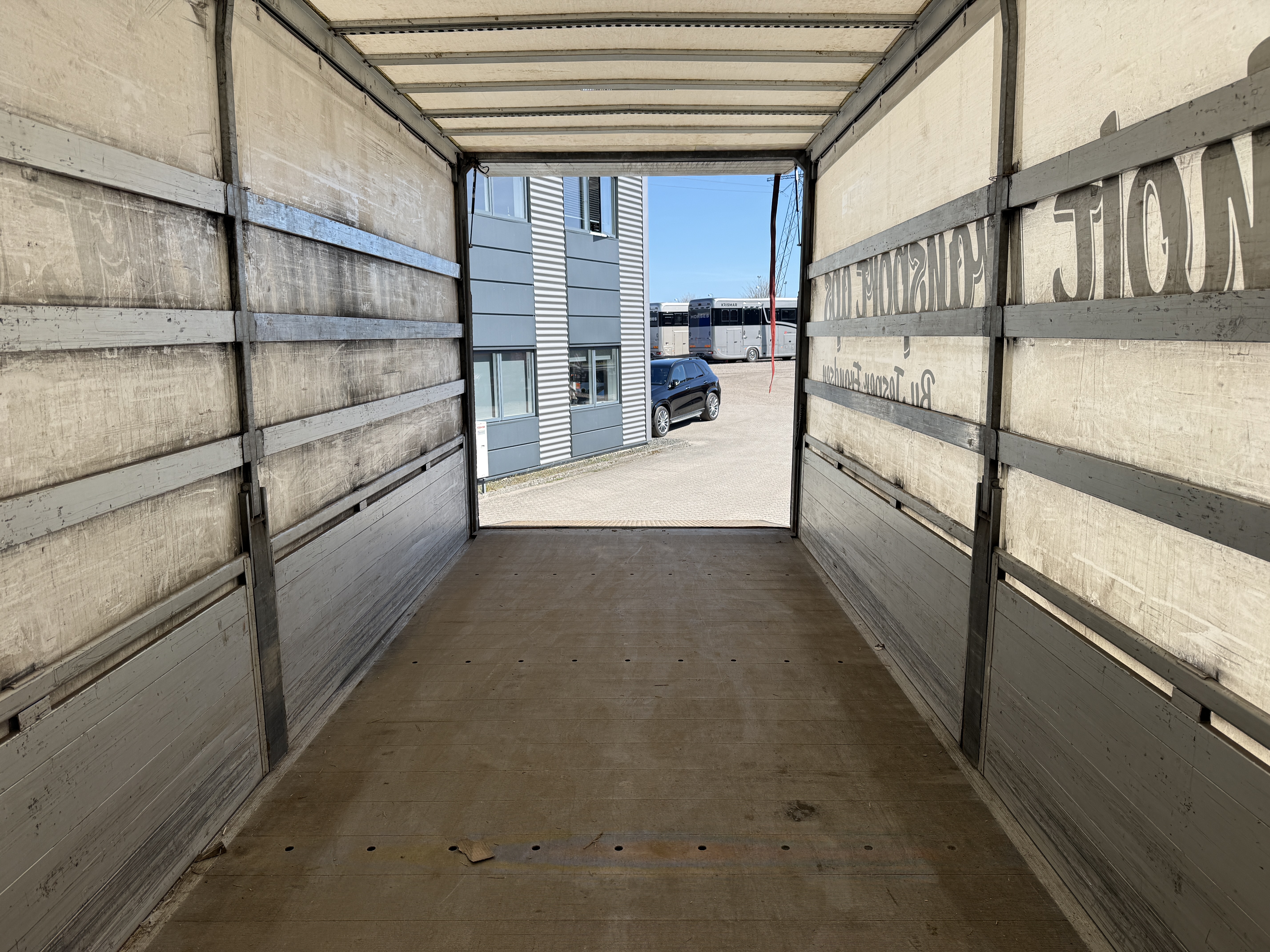Kassen har indvendig belysning og måler L 7.400 x B 2.450 x H 2.700 mm, hvilket giver god plads til gods. Der er desuden monteret værktøjsskab samt en dieseltank på 400 liter.