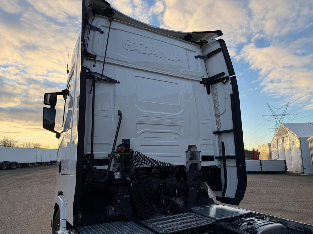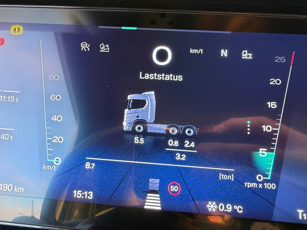 Der er LED arbejdslys og original Scania Air Cooler, som sikrer et behageligt indeklima. Kabinen er udstyret med luftaffjedrede lædersæder, hvor førersædet har både varme og ventilation. Derudover finder du lastindikator, ACC afstandsradar, sporassistent, køleskab, navigation og bakkamera