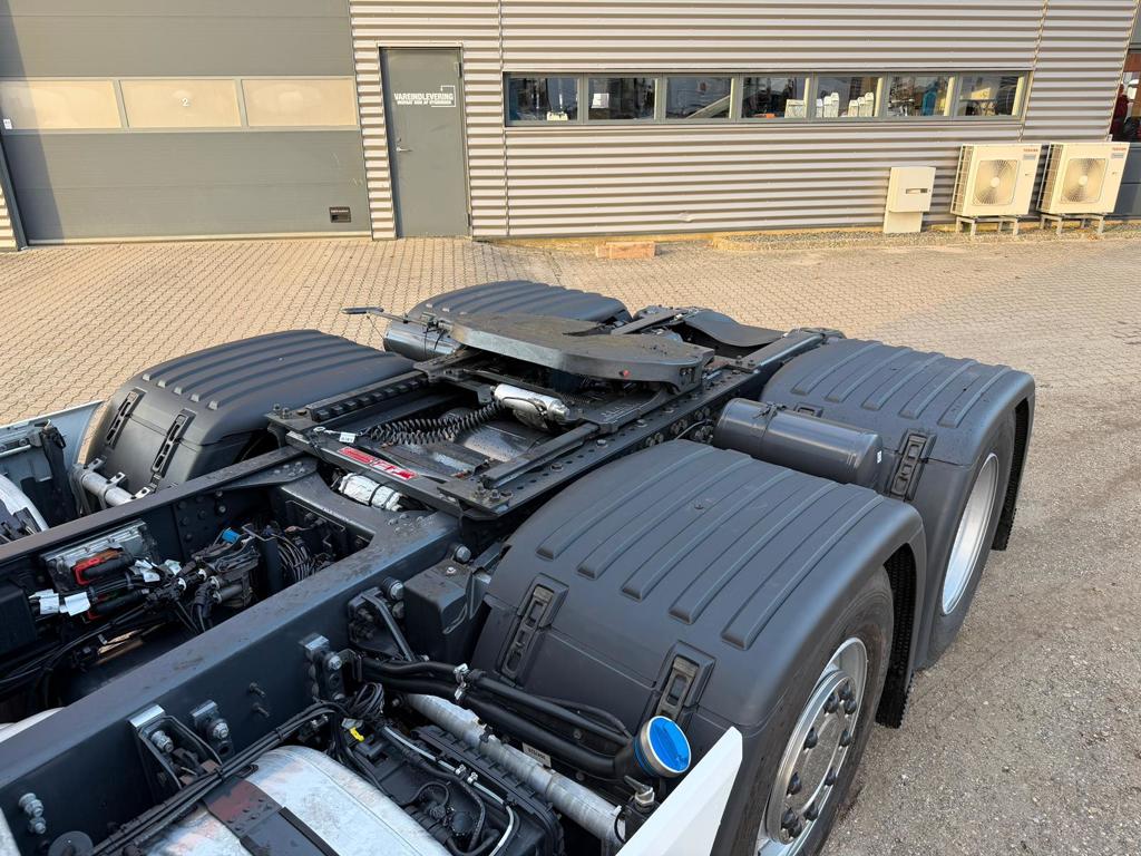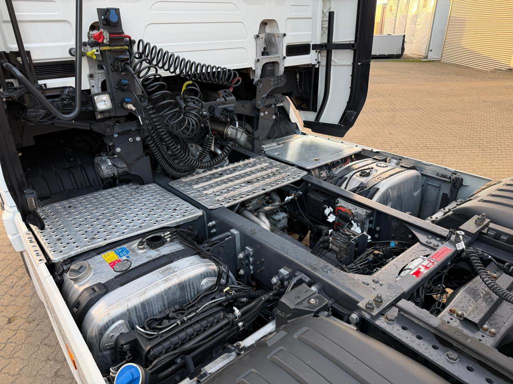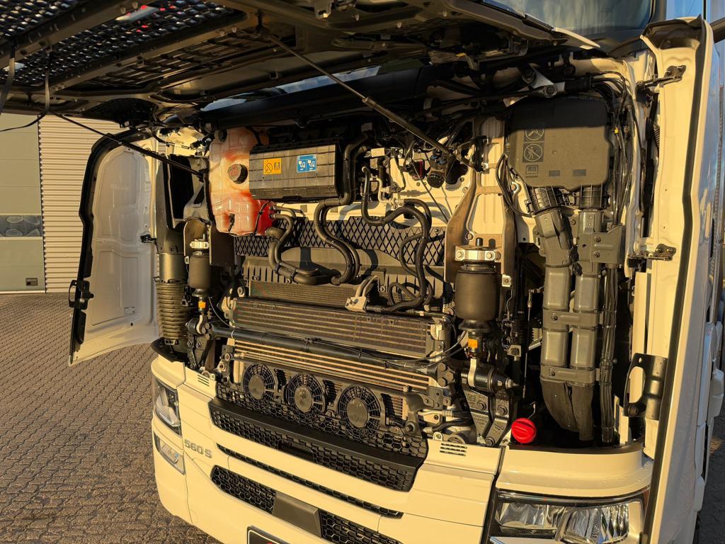 Denne Scania S560 twinsteer trækker er fra oktober 2024 og har kun kørt 76.000 kilometer. Den er udstyret med Jost luftforskydelig skammel og PTO monteret på gearkassen. Lastbilen er fuldt luftaffjedret og har to dieseltanke med en samlet kapacitet på 620 liter.