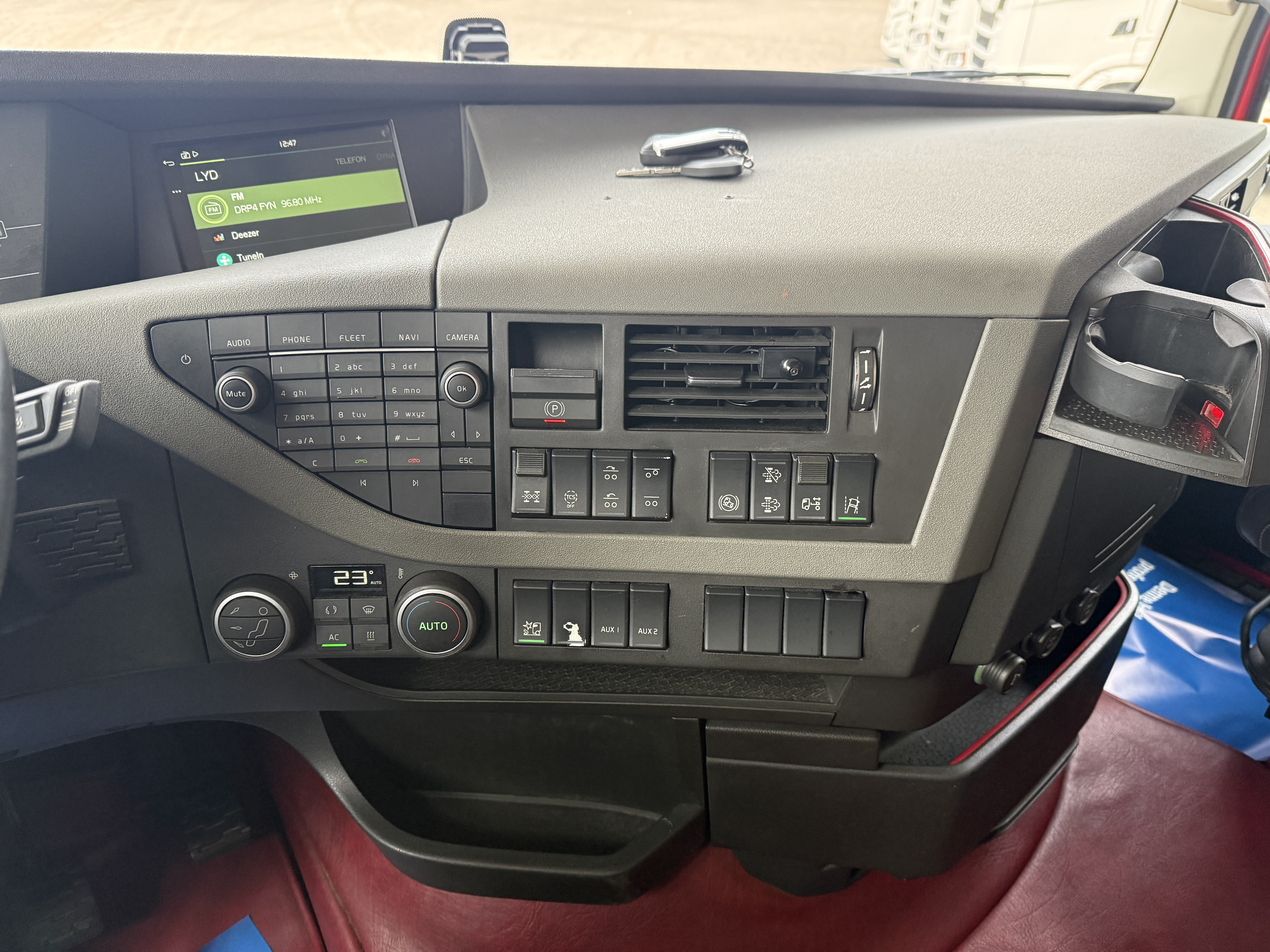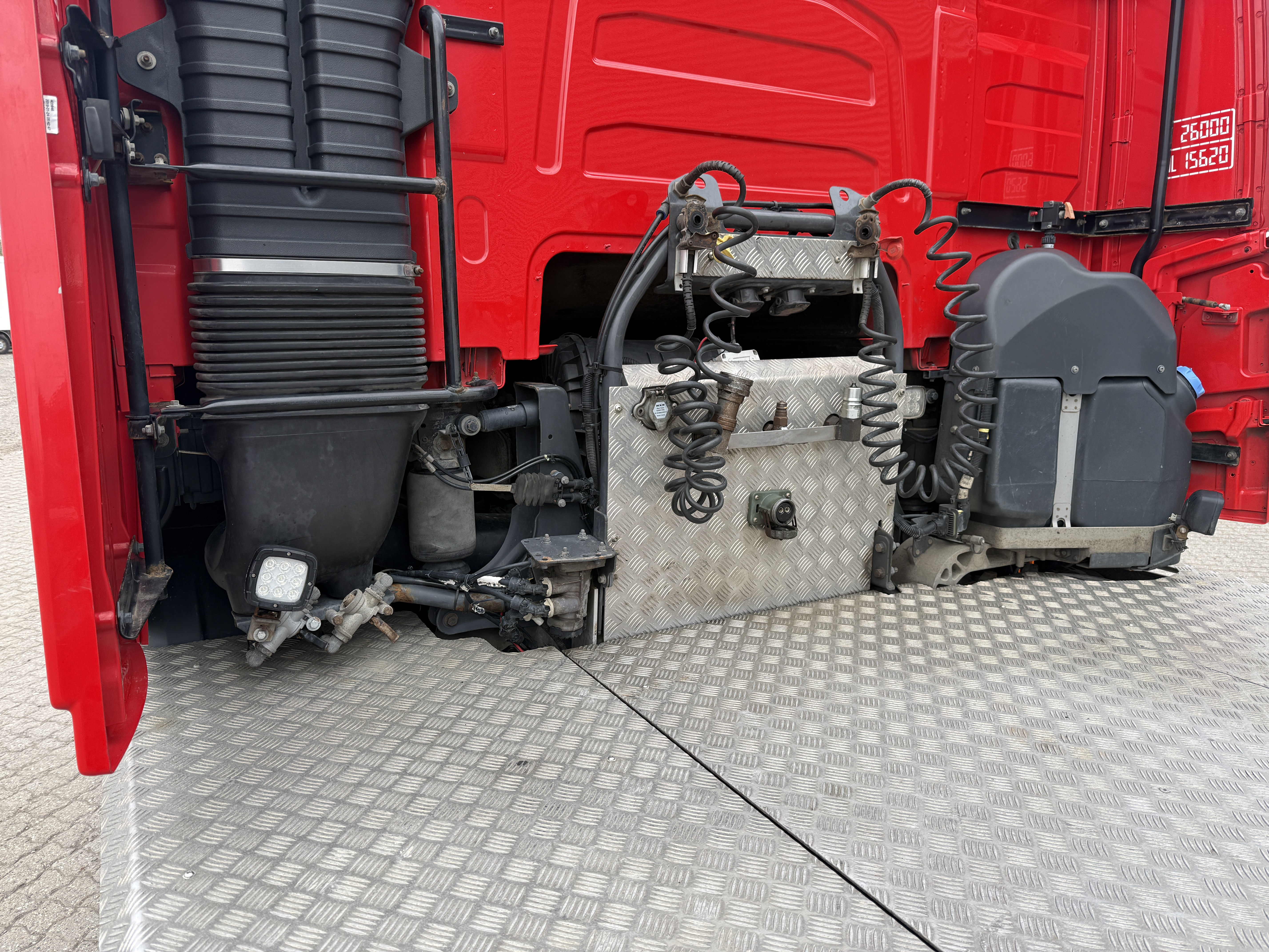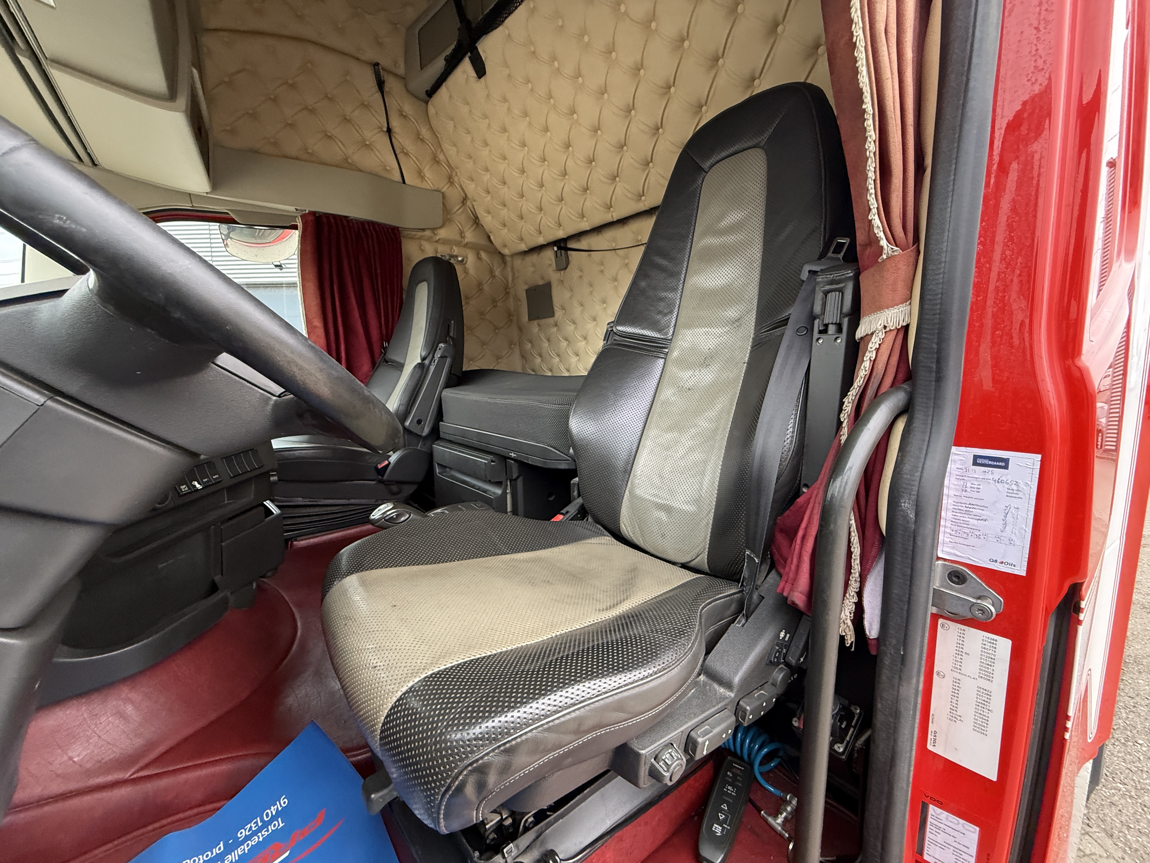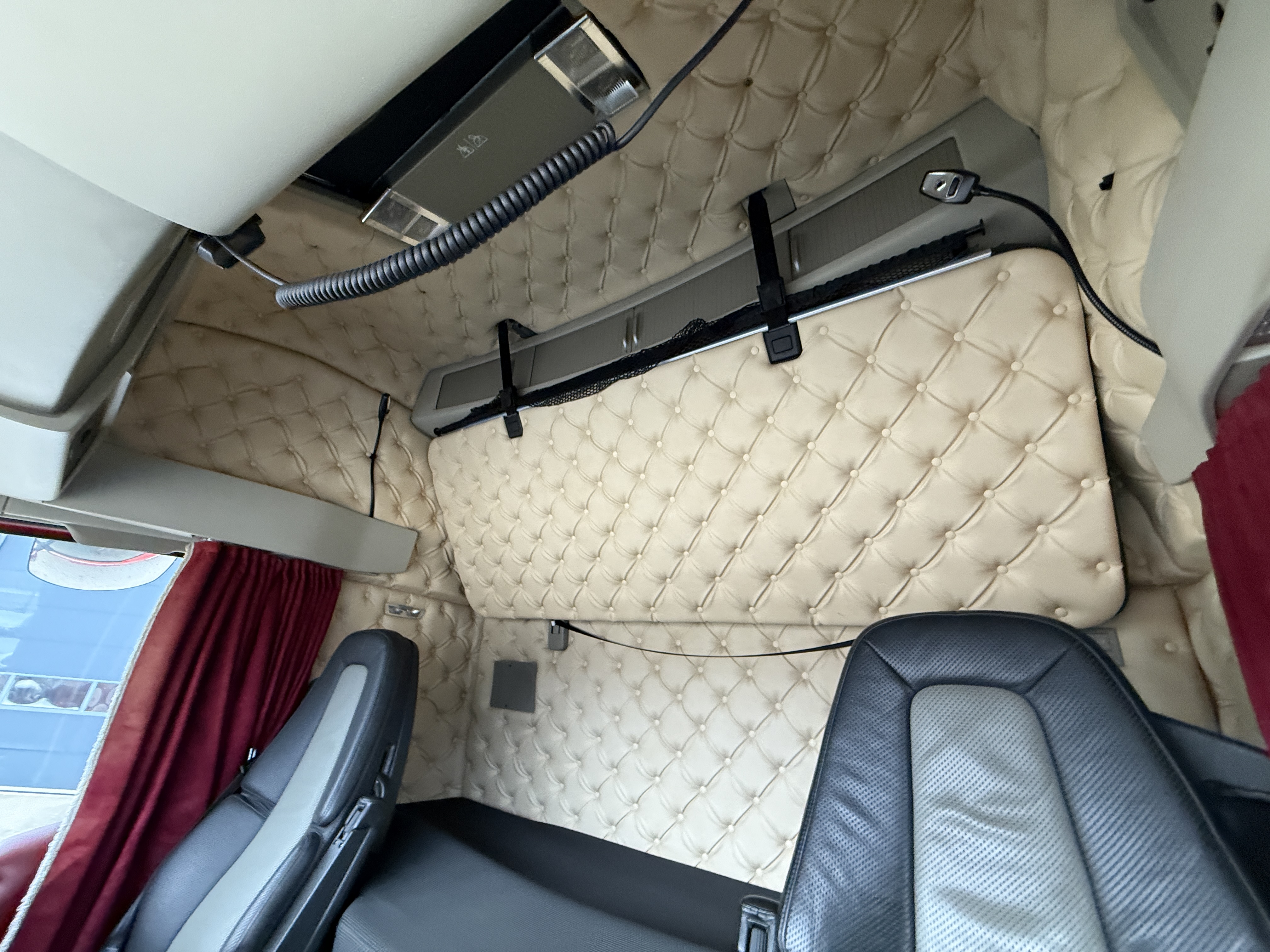 Trækkeren har JOST luftforskydelig skammel, adaptiv fartpilot og sporassistent. Kabinen er indrettet med plys, automatisk klimaanlæg, aircondition, radio og walkie. Derudover er der lædersæder, og førersædet har både varme og ventilation.