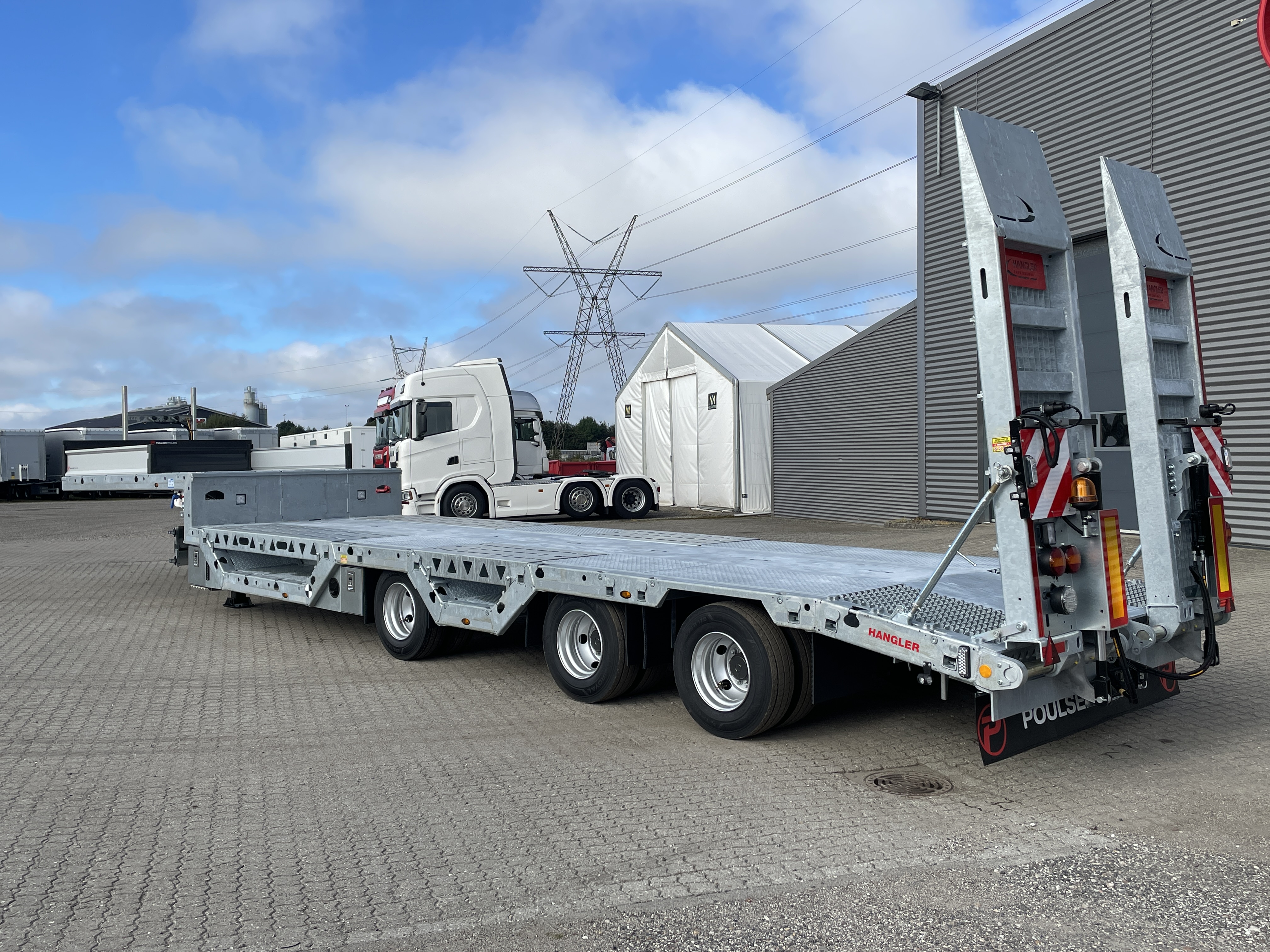 Hangler 3-aks maskintrailer m. hjulbrønde