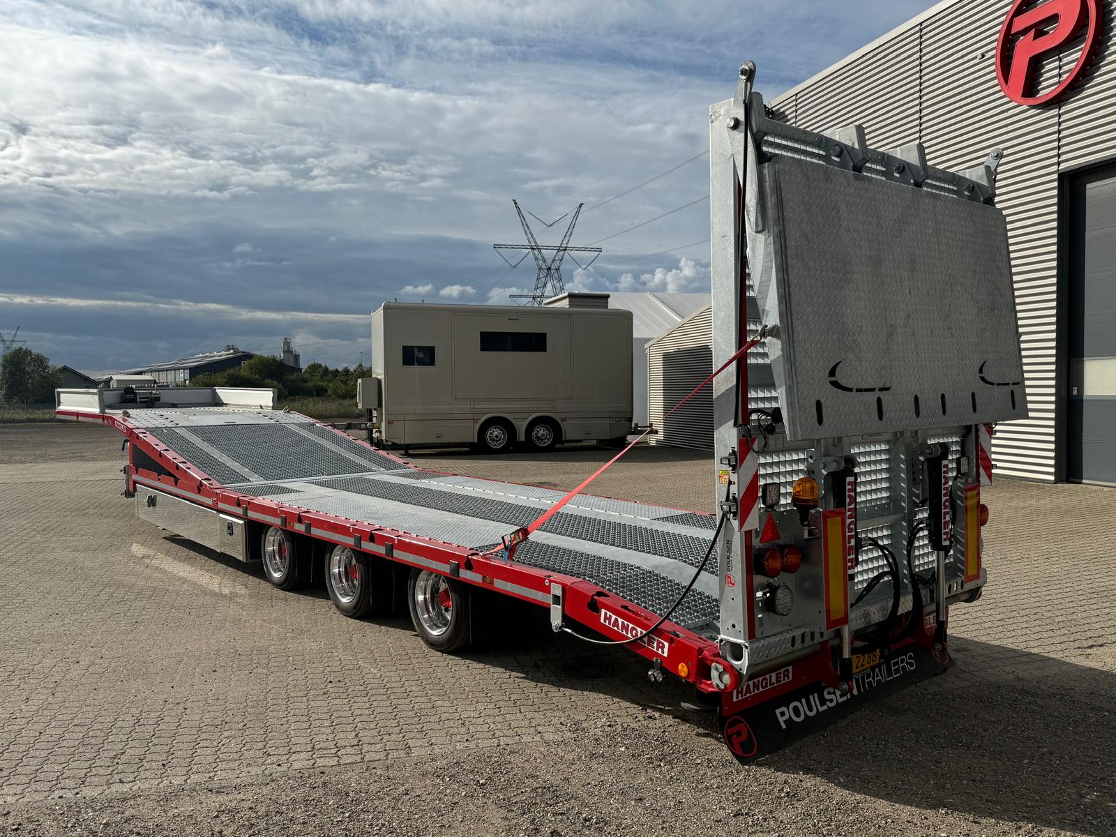 Hangler 3-akslet maskintrailer med Liftmaster og heldækkende hydraulisk rampe. Traileren er konstrueret med BPW-aksler med tromlebremser og monteret med Alcoa DuraBright alufælge. Den 4.000 mm heldækkende hydrauliske rampe samt 3.000 mm hydraulisk løft af bund til rapo gør traileren særligt velegnet til transport af lifte og andre maskiner.