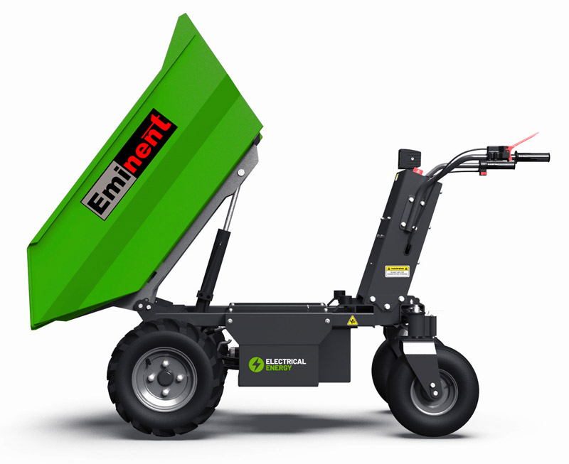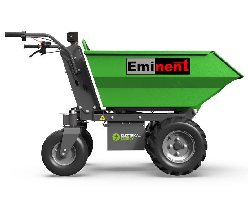 Elektrisk motor trillebør med fremdrift på forhjul og en løfteevne på 500 kg.
