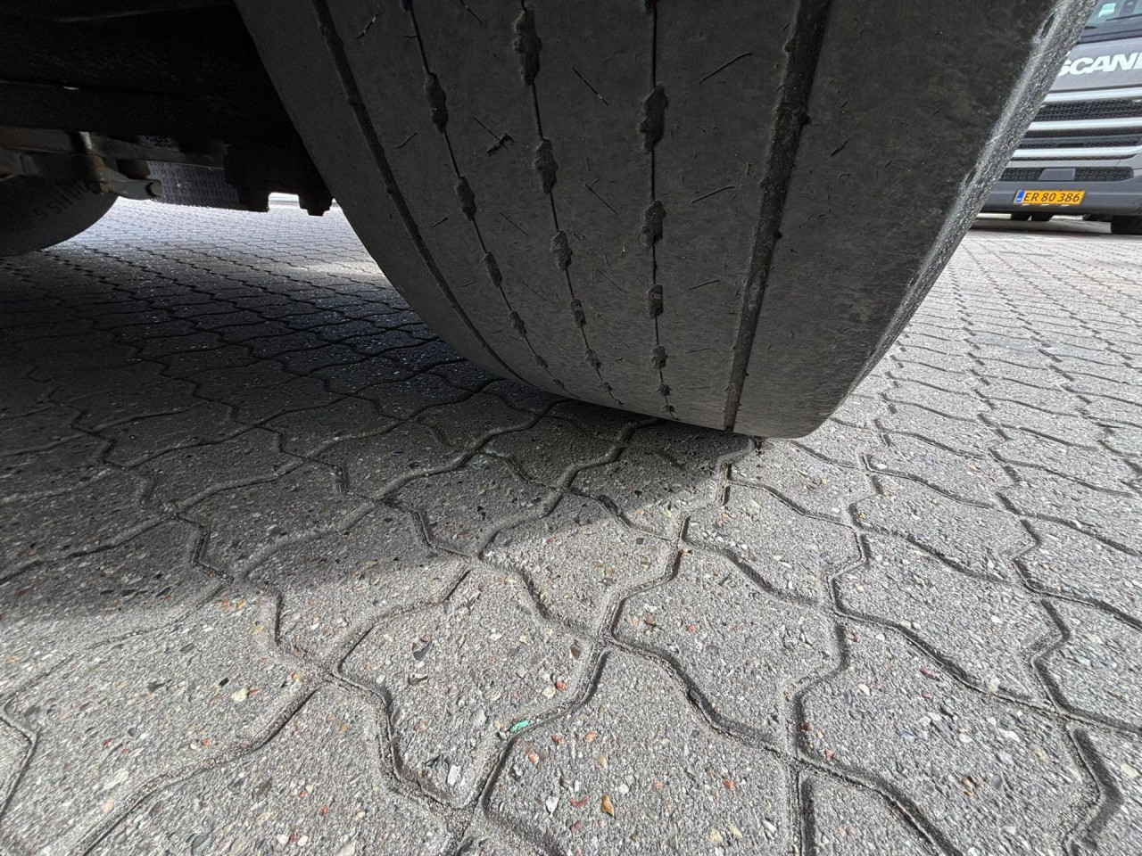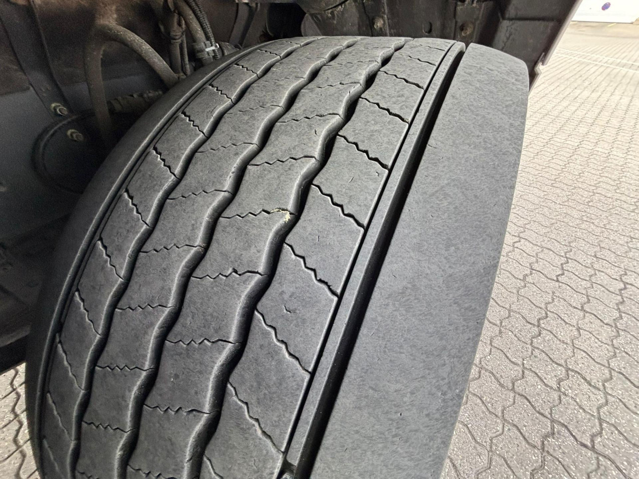 1. Achse: 385/55 R22.5, Profildybde: 6 mm / 6 mm, 2. Achse: 315/70 R22.5, Profildybde: 5 mm / 5 mm, 3. Achse: 385/55 R22.5, Profildybde: 5 mm / 5 mm