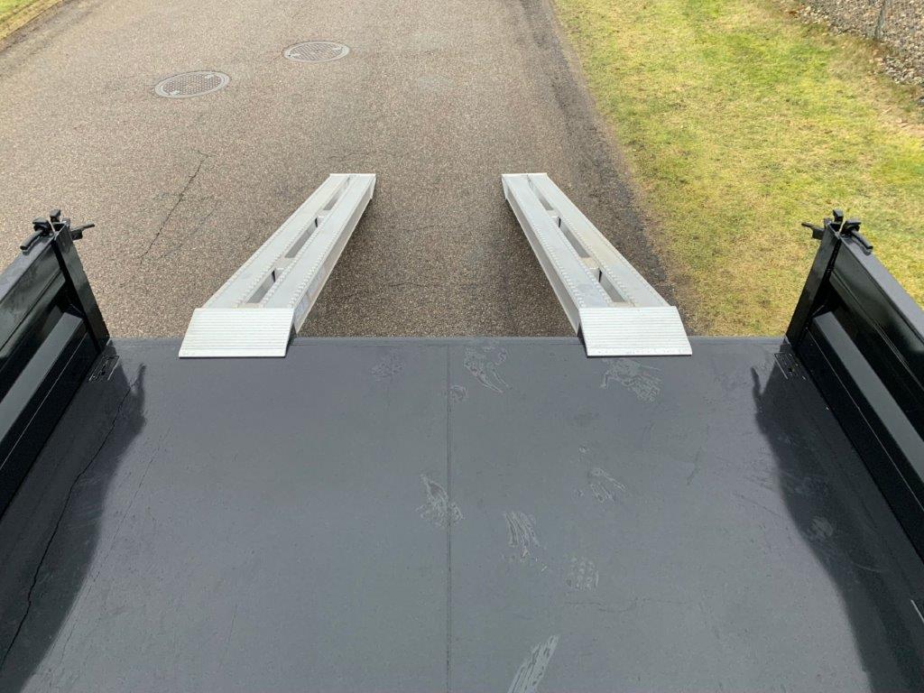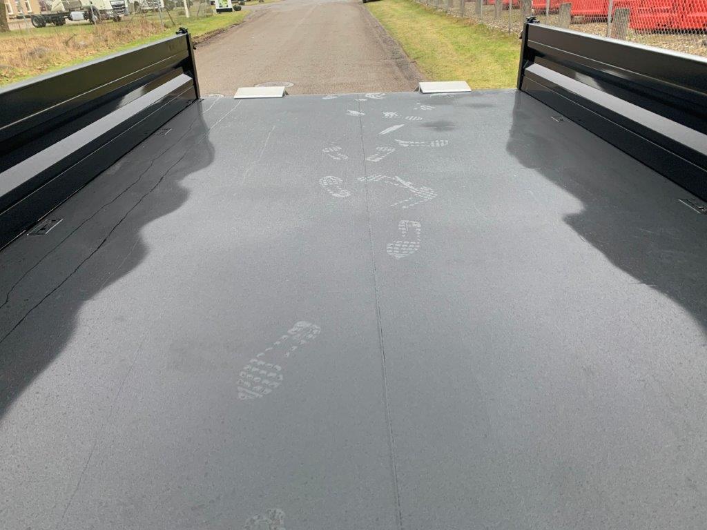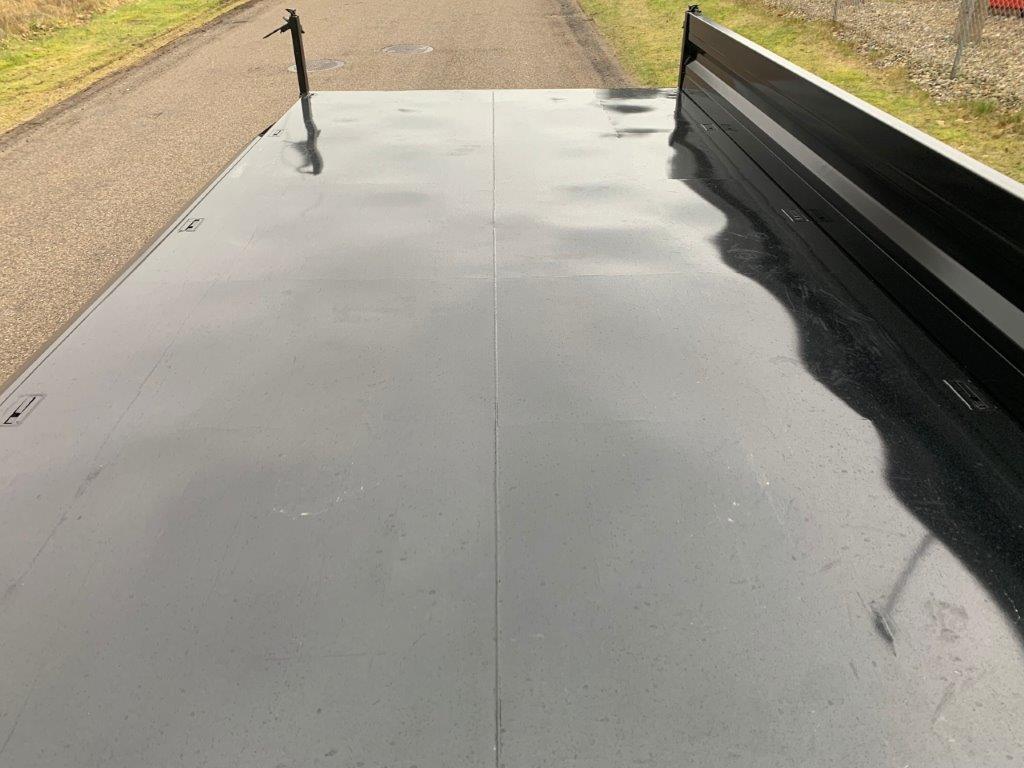 Ladbunden er opbygget af stål, 450 mm aftagelige stålsider + stål bagklap. Fronten er boltmonteret og kan også afmonteres hvis det ønskes. Siderne er udstyret med fjeder-træk som ses på fronten gør det enkelt for en person, at åbne og lukke siderne uden besvær - tilhørende 2 stk. løse 8.000kg (par) 3.000 x 360mm alu-ramper opbevaret i magasin mellem chassisvangerne - trækkes ud bagerst på kærren - 1.750mm lang trækstang med 57mm trækøje med en koblings længde på 7150mm - Trækstangen er højdejusterbar fra 750 til 1050mm - læssehøjde 960mm - Kærren er udstyret med BPW aksler med tromlebremser på parabel fjedre - Galvaniseret chassis og bestilt med RAL 9005 Tiefschwarz sort lakeret lad sider, kan også leveres i ønsket RAL farve ved bestilling