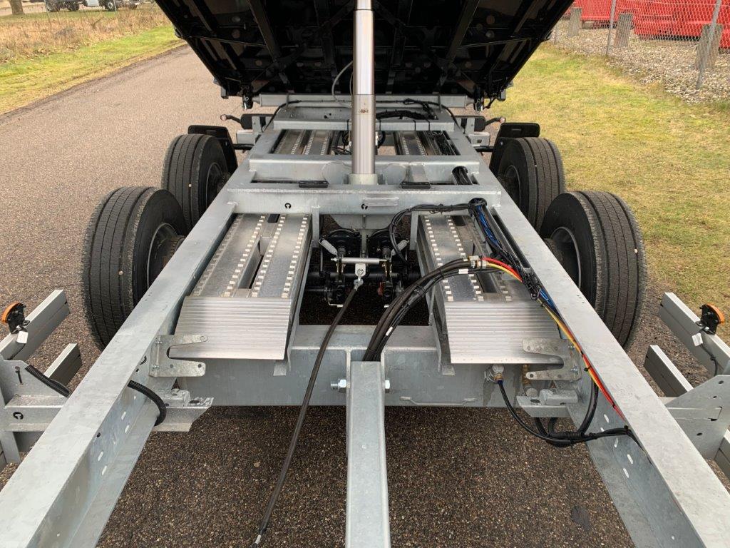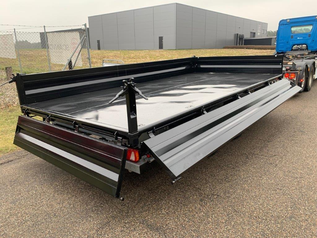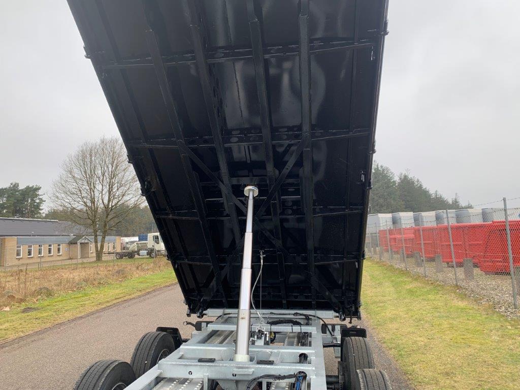 Opbygget med 5000 mm  3-vejs tip - via 1-strengs hydraulik fra forvogn. (bagtip + sidetip til begge sider)