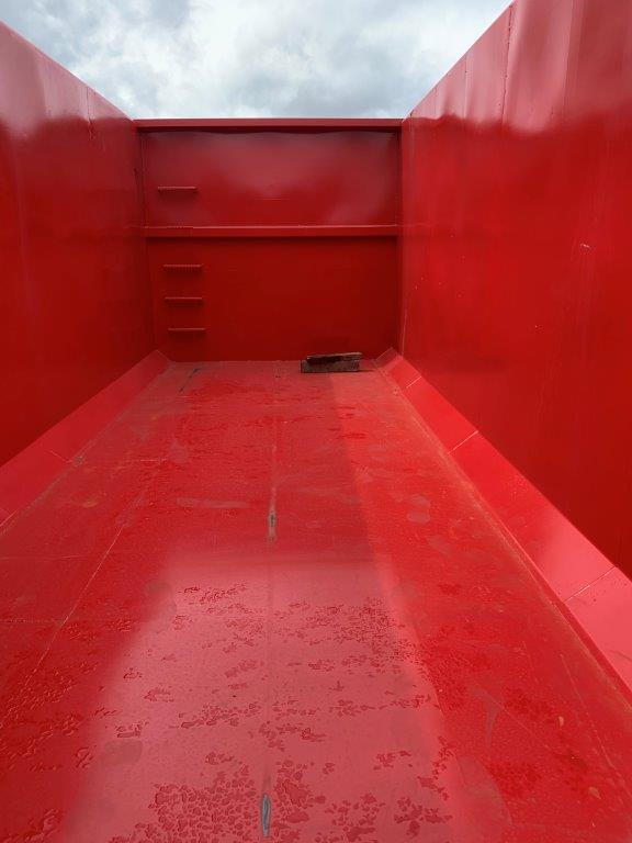 indv. lænde 6200 mm - udvendig total længde 6500 mm - indv højde 2200 mm bredde 2350 mm - 5 mm. bund og 3 mm i siderne - optræk til krog og wire hejs - Sidehængte bagdøre - Lakeret i RAL 3001 signalrød (Farve kan ændres frem til 2 uger før levering) - 750 mm. i vange afstand - kraftig surrringsstang lang yderside - diverse kroge øverste til til net - fodtrin på forsmæk + indv i kassen