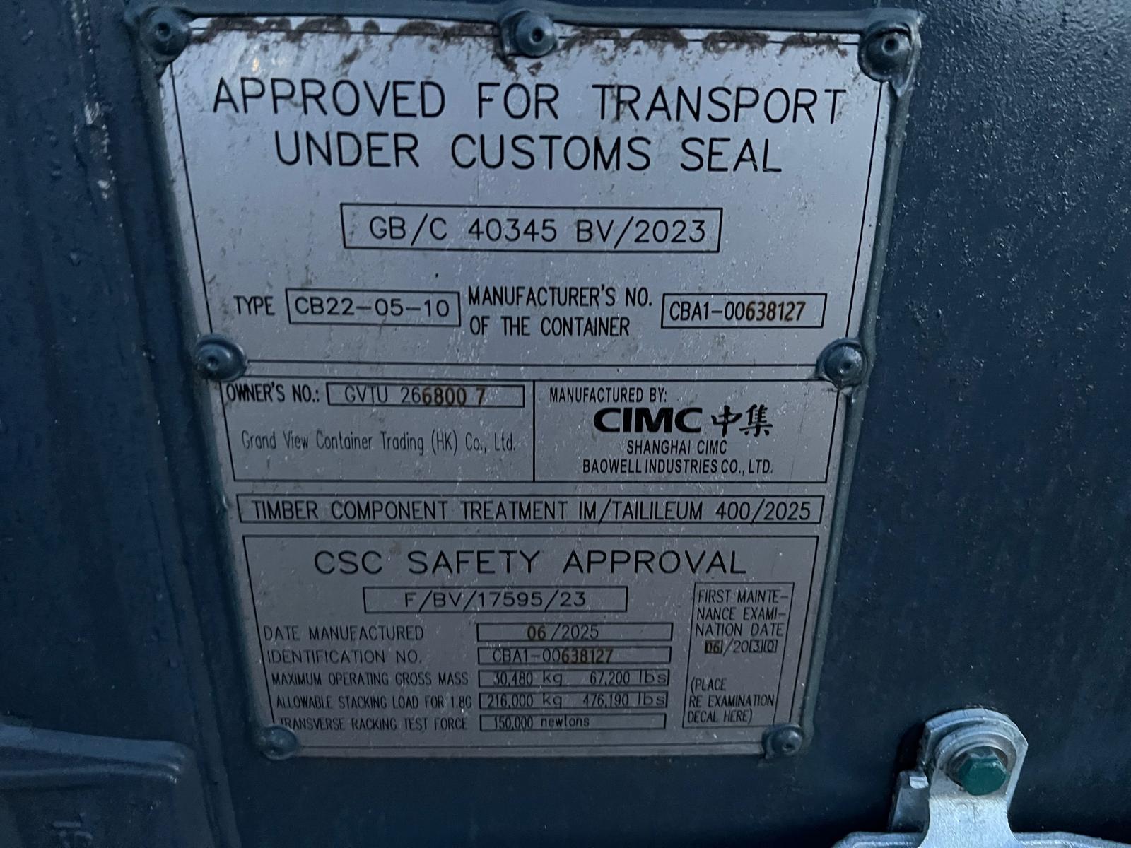 Indvendige lad mål: L 5870 x H 2400 x B 2335 mm - lys mål 2290 mm - udvendig ca. mål: L 6060 x H 2590 x B 2438 mm