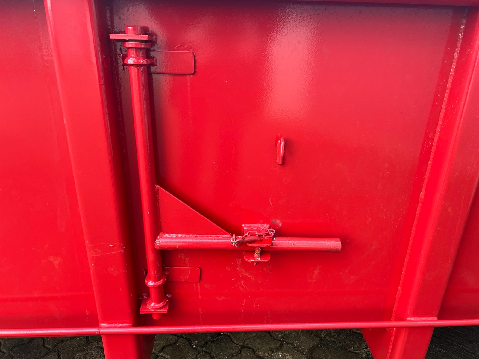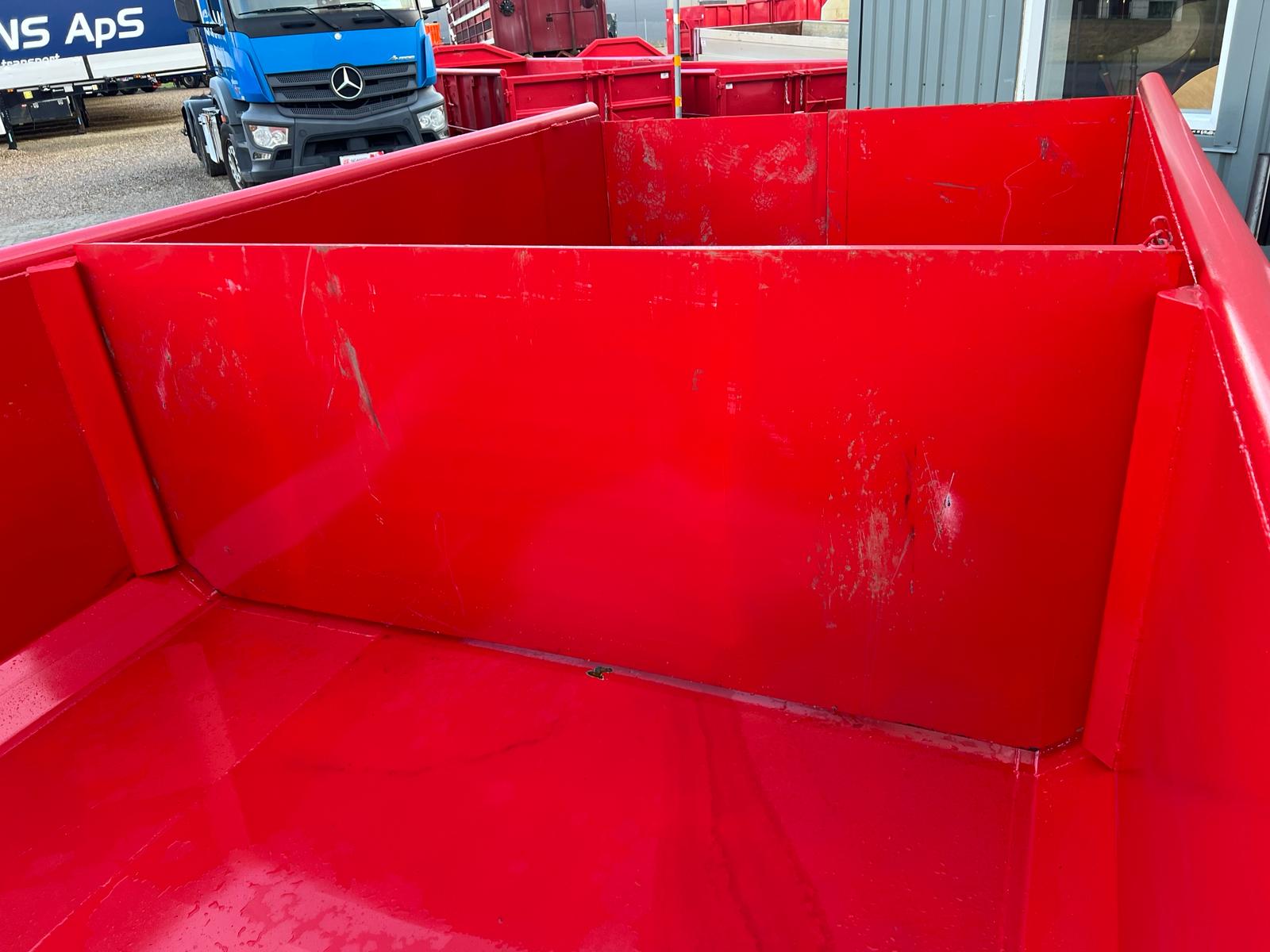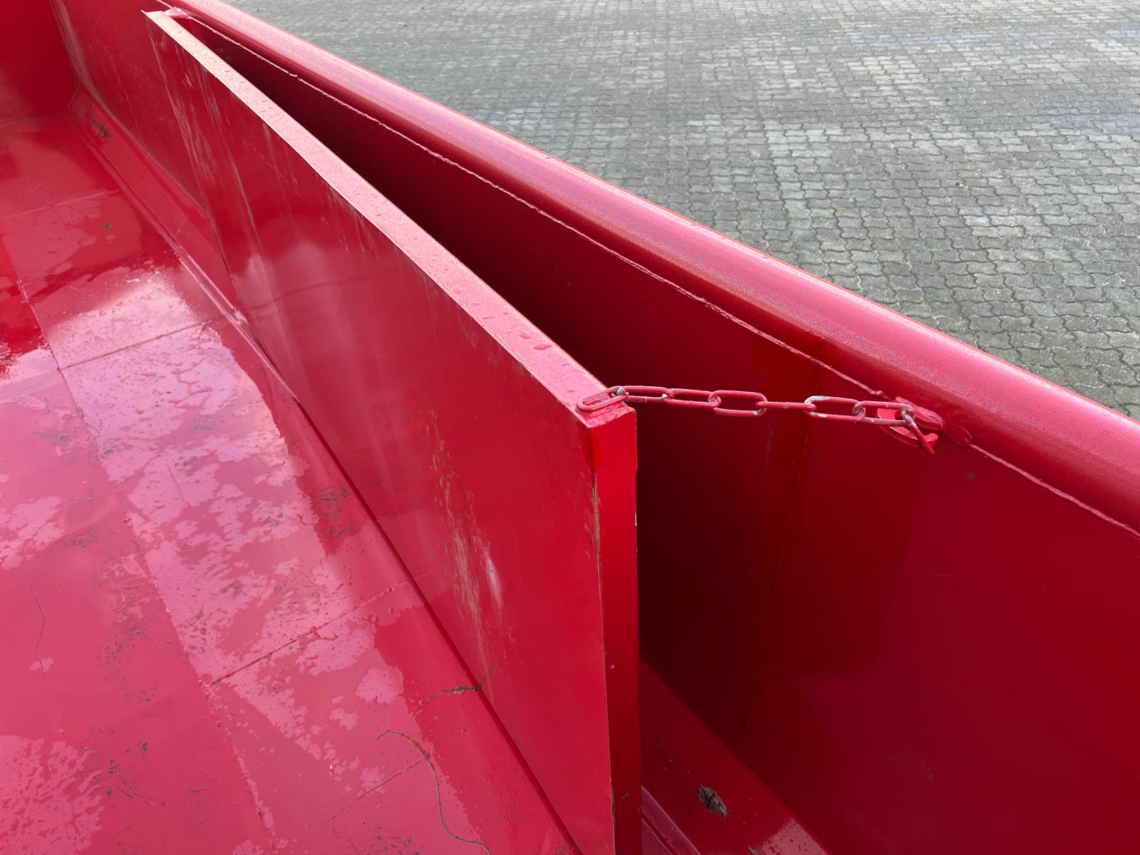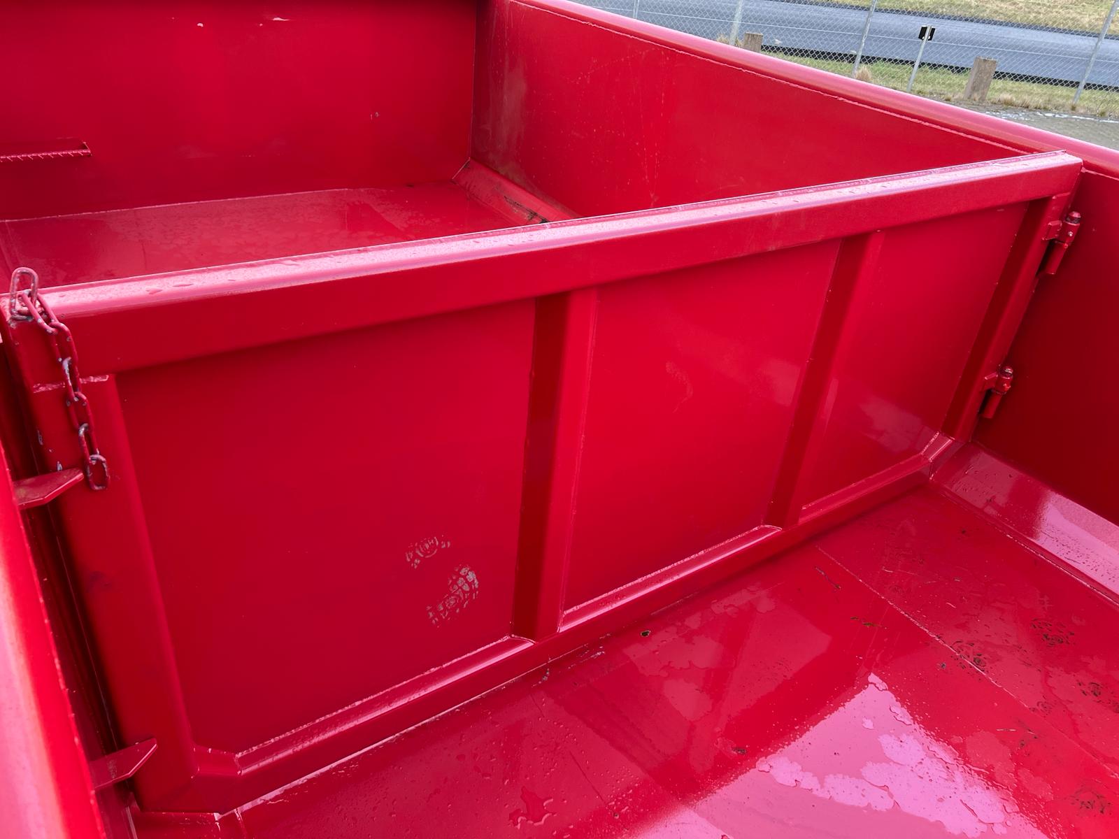 5 mm. bund og 3 mm. sider i S235 stål - Beslag til krog og wire - Sidehængt bagdøre - Lakeret i RAL 3001 Rød (Farve kan Ændres frem til 2 uger før levering) - 750 mm. i vangeafstand - Surringsstang lang yderside - Trin på forsmæk.