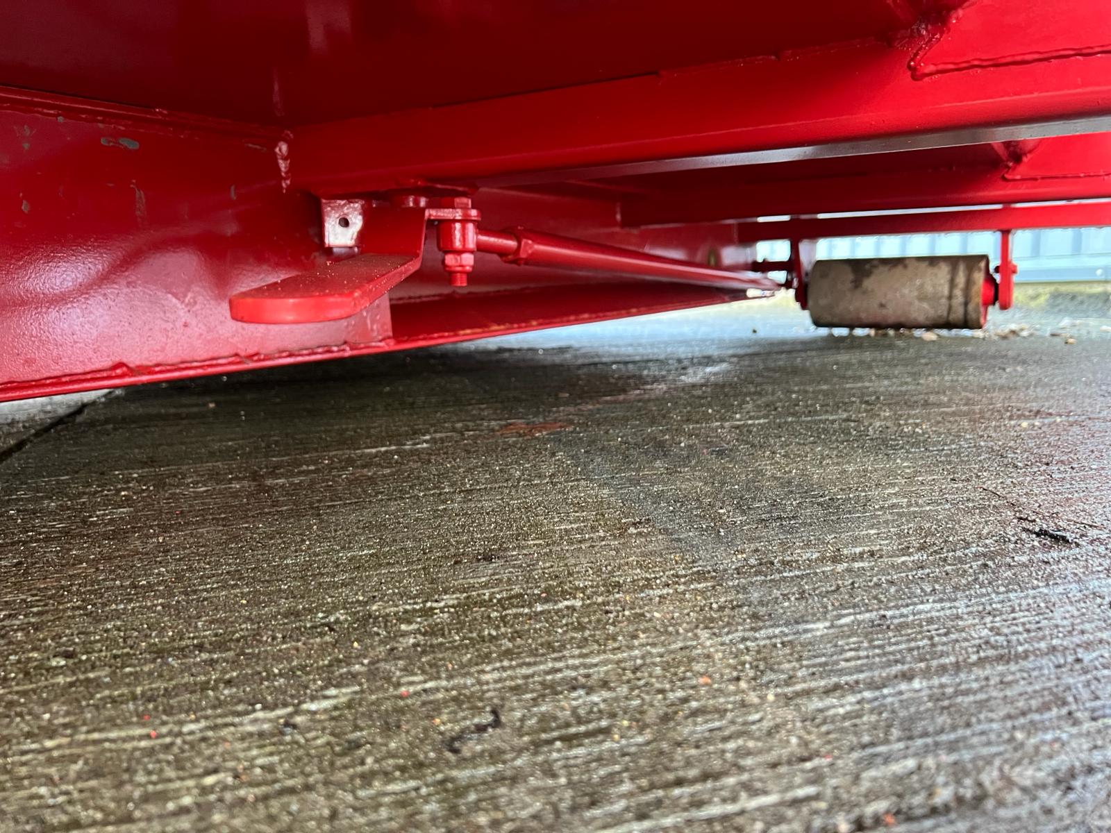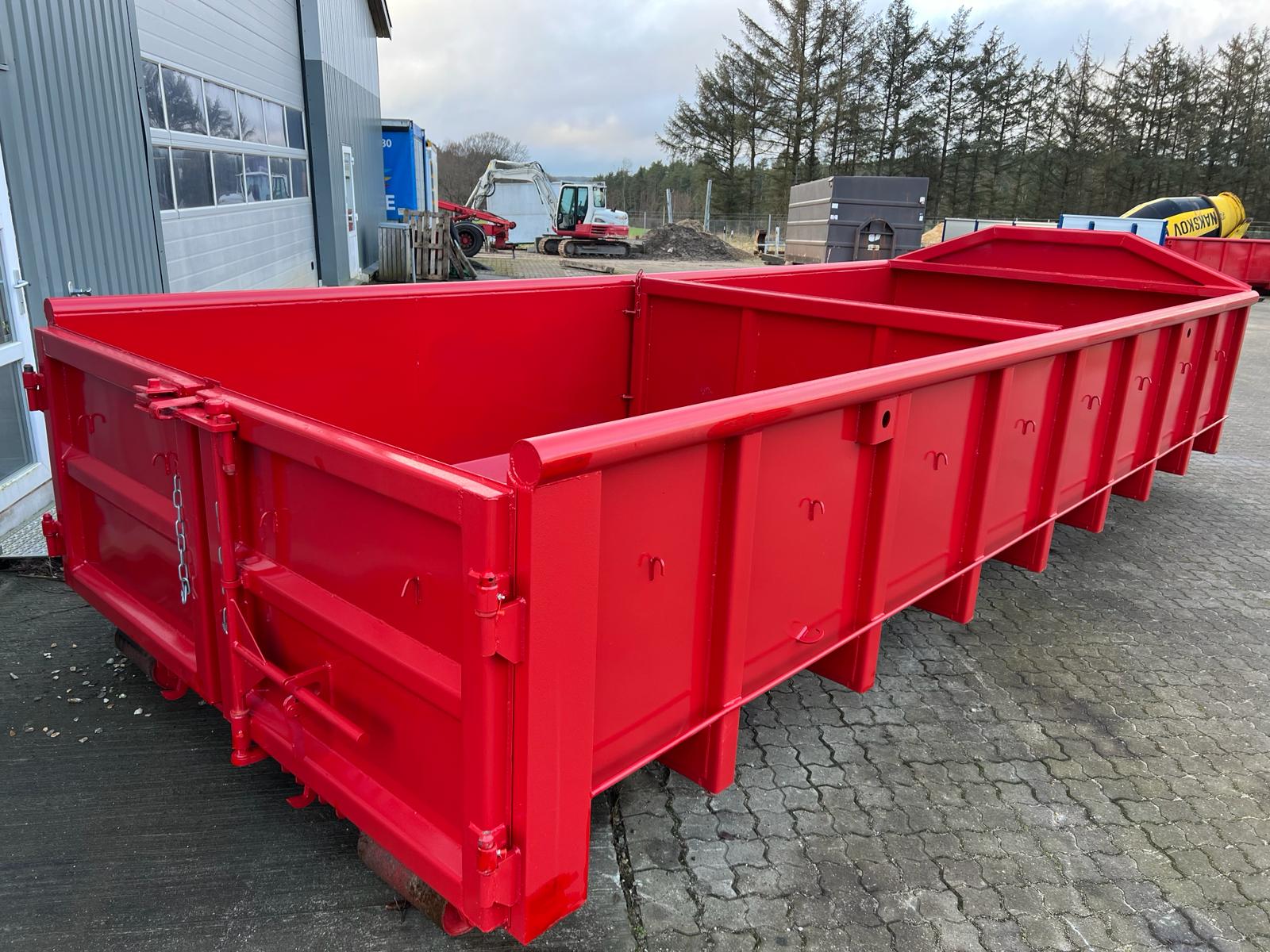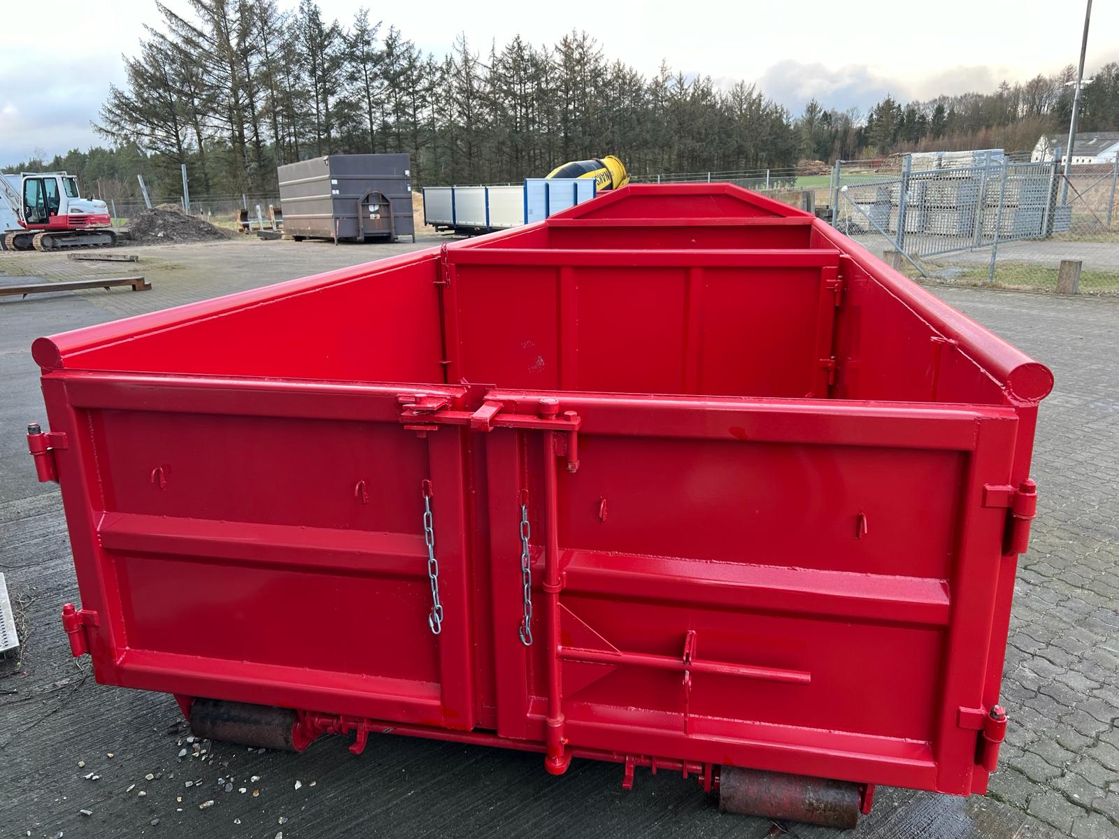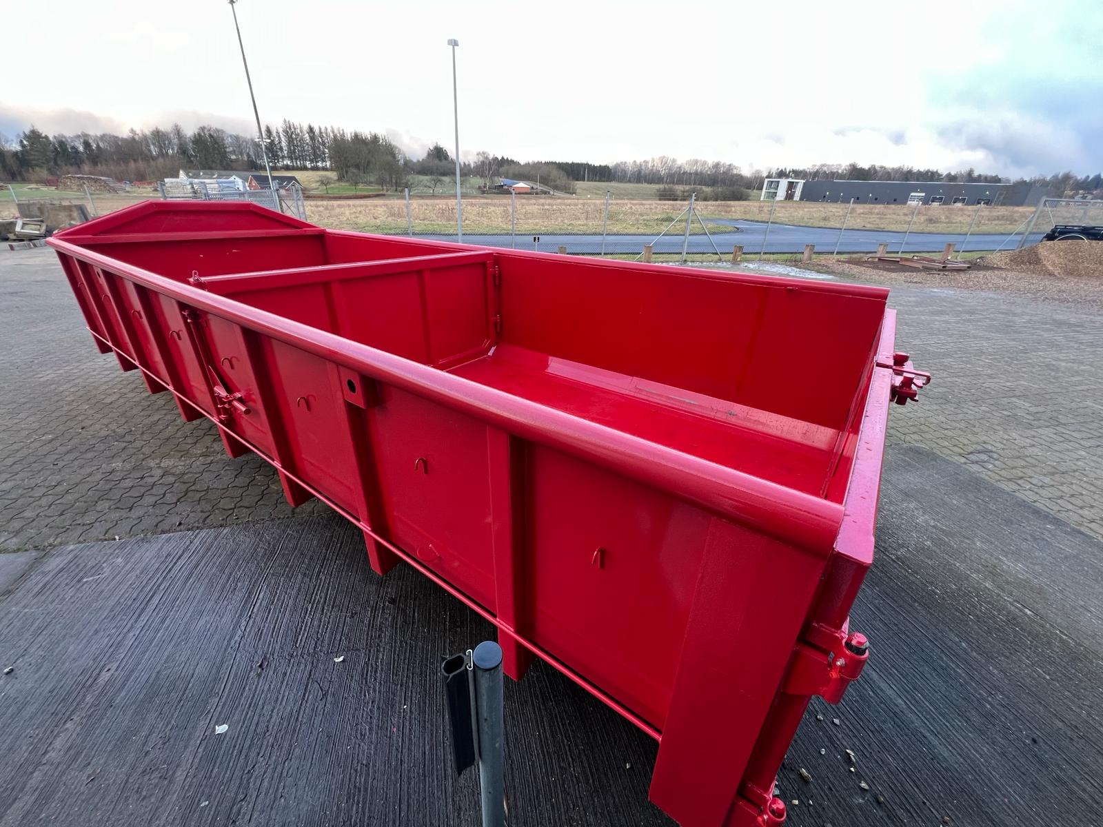 5 mm. bund og 3 mm. sider i S235 stål - Beslag til krog og wire - Sidehængt bagdøre - Lakeret i RAL 3001 Rød (Farve kan Ændres frem til 2 uger før levering) - 750 mm. i vangeafstand - Surringsstang lang yderside - Trin på forsmæk.