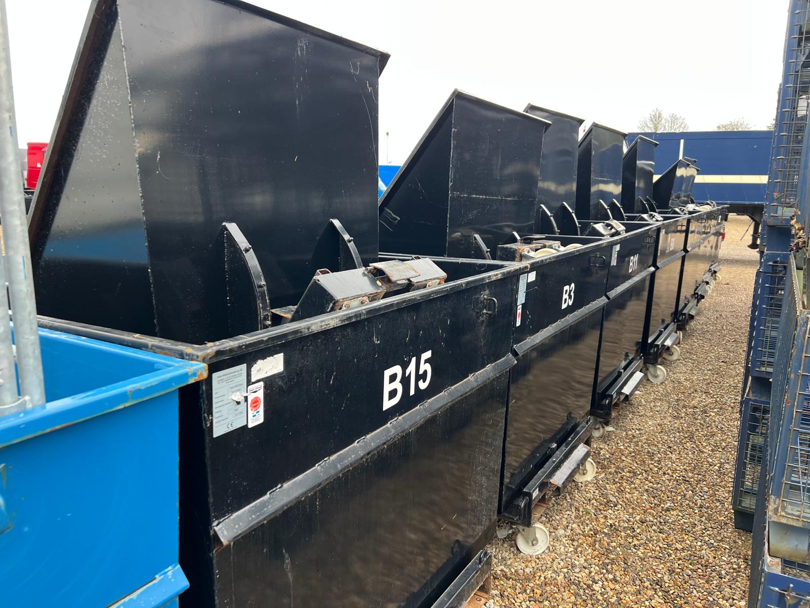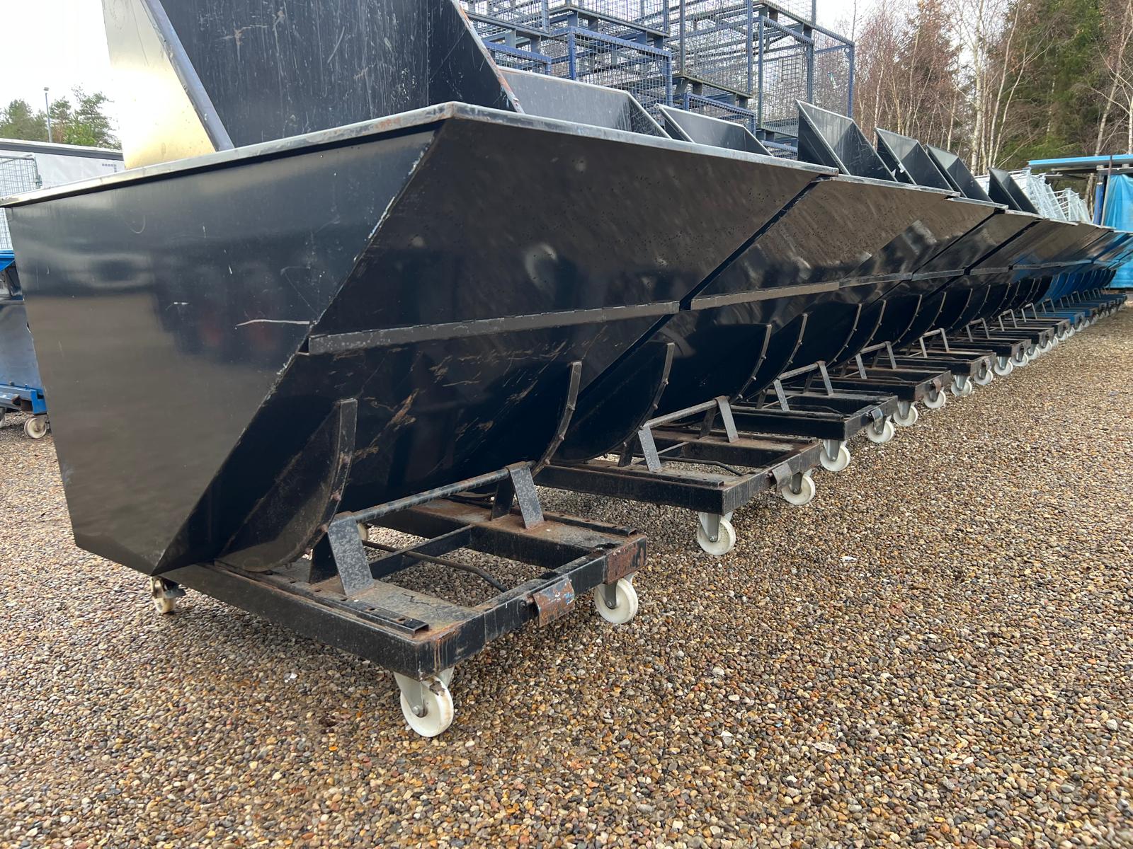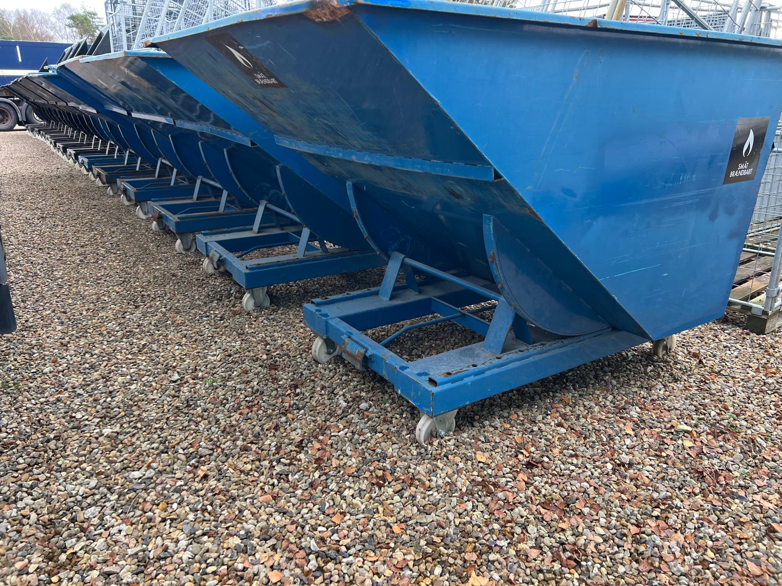 Vi har en del på lager and andre containere bure + forskellige vippe container med gaffellommer og på transporthjul