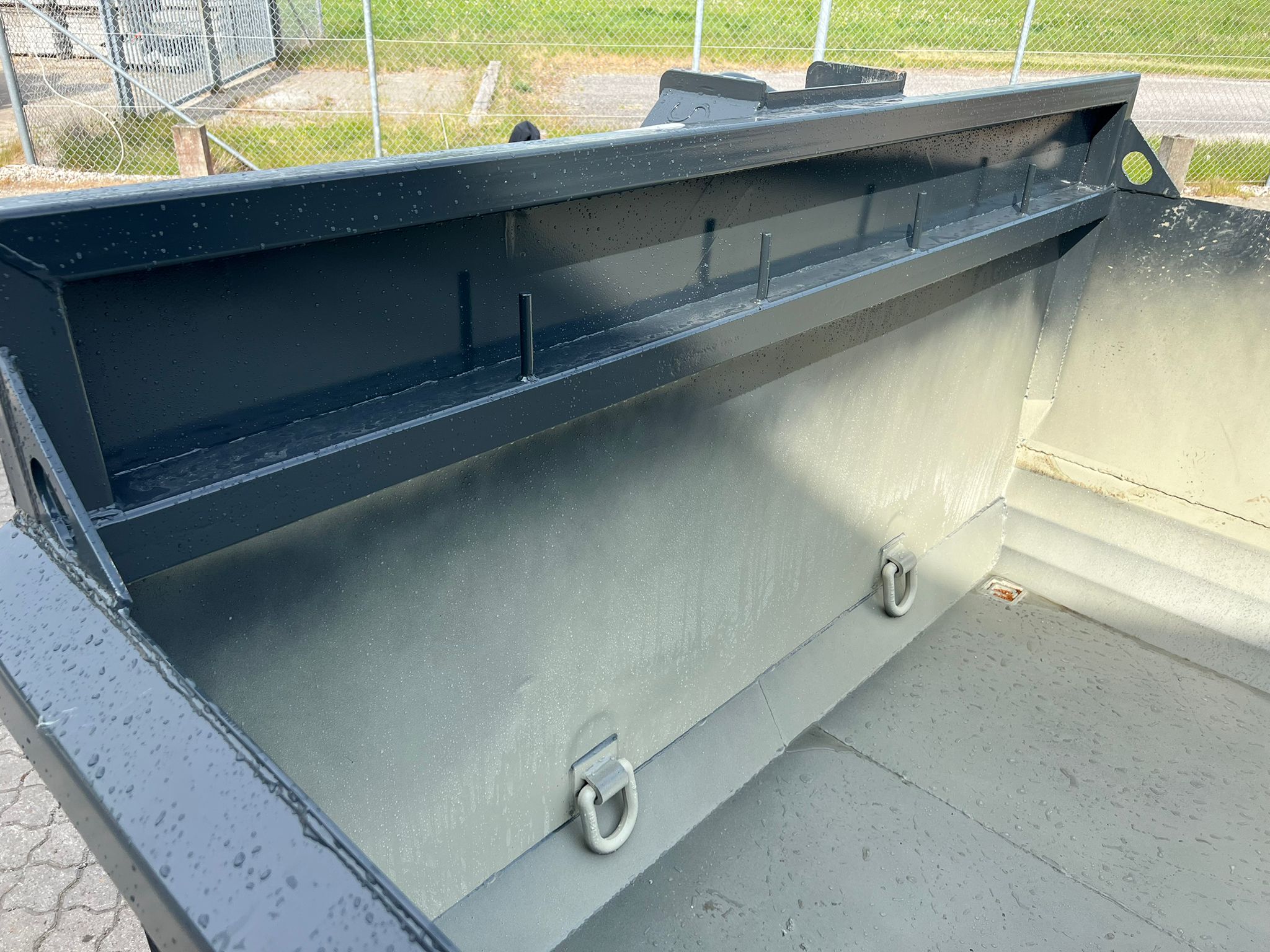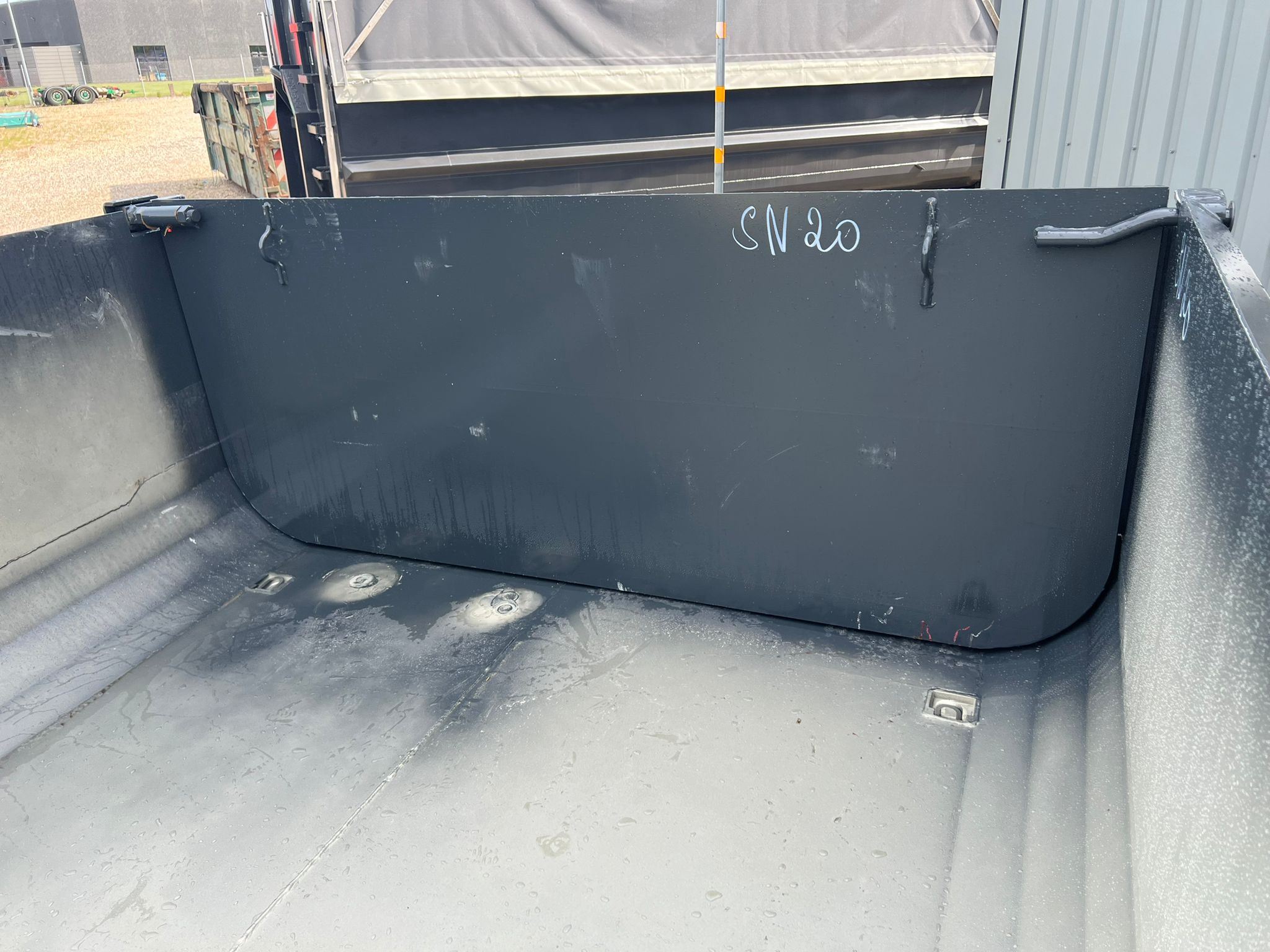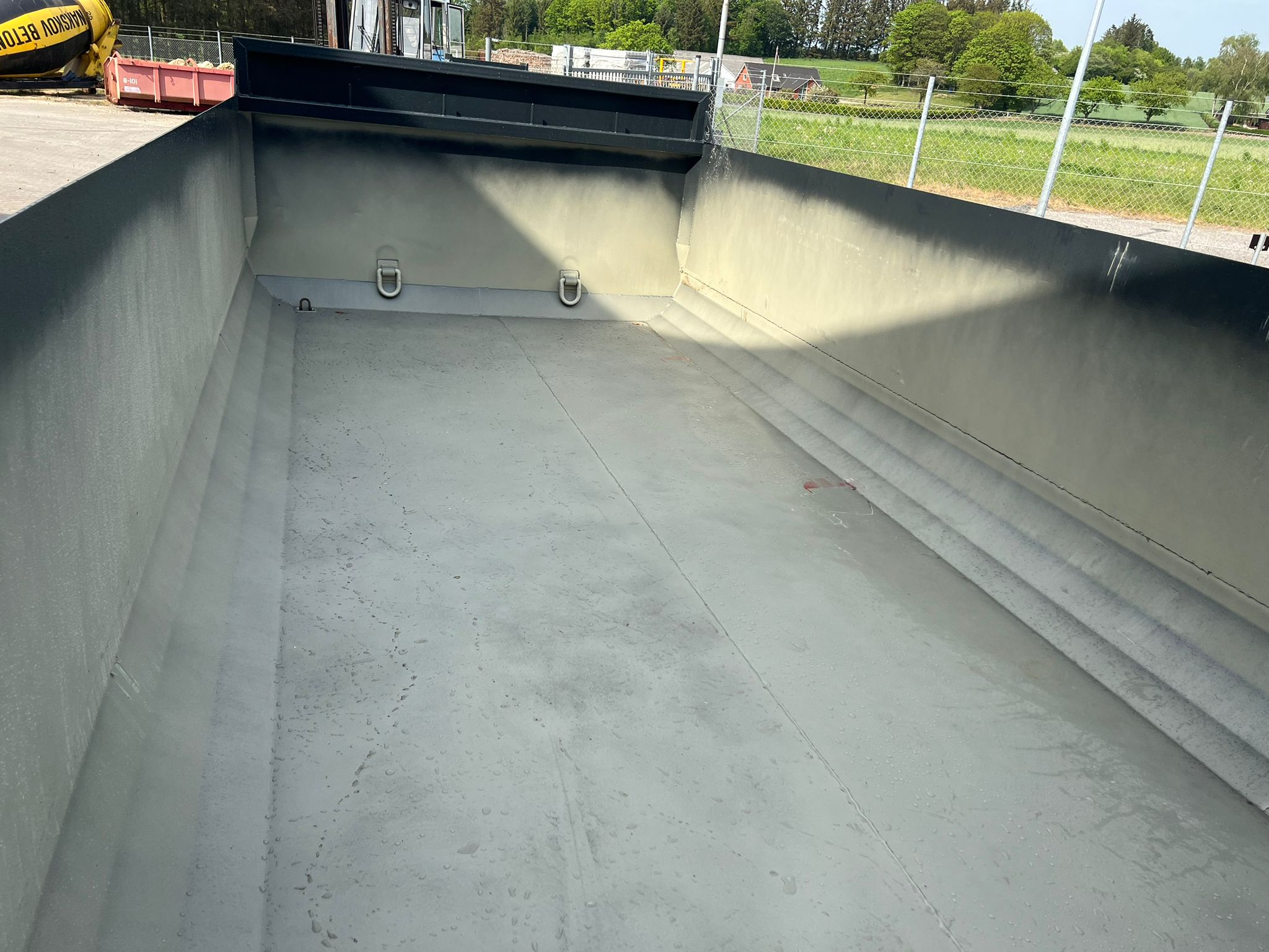 Containeren er sandblæst og lakeret i RAL 7021 (Sortgrå)