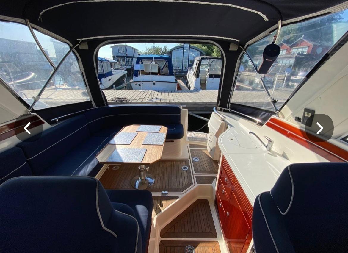 Forkahyt med dobbelt køje med luksus topmadras - masser af opbevaring med skuffer garderobeskab - seperat toiletrum med bruser mulighed inde - langsgående pantry med køleskab - keramisk kogeplader - lækker rundsidde gruppe - teaktræk gulv m.m.
