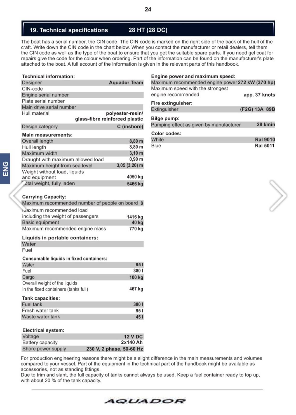 Masser udstyr: bov propel - el anker- varme anlæg - varmvands beholder - radio - nagavation - bruser udvendig - landstrøm 220/12 volt -- 45 ltr spillevands tank - 95 ltr frisk vandtank - 350 lt brændstof tank - dobbelt batteri pakke