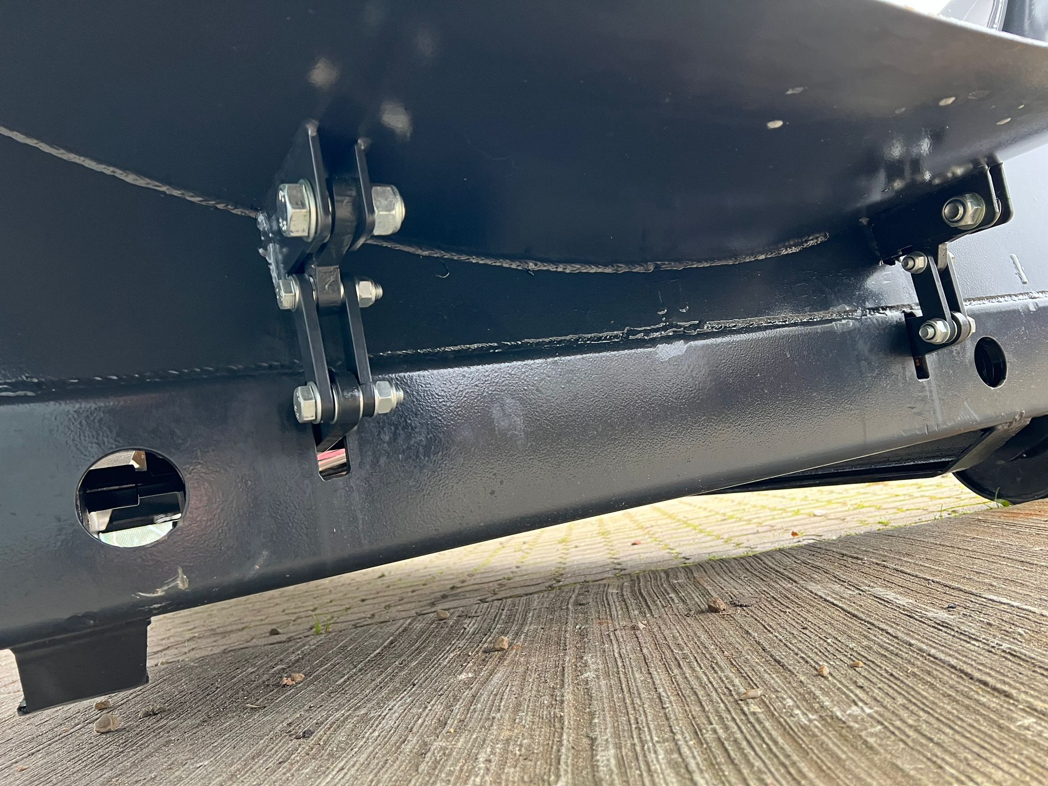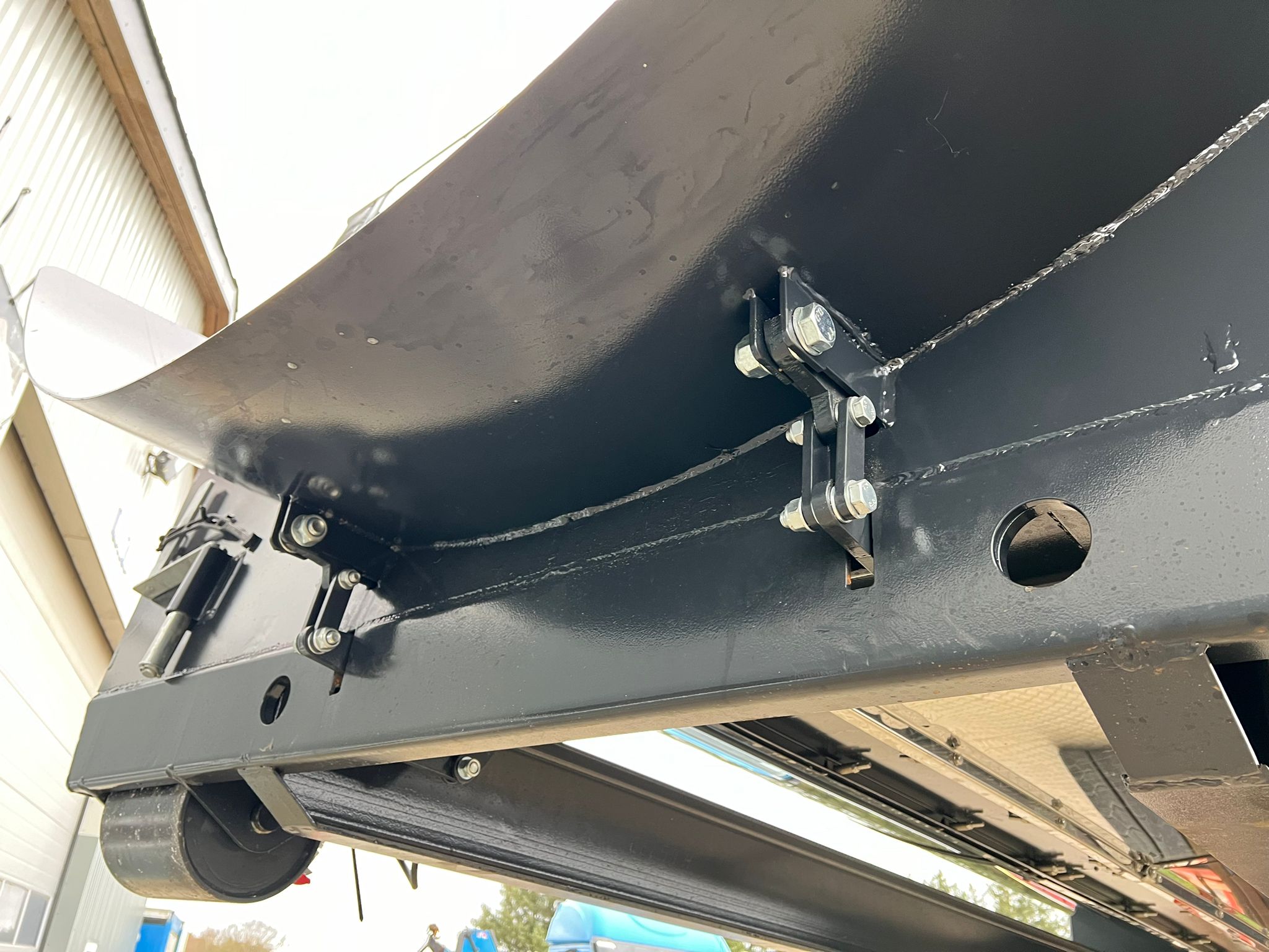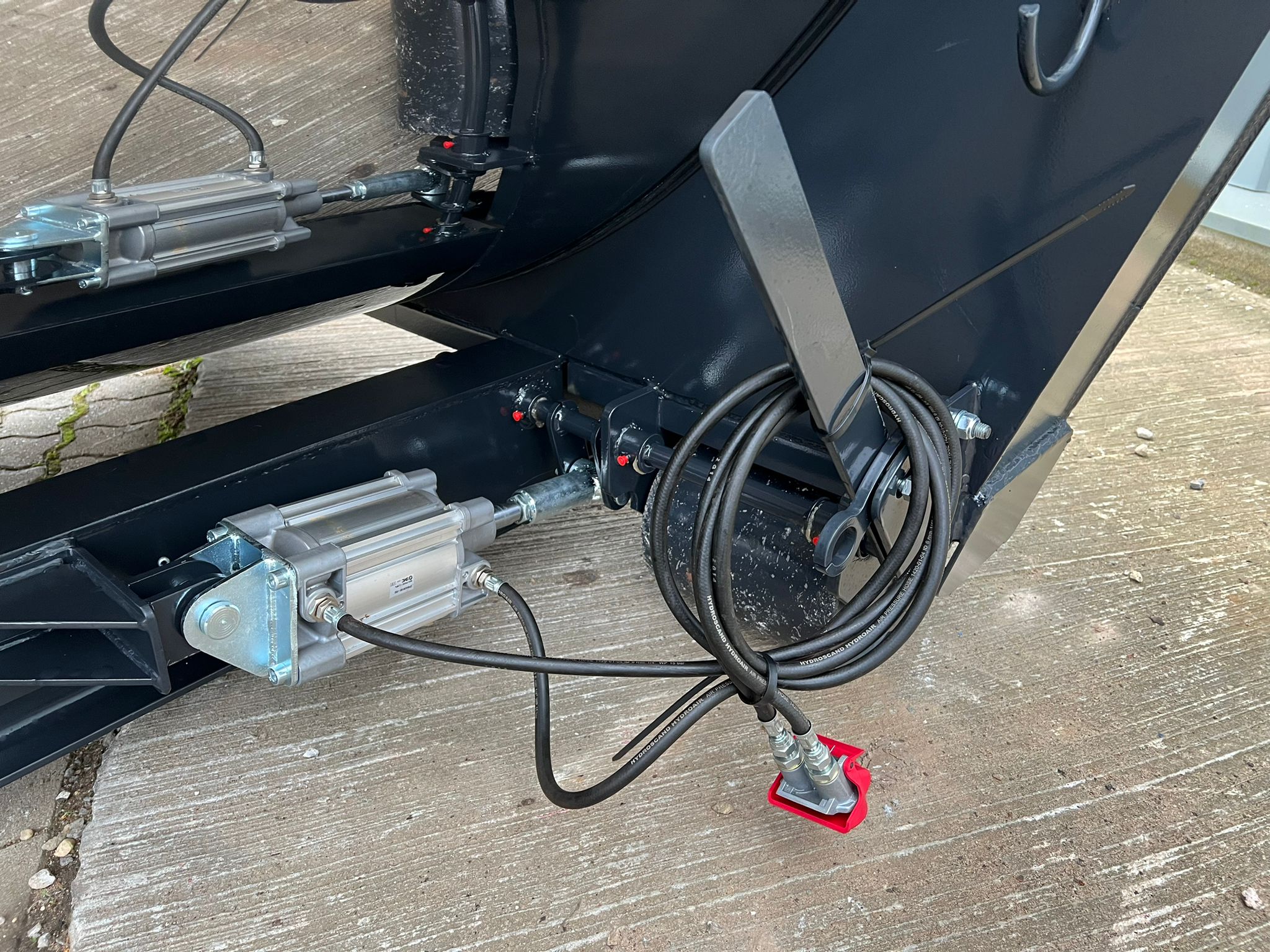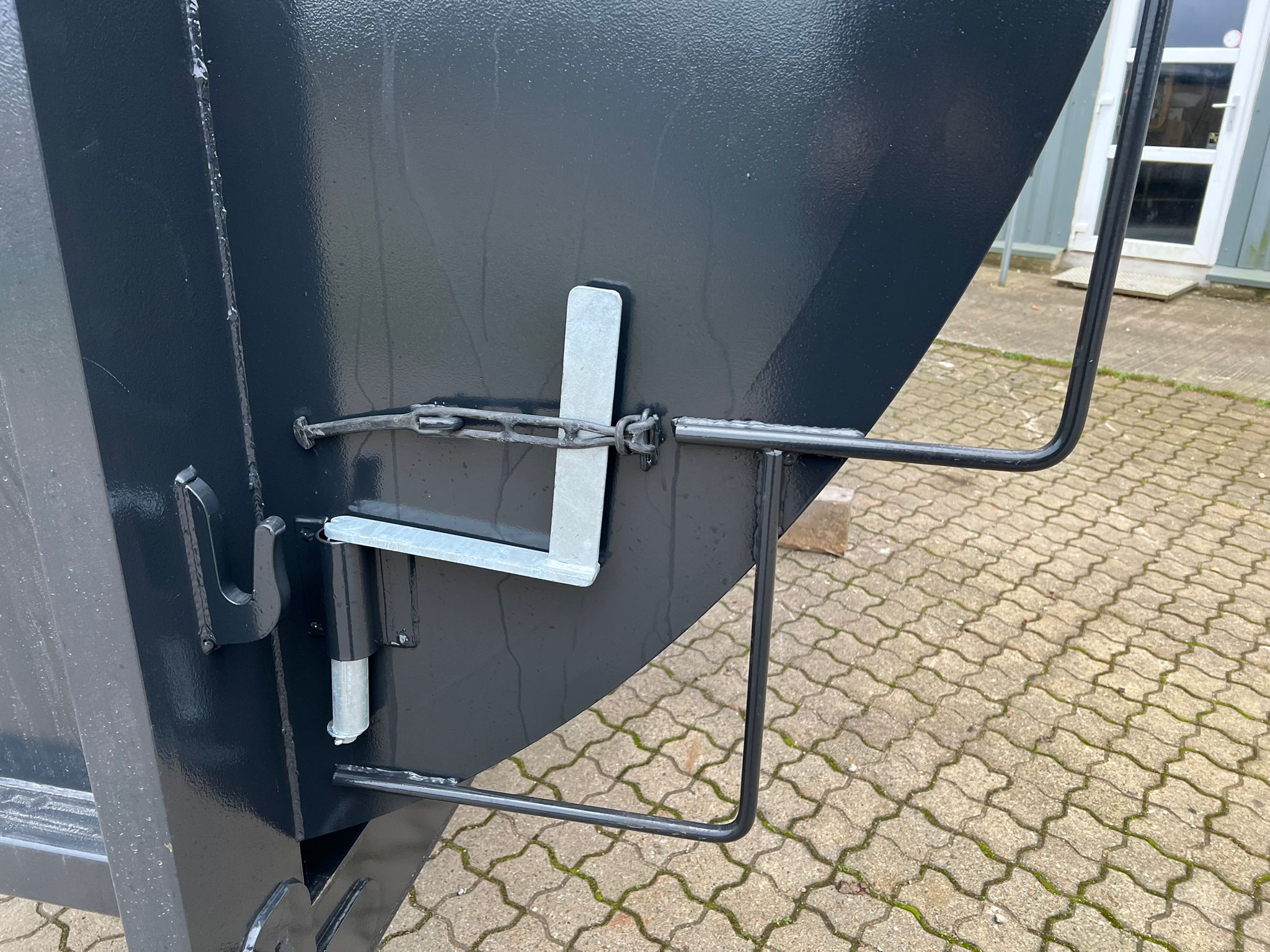 Hardox 450 3 mm stålindlæg i kassen - beklædt udvendig med 1 mm Rustfri plade - 1-delt bagsmæk som åbner nederste del ved brug af aut. bagsmæk - Lakeret i RAL 7021