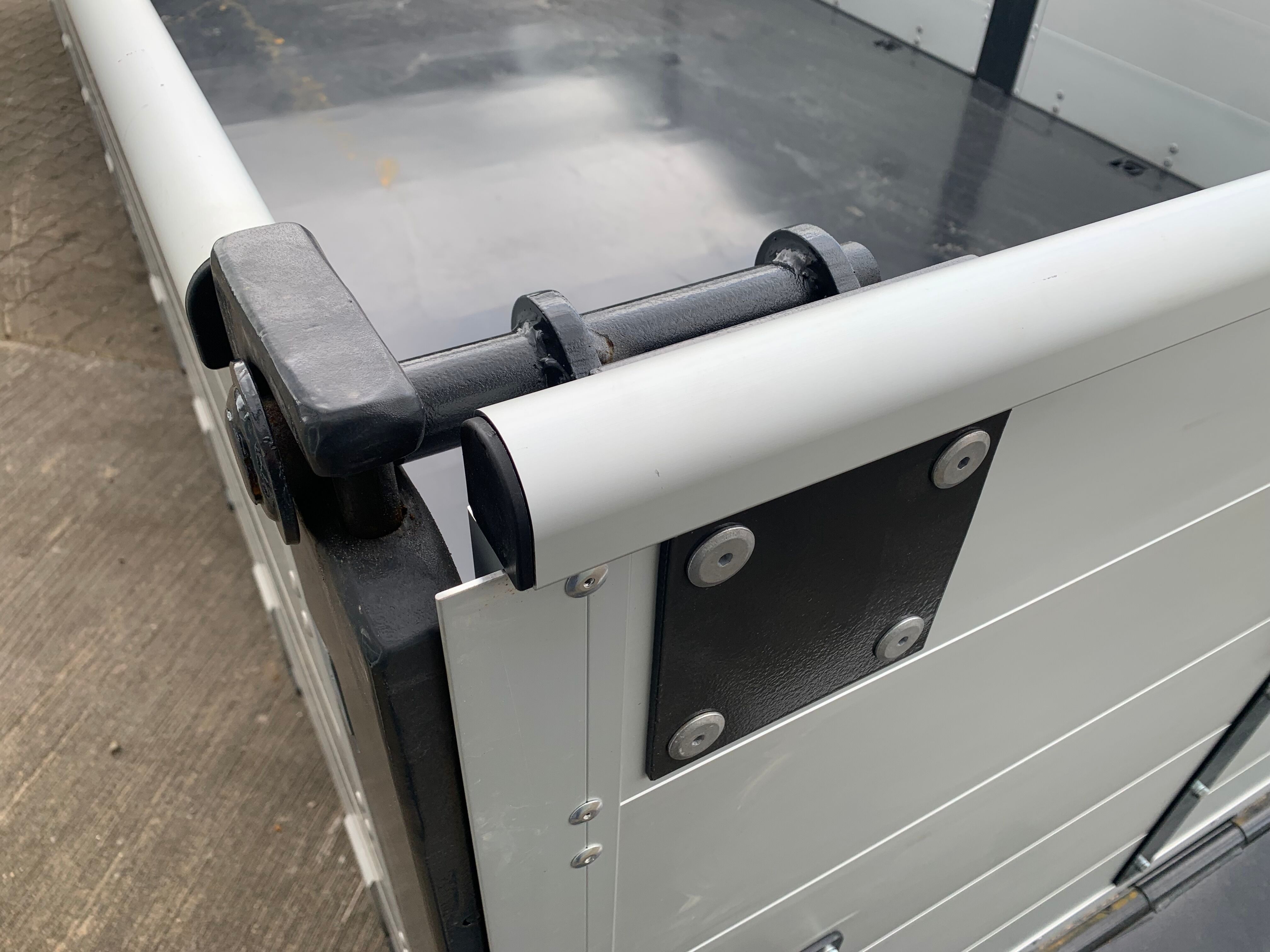 5800 mm åben container til krog og wirehejs - 3 delte alu sider med 4 mm godstykkelse + K5 kinnegrip stolper - Aut. bagsmæk