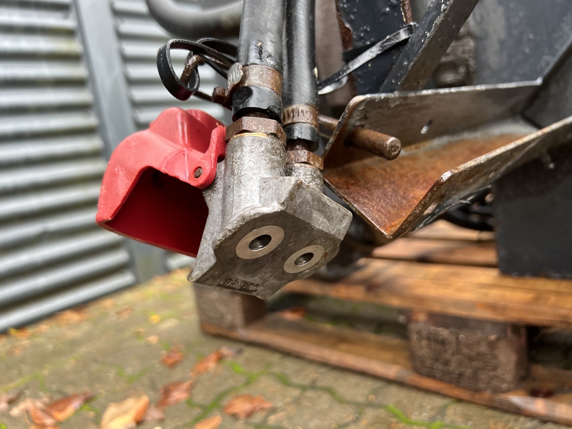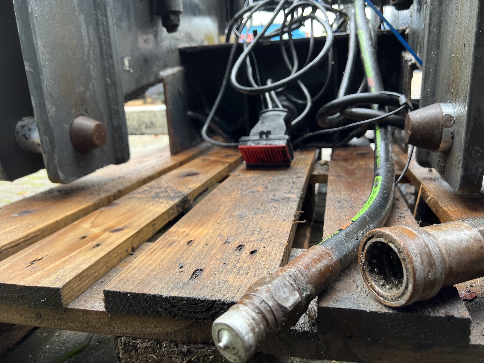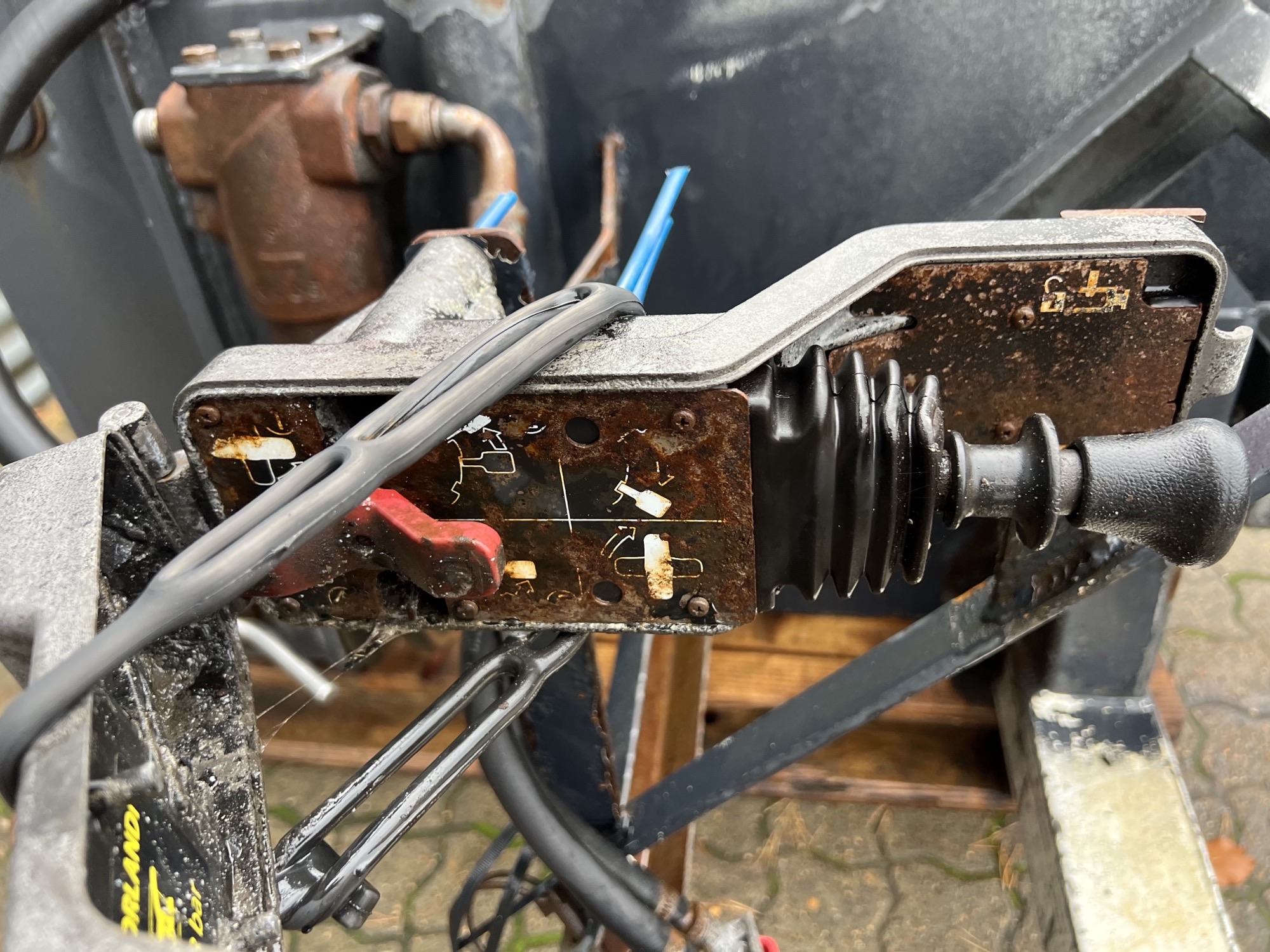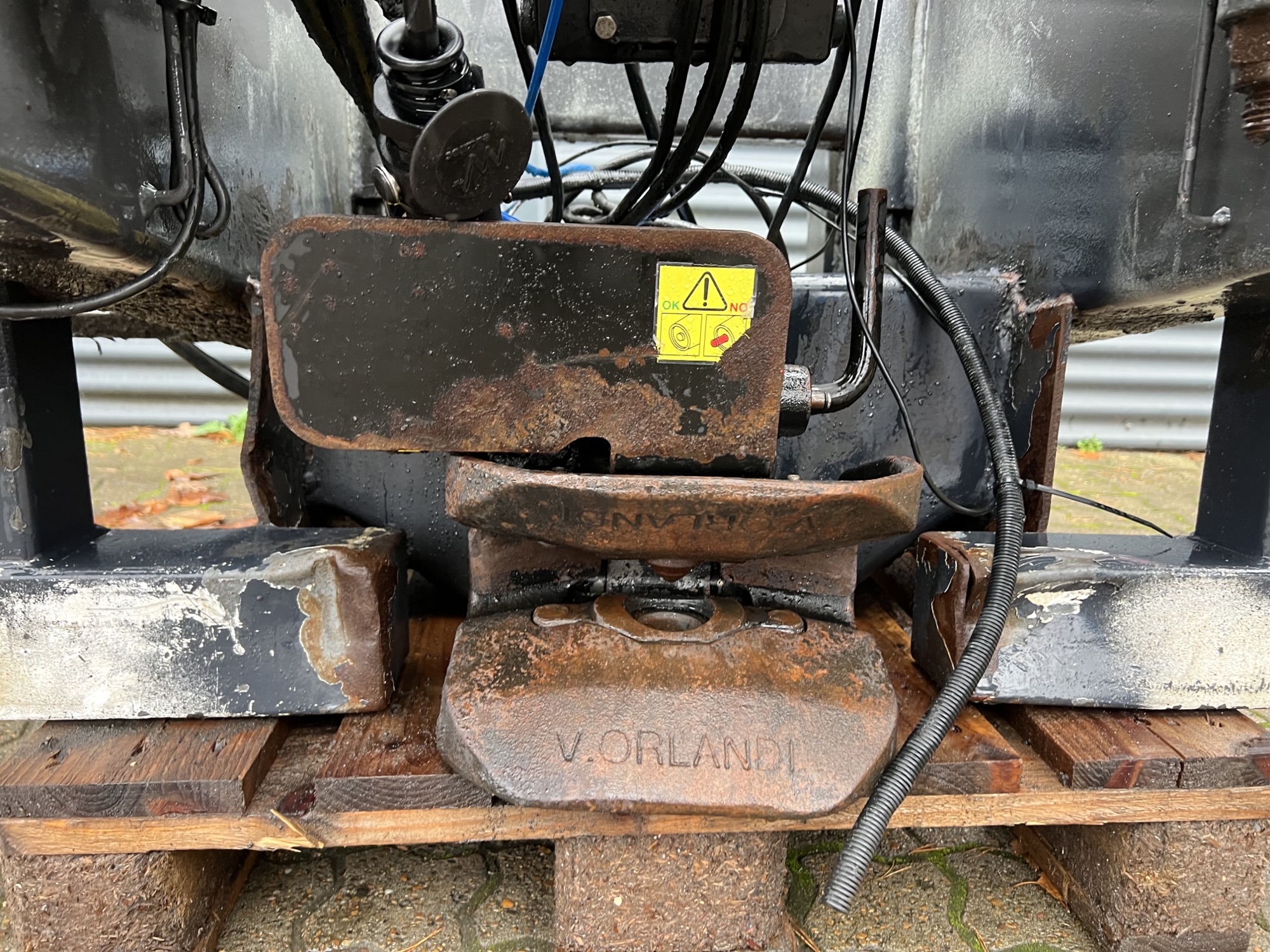 Aftagelig HMF 20 t/m krankonsol med HMF træk travers med D værdi - 190 kN - V -værdi 70 kN iht. HMF teknisk dokumentation - lys, luft og 1 strengs olie trukket med bagud - støttebens pladeophæng - Mål: 700 mm fra center til center mellem vanger - gaffelbredde xxx mm som går ind over kran ophængs beslag - 65 mm ophængs bolte - 480 mm fra nederste bolt til øverste - 1130 mm langt fra center bolt og bagud. - skurvognstræk - baglygter - værktøjskasse - grå med hvide lygtehuse trænger til sandblæsning