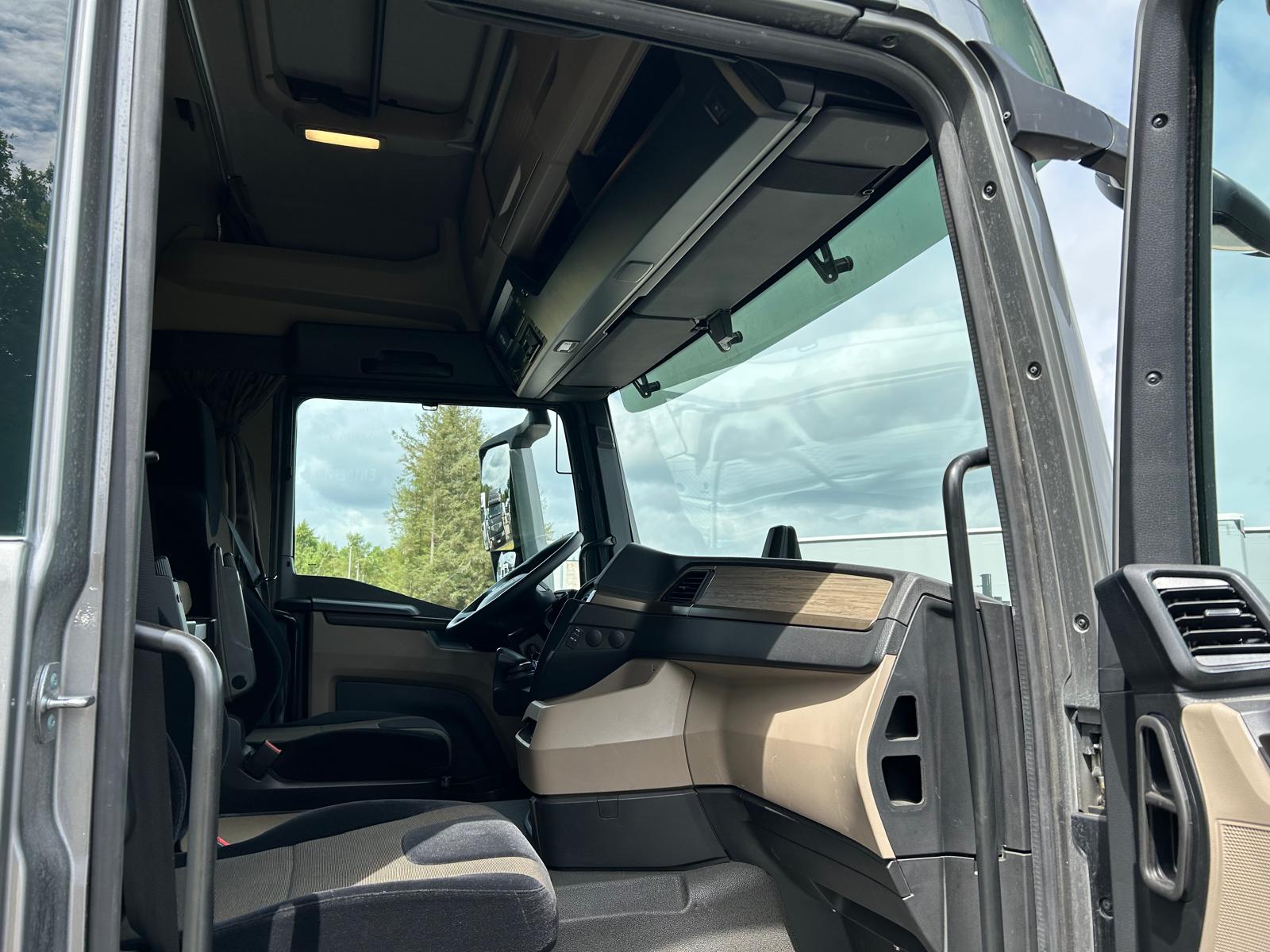 Sovekabine førerhus med højt tag - luft affjedret førerhus - 1 køje - klima anlæg - oliefyr - overskabe på bagvæg - køleskab under køjen - inverter 24/220 volt - Bliz lys - bak kamera - 2 LED lygter i trinkasse + 2 stk. under førerhus i for + 2 stk. bag