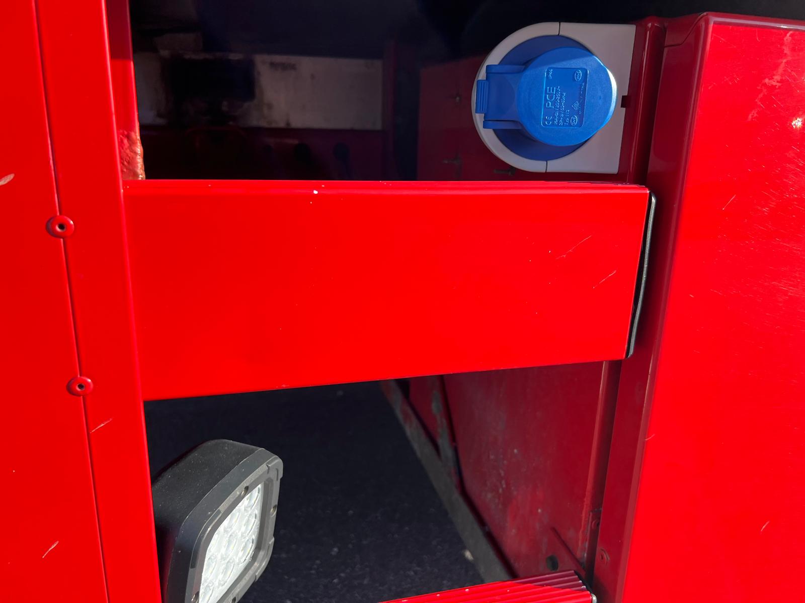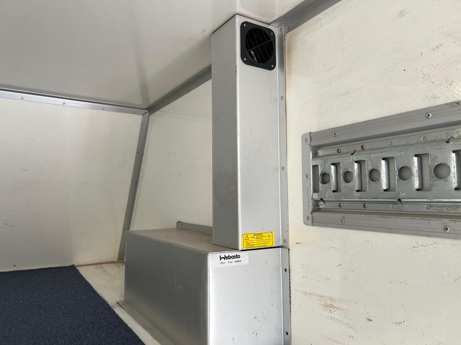 Glasfiber kasse fra Farre Karosseri med frembygget magasin til diverse flytte udstyr