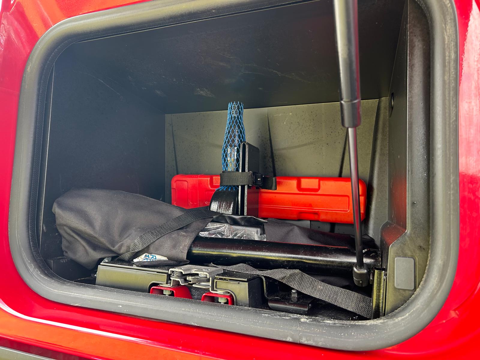 2 x LED lygter bag i + trinkasse - kamera ved træk - 2 stk. rotorblink - walkie - radio - mv. RAL 3003 fabrikslakeret førerhus
