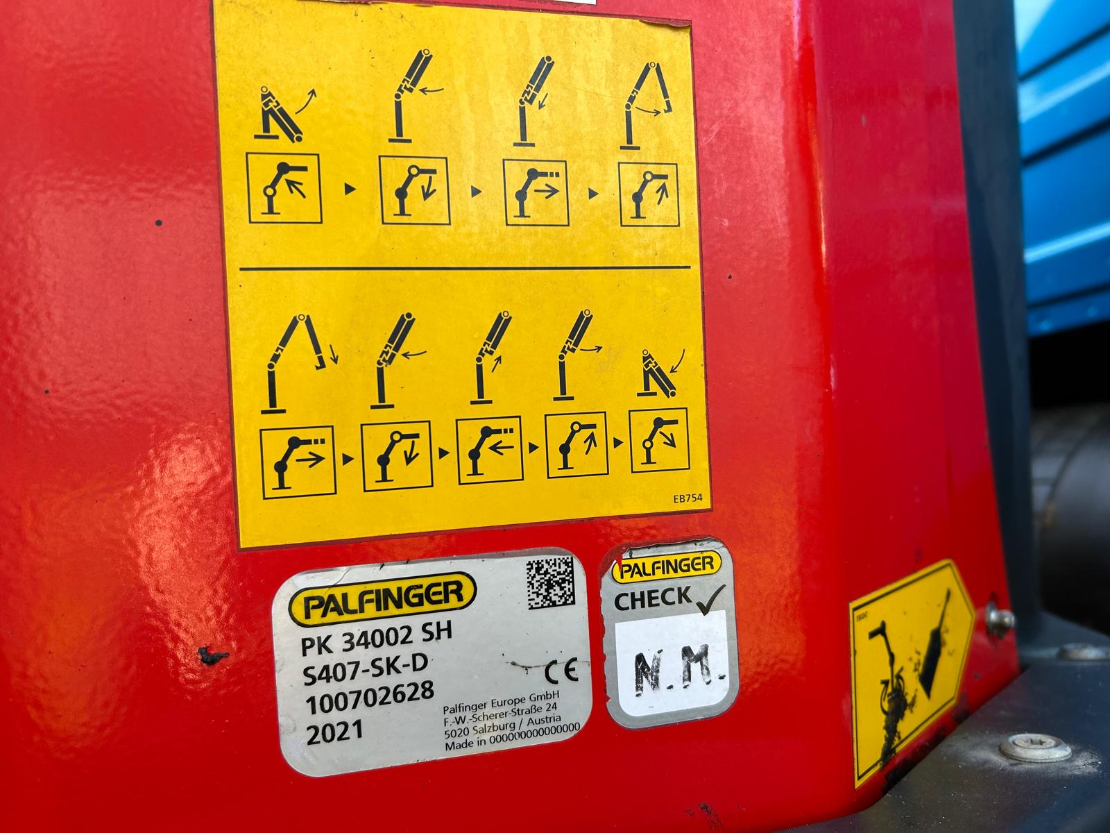 Palfinger PK34002 SH - E - 6 udskud rækkevidde 16,7 mtr = løfter 1420 kg - dobbelt rørføring - fjernbetjening - kraneftersyn foretaget 1/2026 v/2432 drifts timer - central smøring på kranen