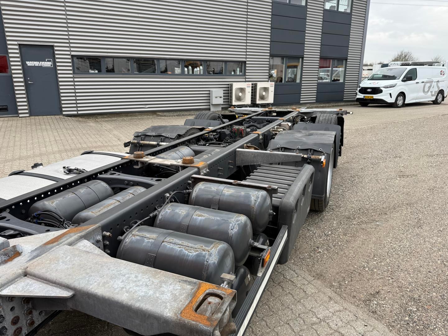 7820 mm containerramme til veksellad : køreposition 880 mm og sænket 830 mm hævet 1040 mm - værktøjskasse - underbygget kærre træk til 7820 mm kærre som også kan tilbydes