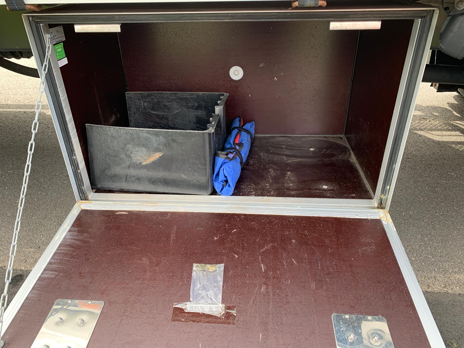 1070 mm - ved sænket bagende er den KUN 930 mm - 24 volt nato strømstik under lad - værktøjskasse samt strøbakke under lad