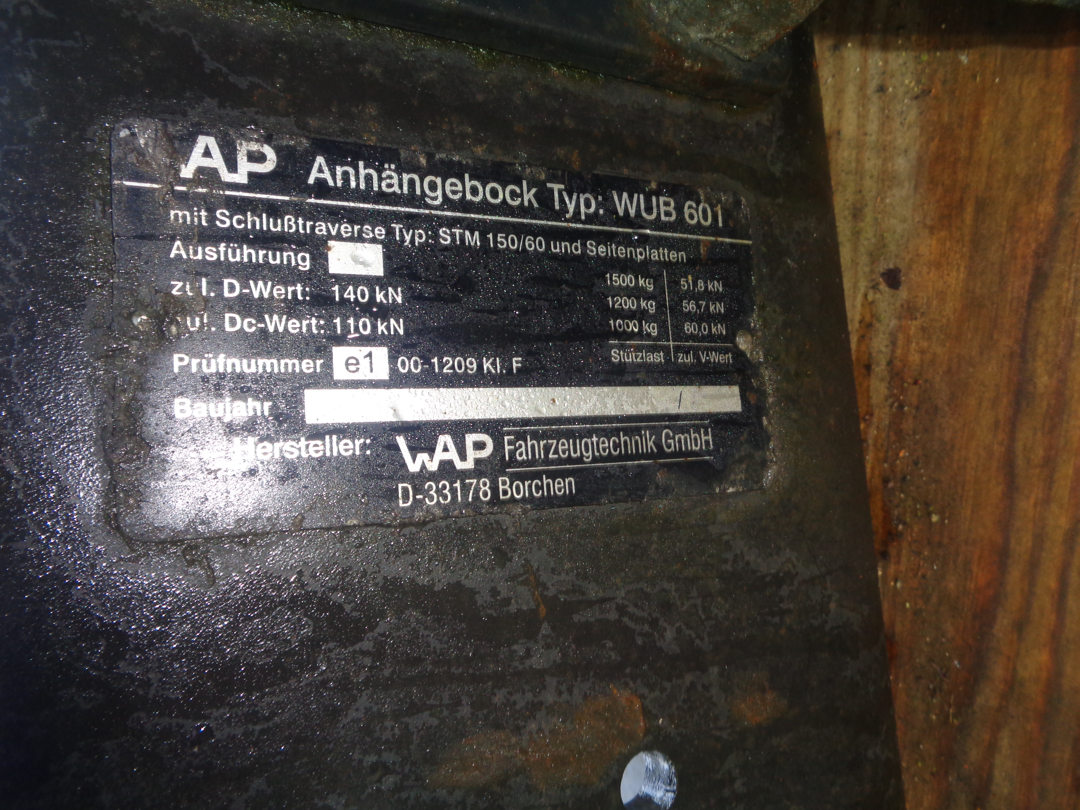 WAP Anhangerbock model WUB 601 monteret på underbygget træktravers med endegavlesplader