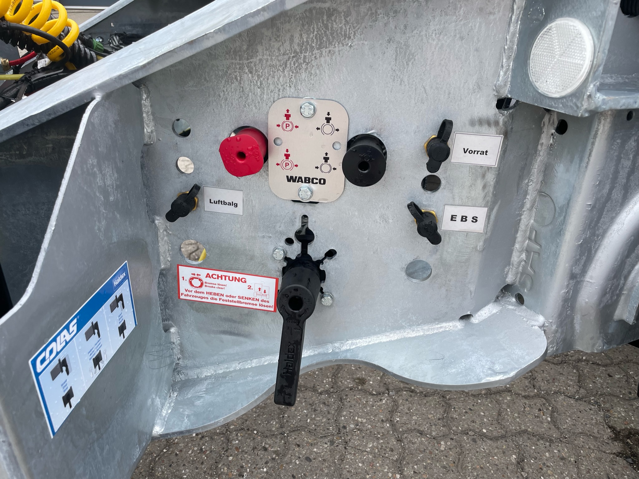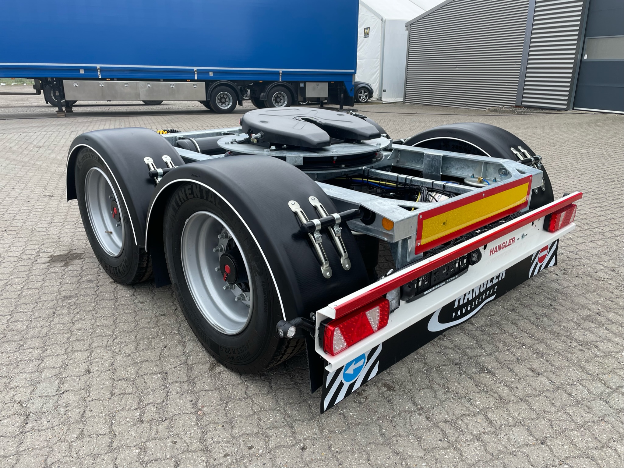 SAF aksler med luftaffjedring tromle bremser - galvaniseret chassis ramme - 385/65R22,5 dækmontering M+S på stål fælge - LED lygter