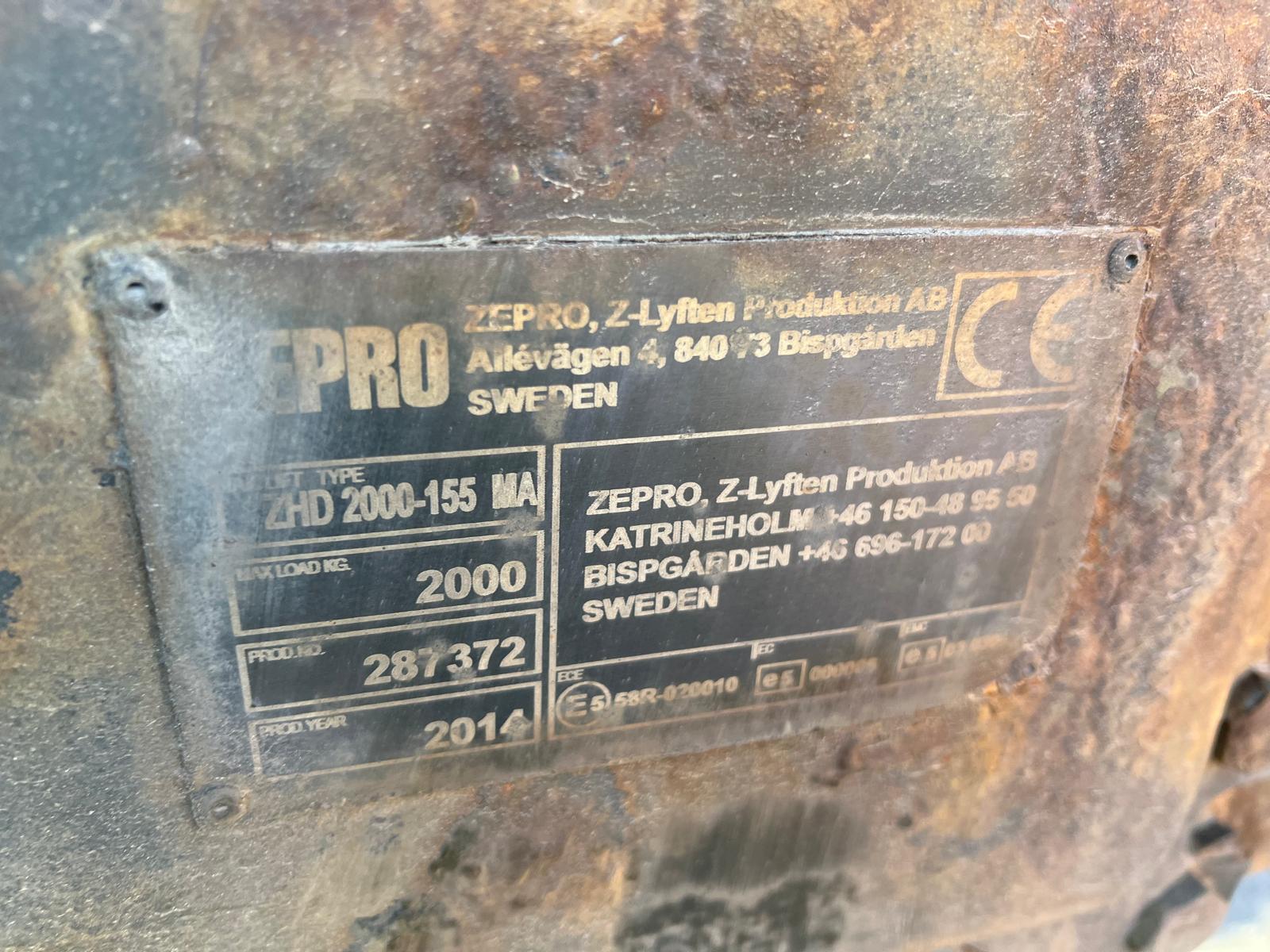 Fjernbetjent 2000 kg Zepro lift - Liftplade måler 2000 mm - Batteristation på lift - Containerstop på lift - Indv. Lys i kassen