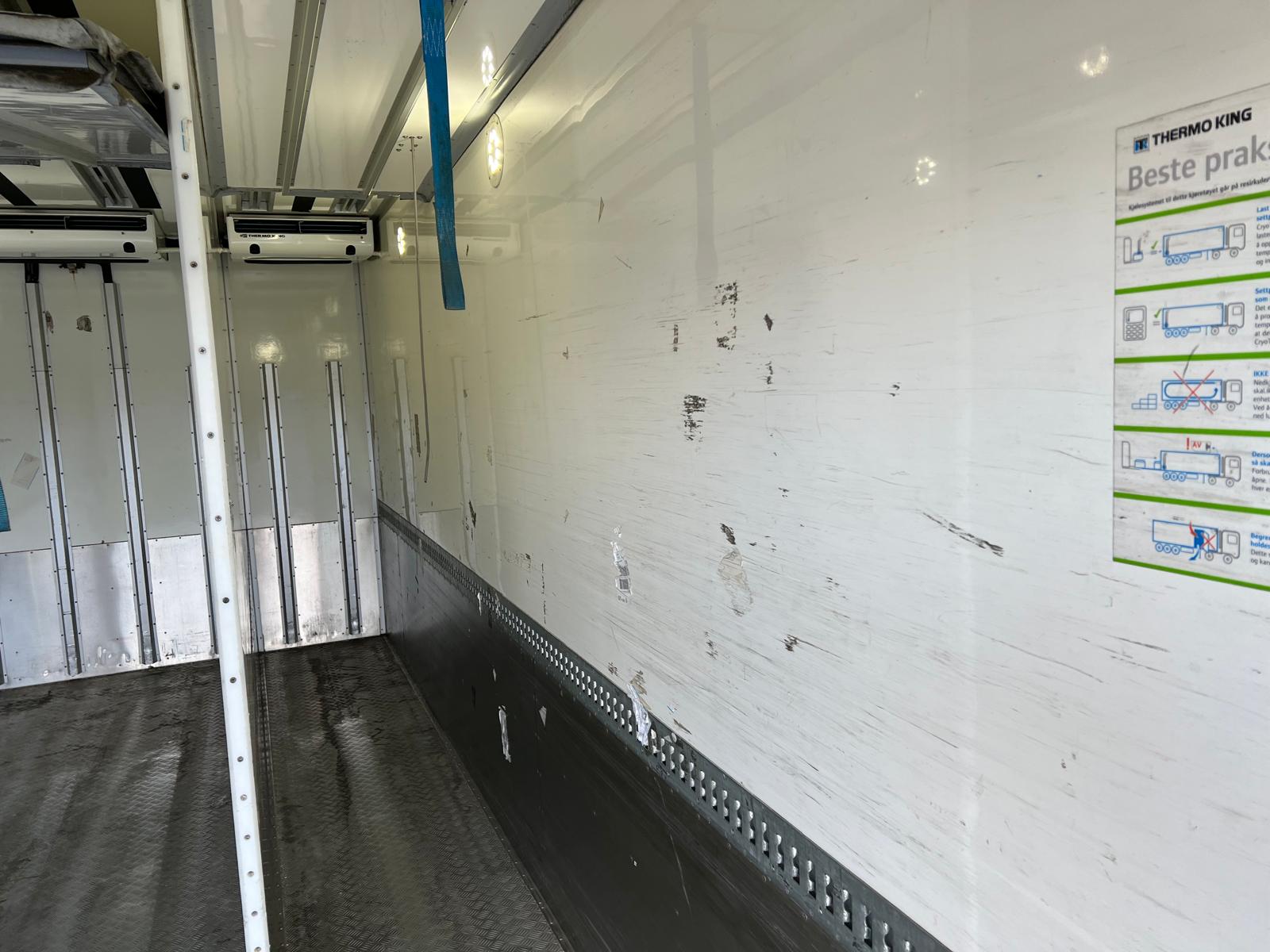 Opbygget med SKAB (Specialkarosser AB) Kasse m/følgende indvendige mål: Længde 7000 x Bredde 2450 x Højde 2690 (H2480 mm under fordamper - Stikker 1170 mm ind i kassen)