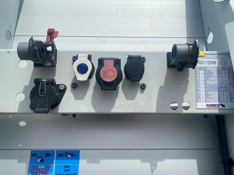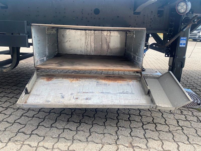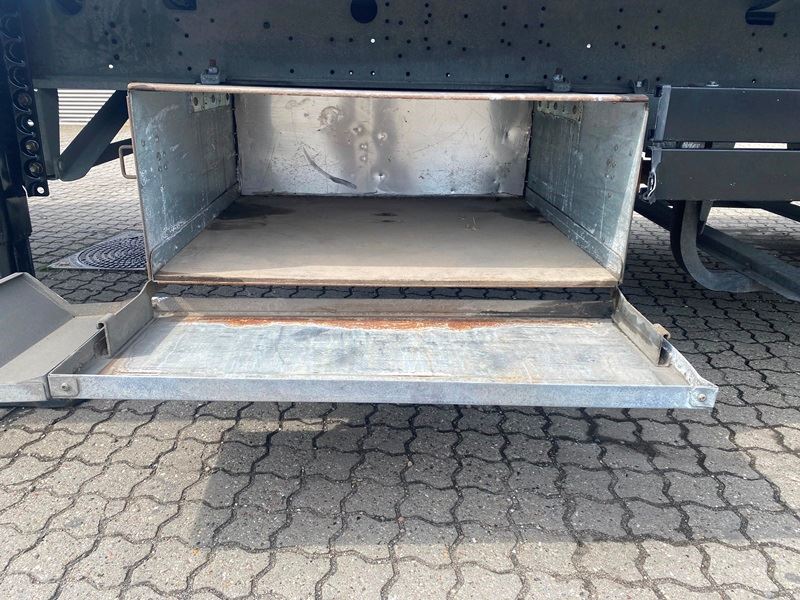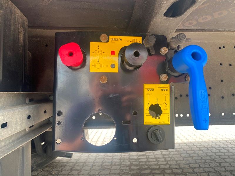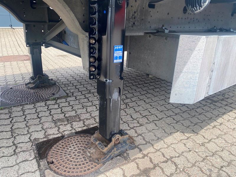 Schmitz aksler med skivebremser - Luftaffjedret - Løftbar 1. aksel - Galvaniseret chassis - 12000 kg hovedbolttryk - Værktøjskasse - Reservehjulsophæng - 445/45R19,5 dækmontering.