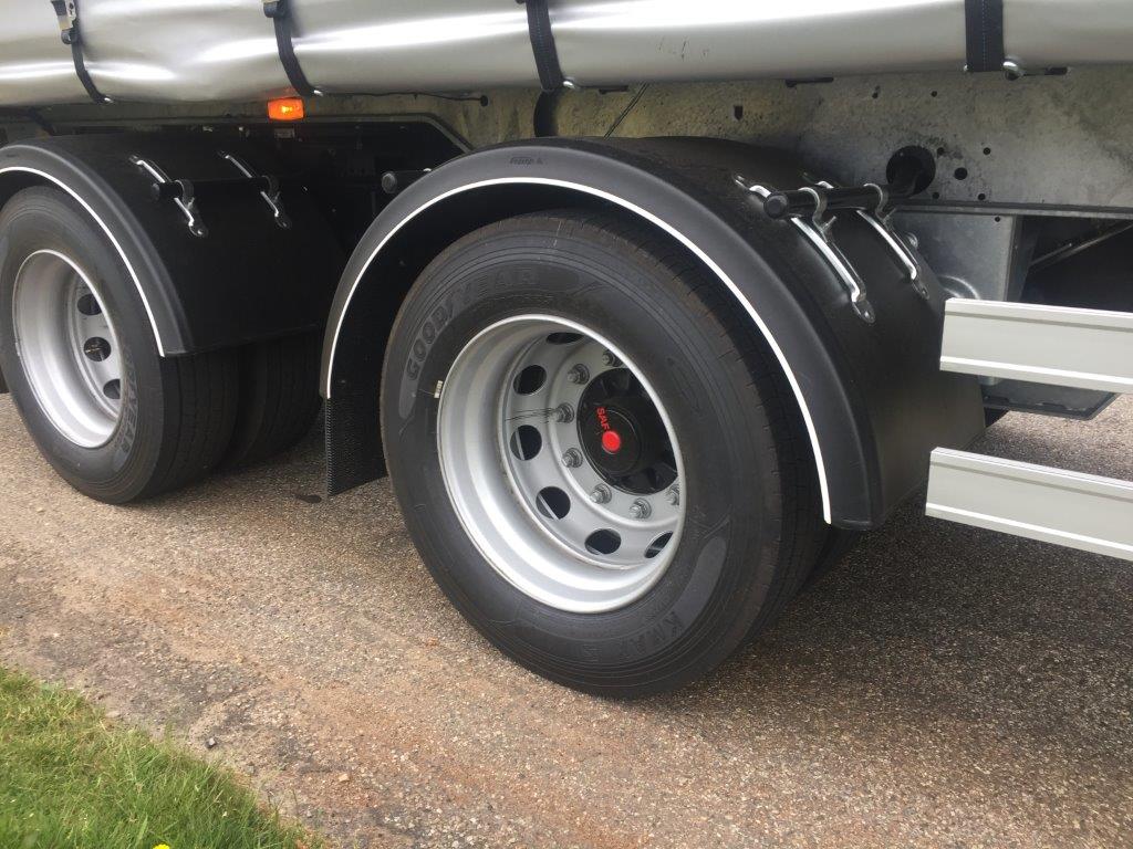 Dette chassis leveres med galvaniseret chassis og hjørner, RAL 9006 sølv presenning som også er XL-godkendt iht EN 12642 XL - Skydetag - vi har også levere 1 og 2 akslede 27 og 33 pallers med samme specifikation.