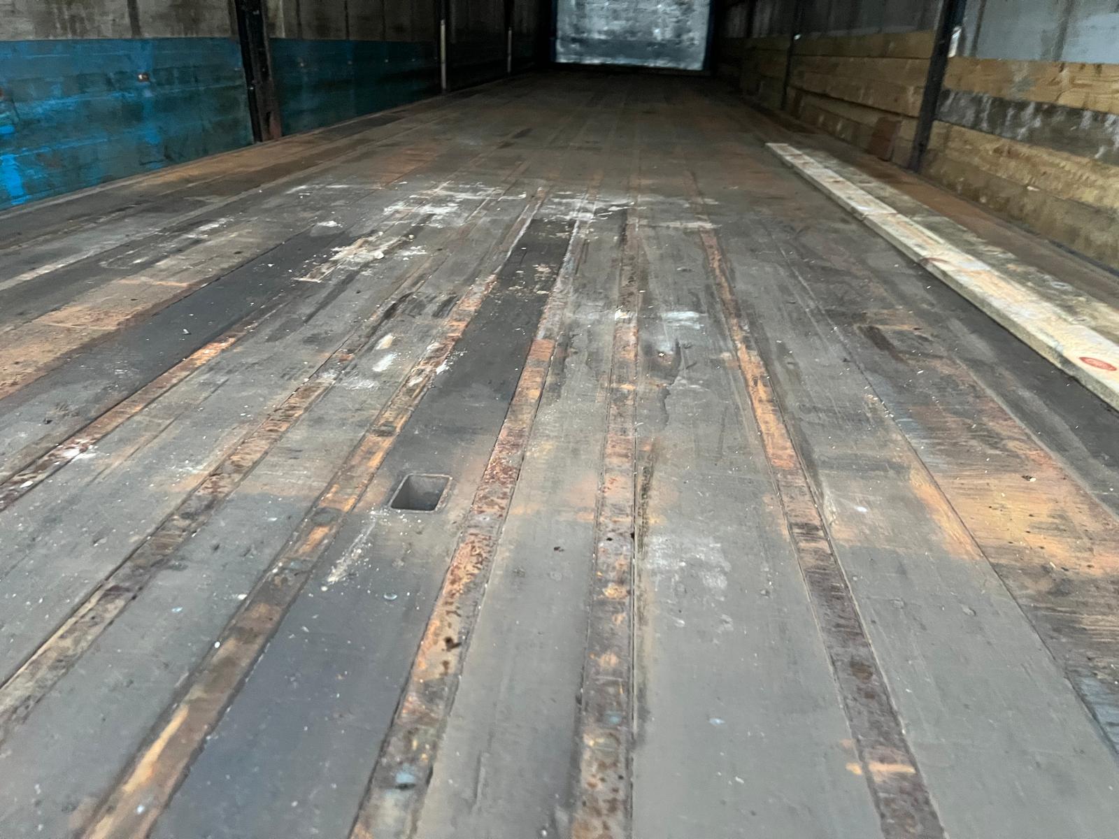 - hårdtræ + stål profiler ladbund - kæpstok huller i midt + kantskinne + diverse surrings ringe i begge kantskinner - skydetag