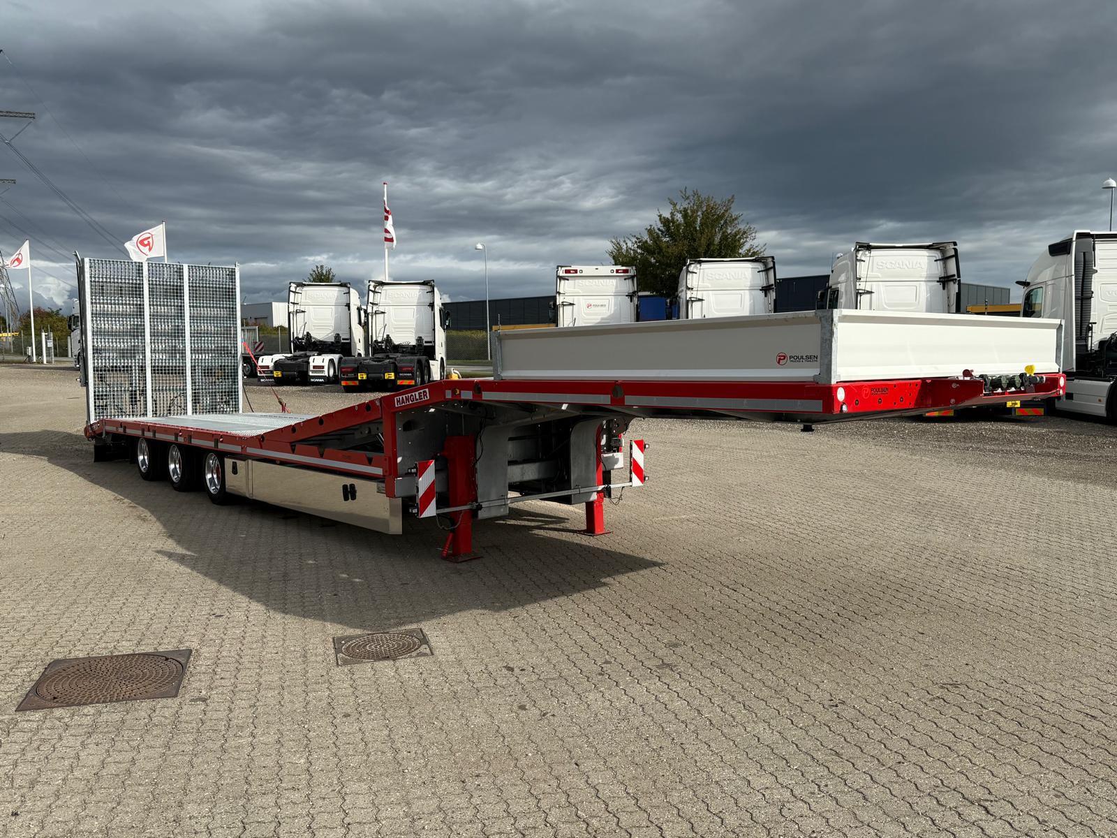 Hangler 3-aks maskintrailer med heldækkende rampe