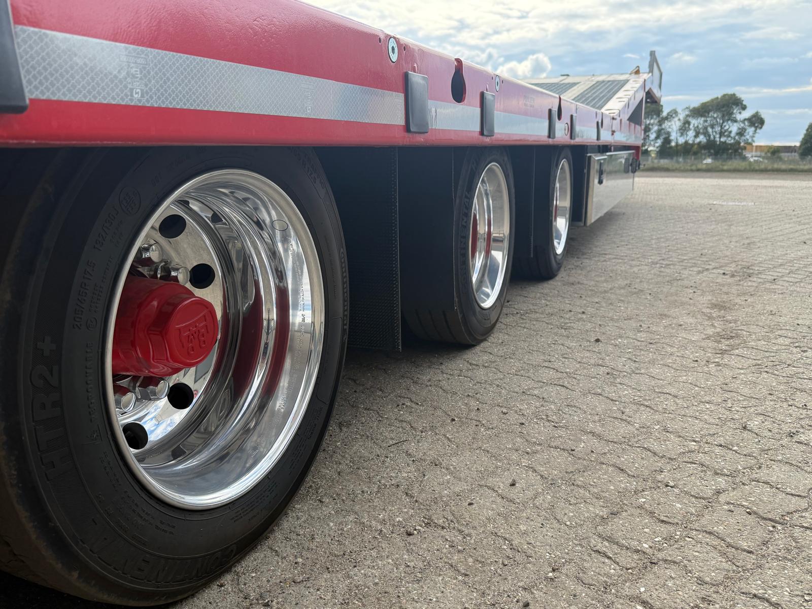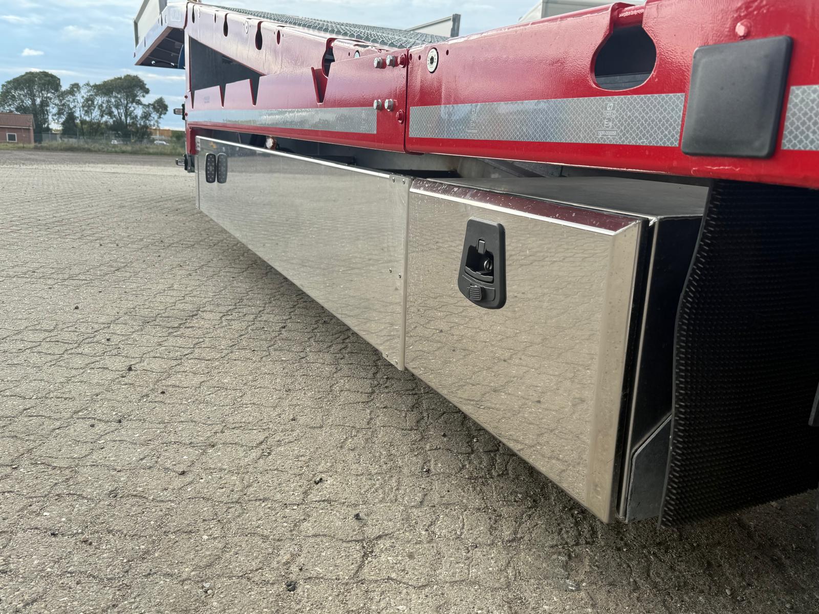Traileren er desuden udstyret med forbredningsskilte for og bag, mange surringsmuligheder, sideskørter, værktøjsskabe samt en hydraulikstation. På rapoen findes et praktisk opbevaringsrum.