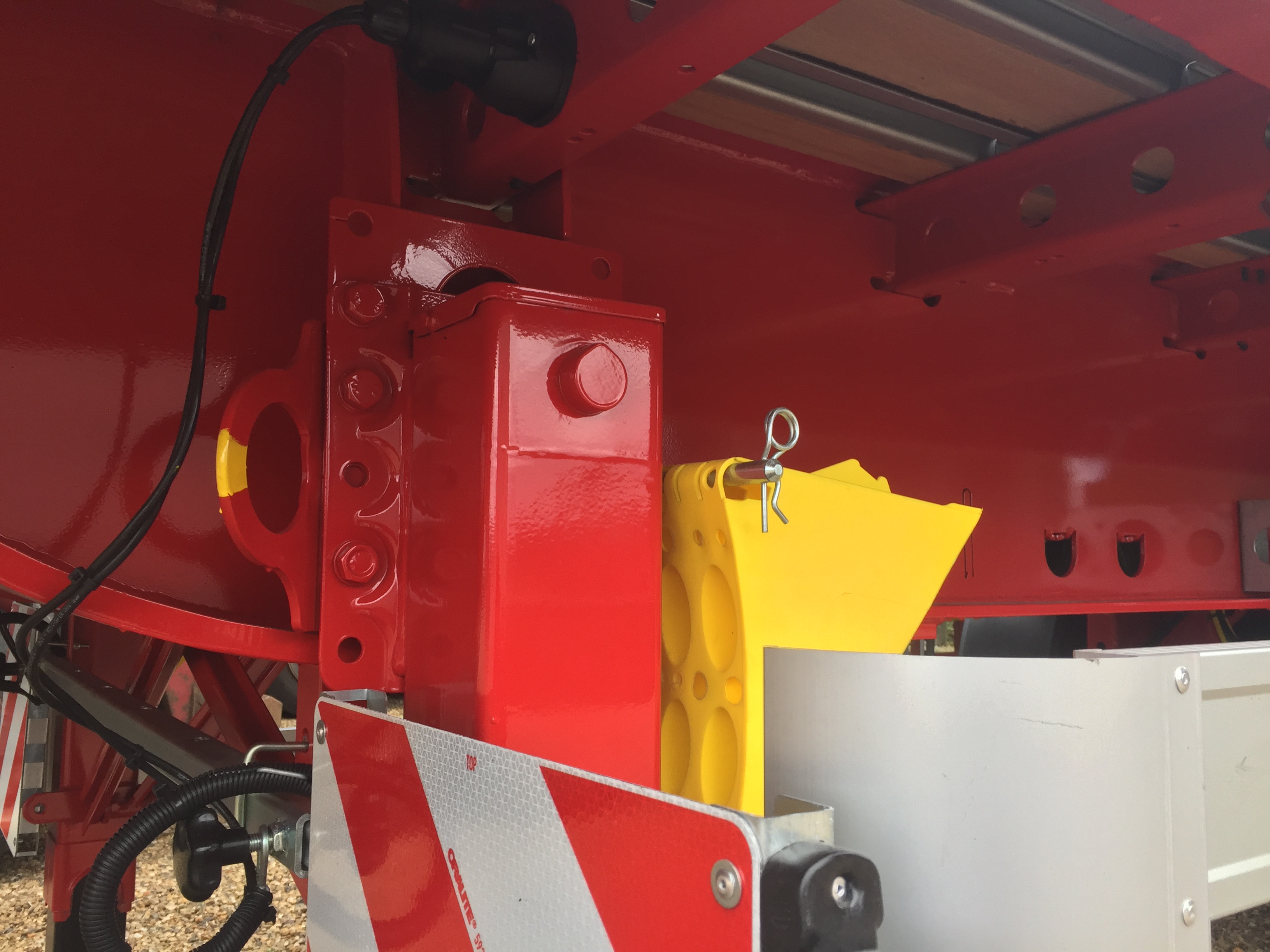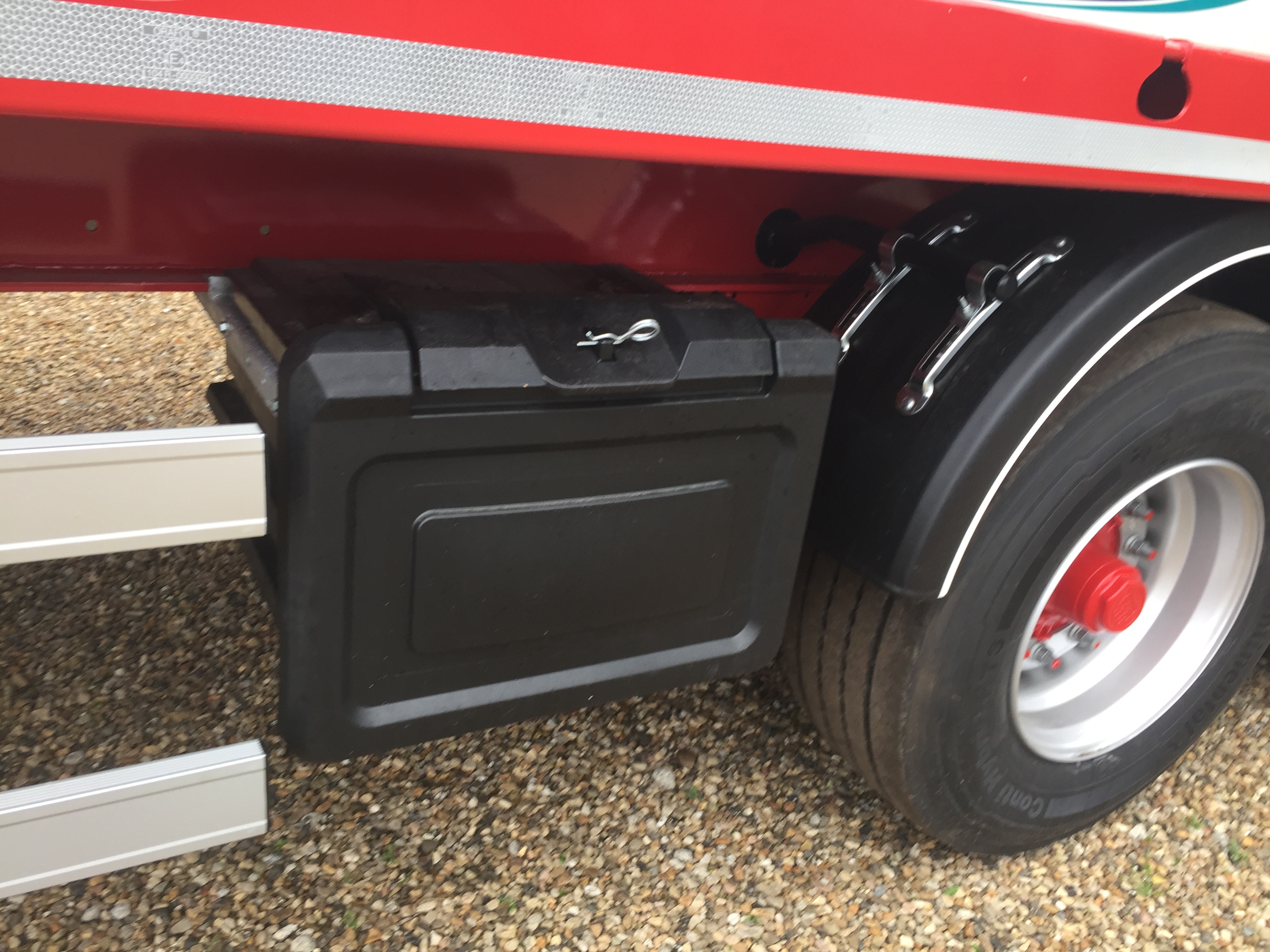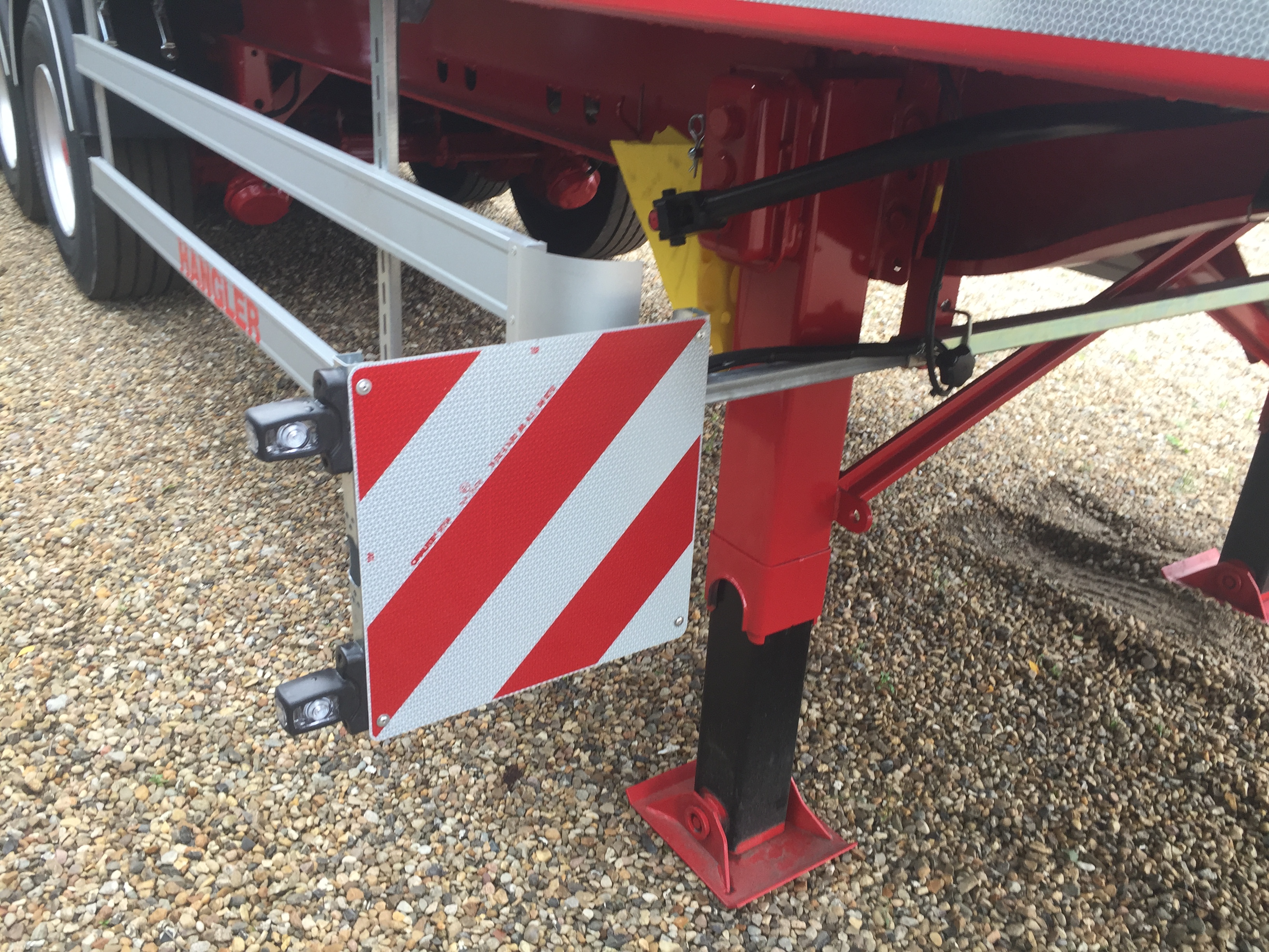 Fabriksny 4-akslet Hangler SVS 480 RH 200 sværlast trailer - Ladbund beklædt med kraftig 30 mm hårdttræ, med stål omega profiler imellem plankerne - BPW aksler med tromlebremser, liftaksel på 1. aksel og drejbar 4. aksel - Masser af mulighed for surring med 26 stk. 5 t. surringsøjer, 2 x 10 stk. 10 t. surringsøjer, 2 x 10 stk. kæpstokke huller i kantskinne, 10 stk. kæpstokke huller i midten, samt 2 x 4 stk. færgekroge under chassis - 1600 mm stålforsmæk - galvaniseret rummelig magasin kasse til kæpstokke og strøer i bagenden - LED bag lygter samt 4 stk. LED baklygter - Leveres i RAL 3002 rød chassis lakering - mulighed for tilkøb af 10 stk. galvaniseret stål kæpstokke