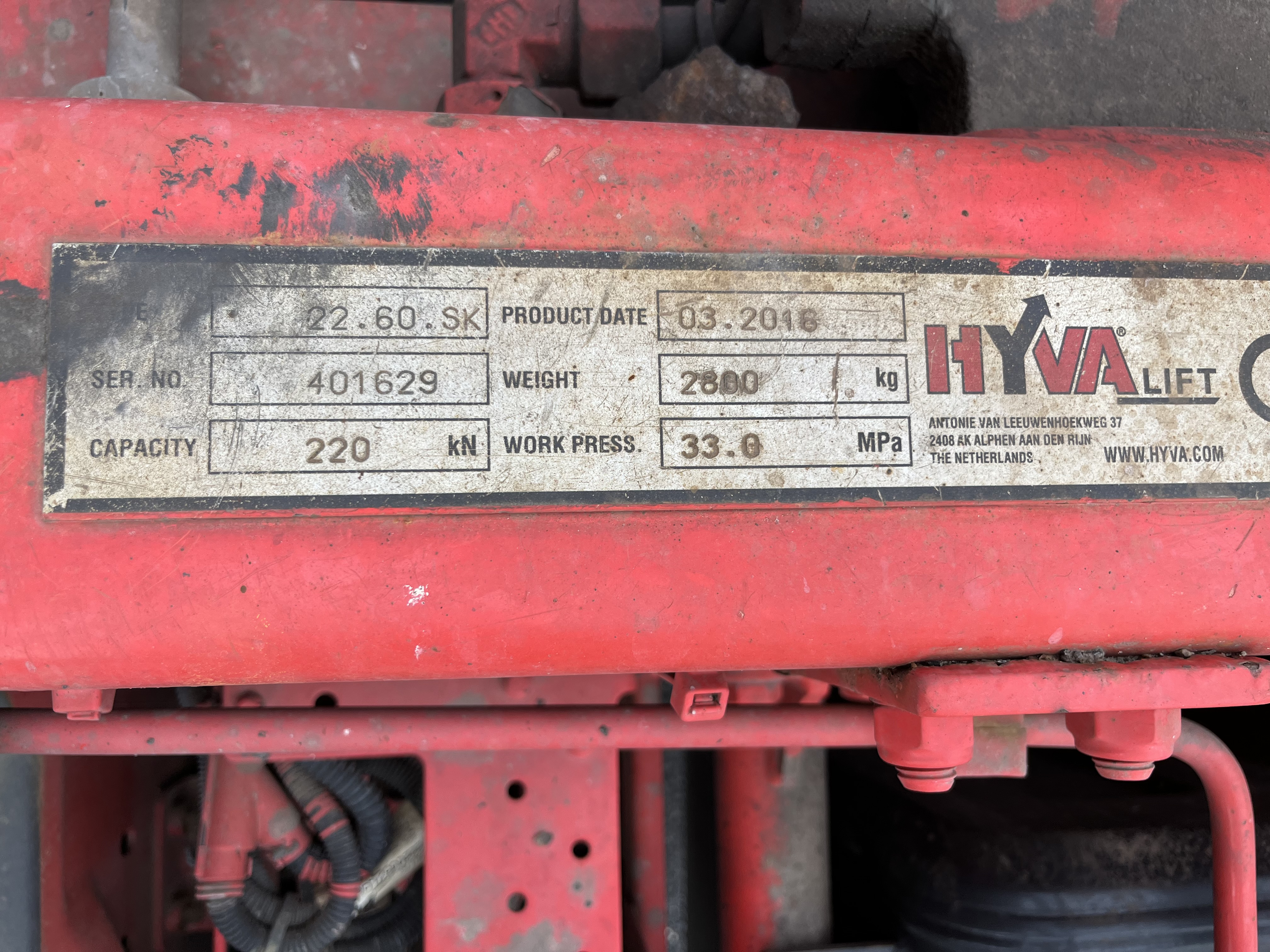 22t HYVA hejs med knækarm er monteret på lastbilen.